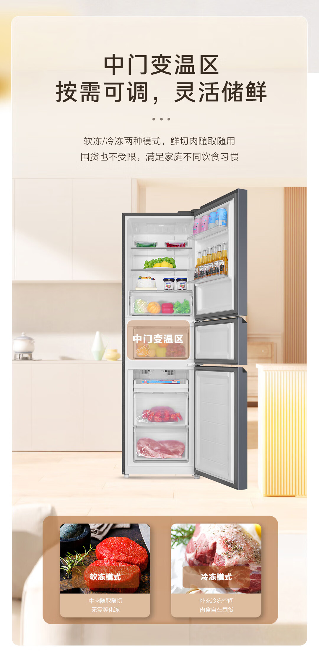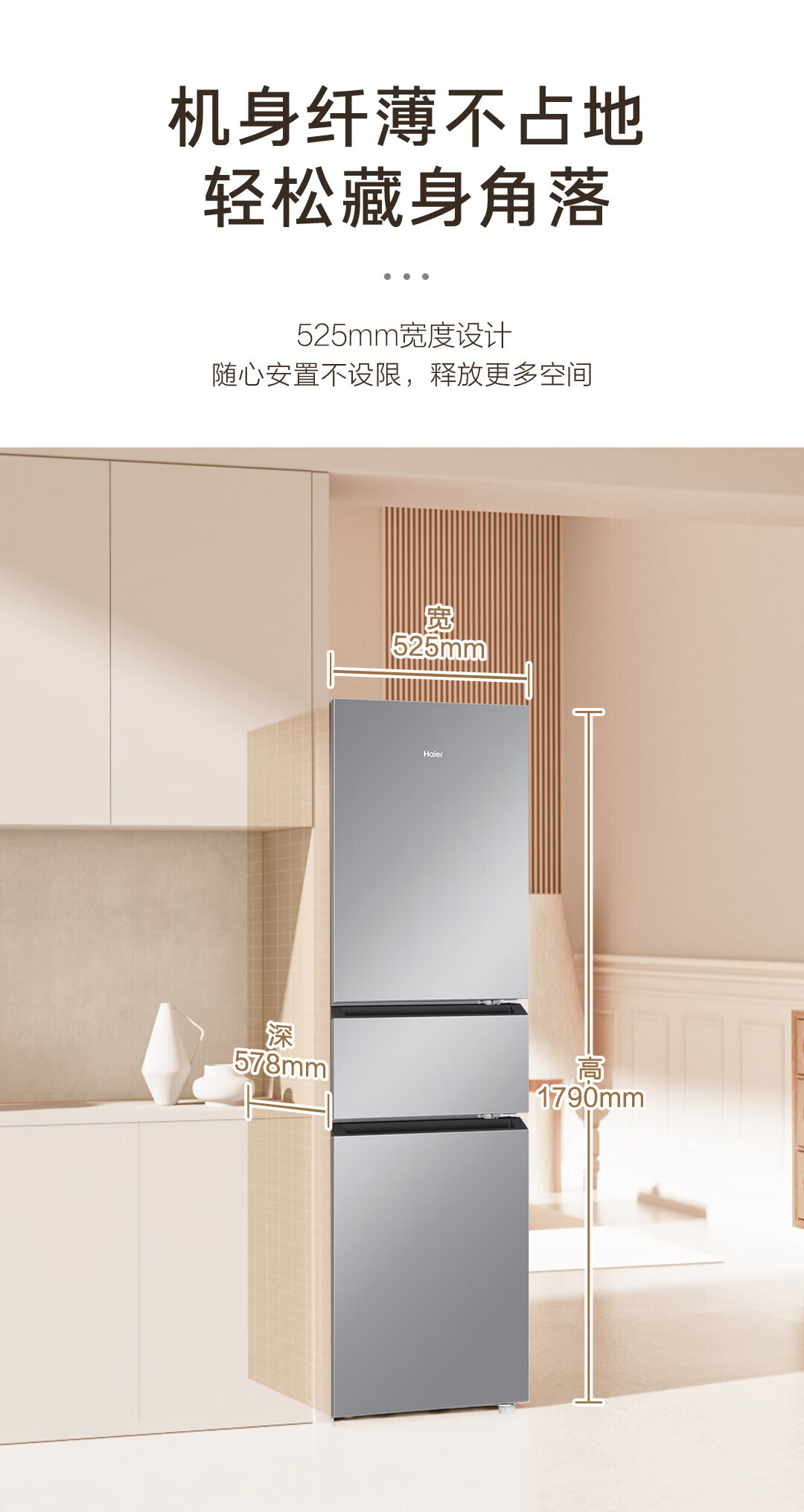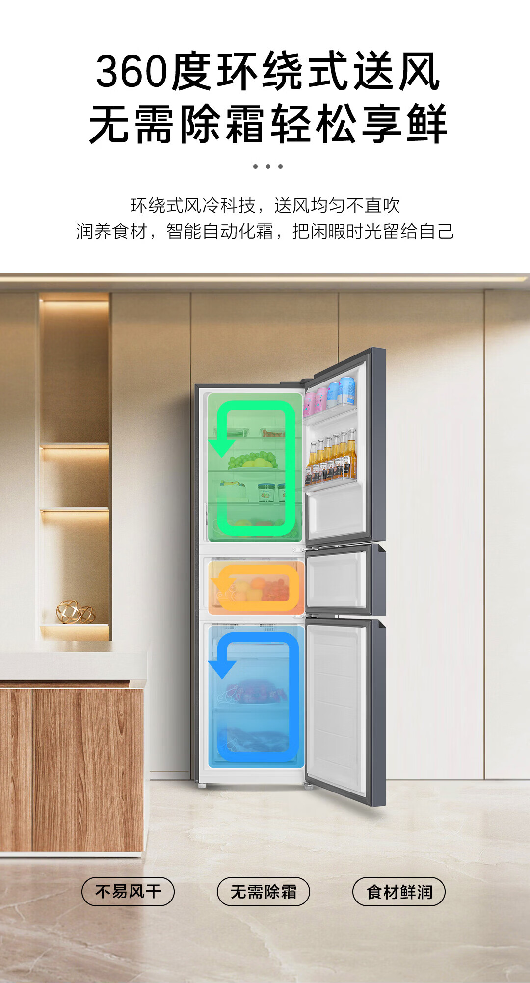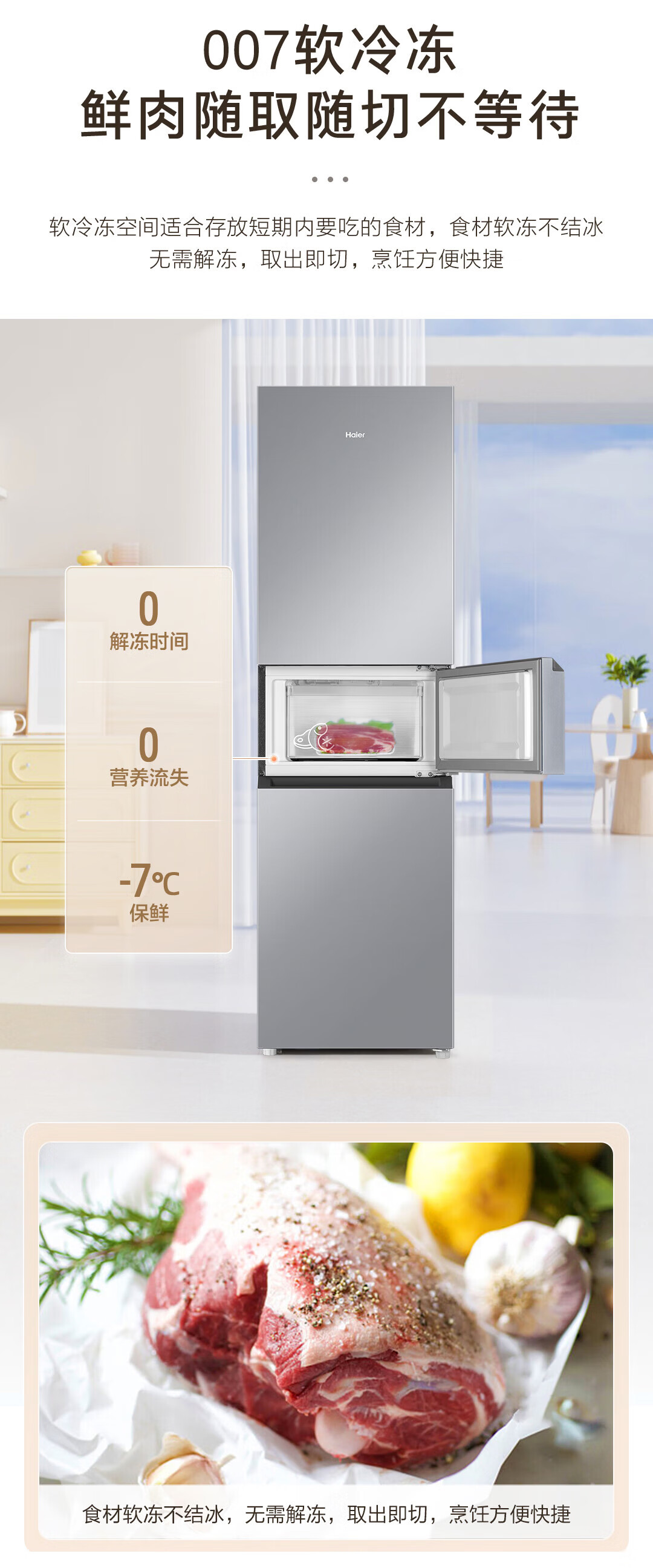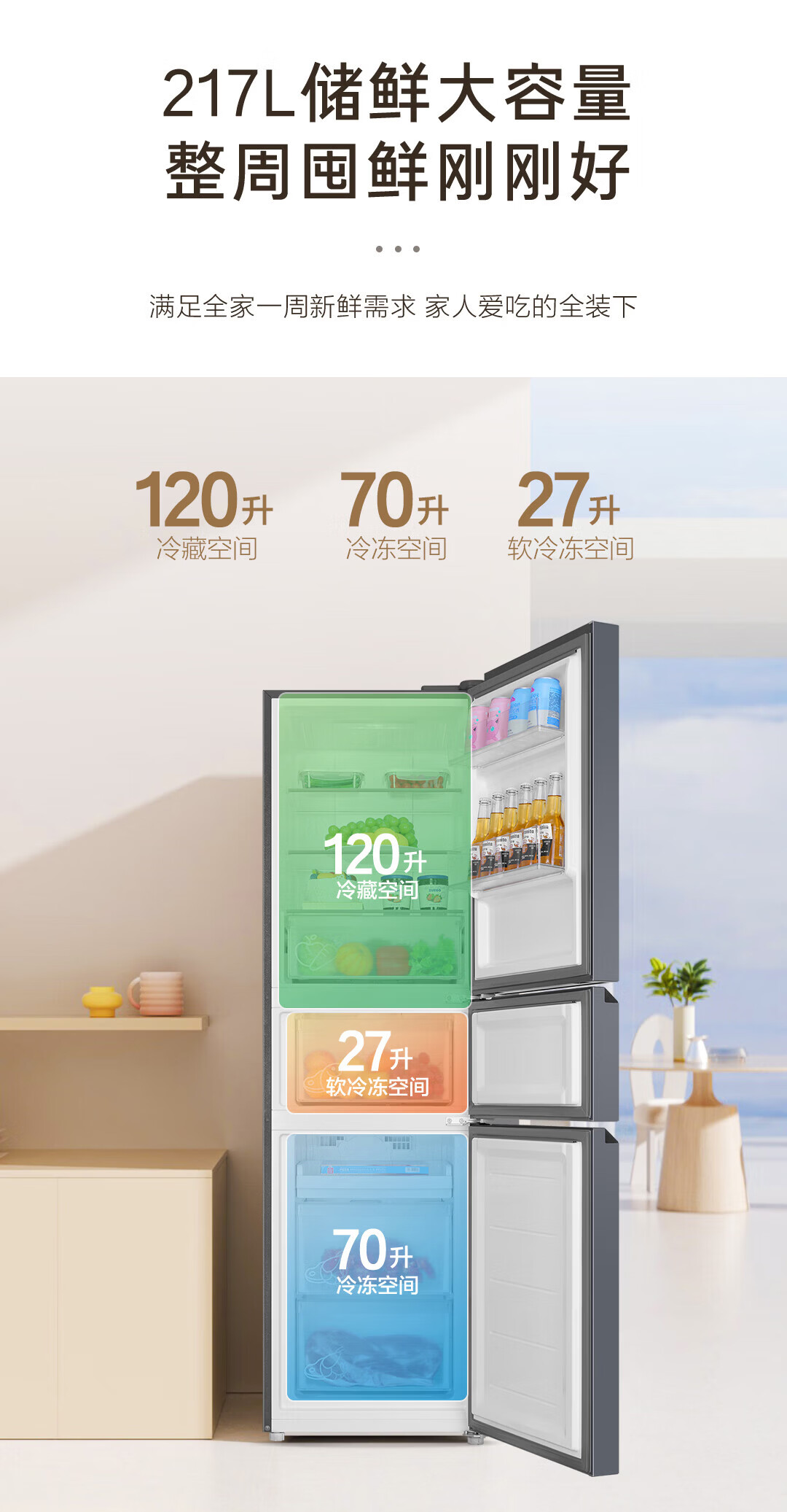海尔冰箱217升三门家用小户型冰箱风冷无霜黑金净化一级能效星辉银家用电冰箱BCD-217WGHC3E9S9 217L三门-灰|一级|风冷无霜|除菌