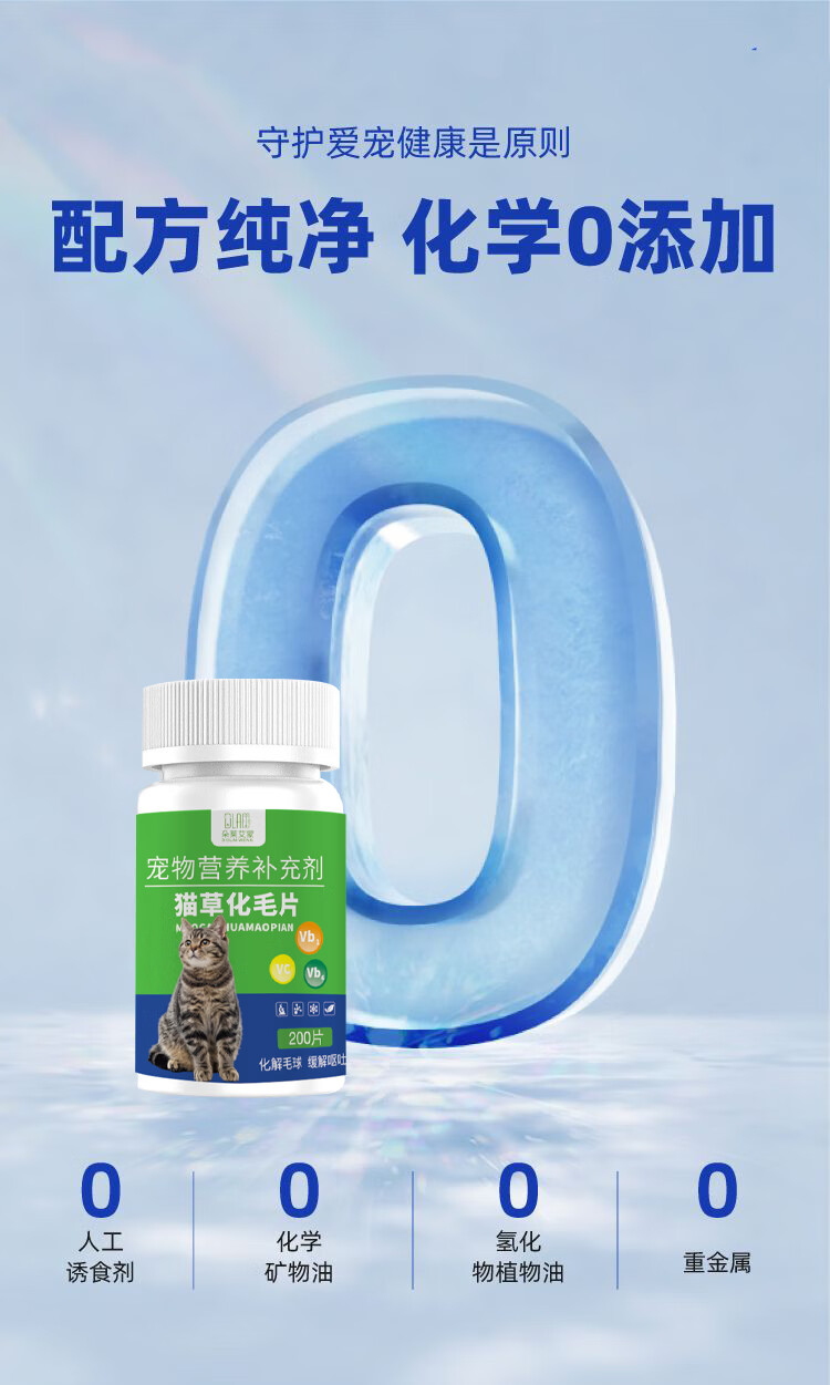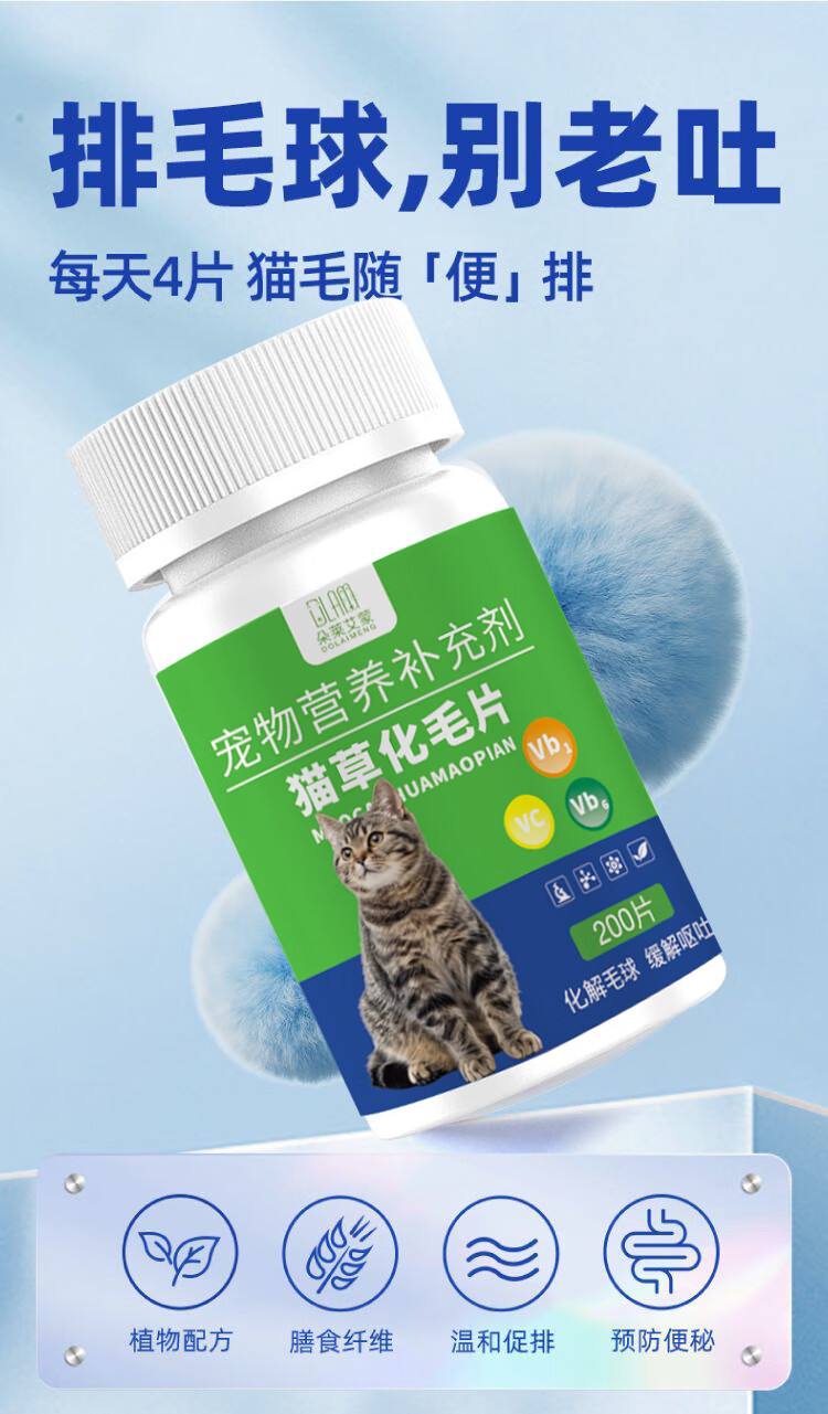 猫用化毛球猫草片 化毛膏猫咪宠物吐毛球幼猫肠胃调理预防便秘 猫草化毛球片【200片】1瓶