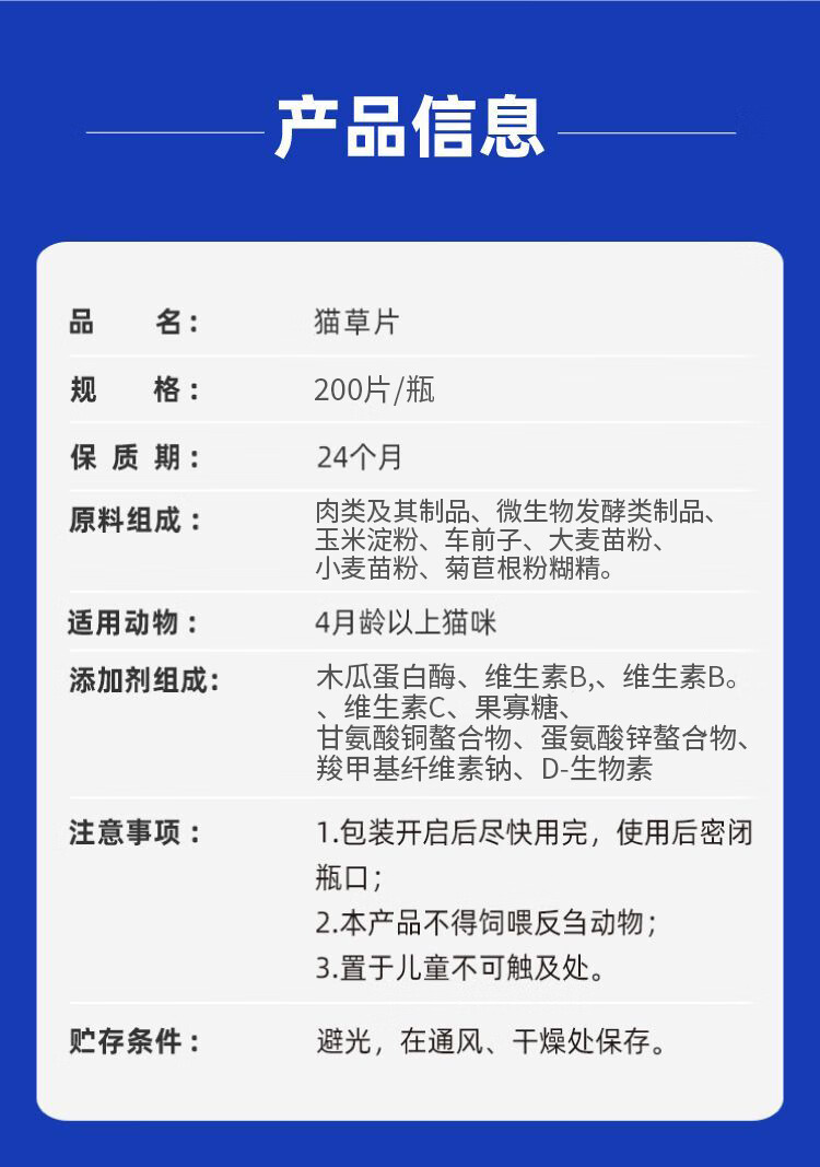 兽护神猫草化毛球片猫咪促进排毛化毛去毛猫草片植物纤维营养补充剂 一瓶猫草化毛片200片