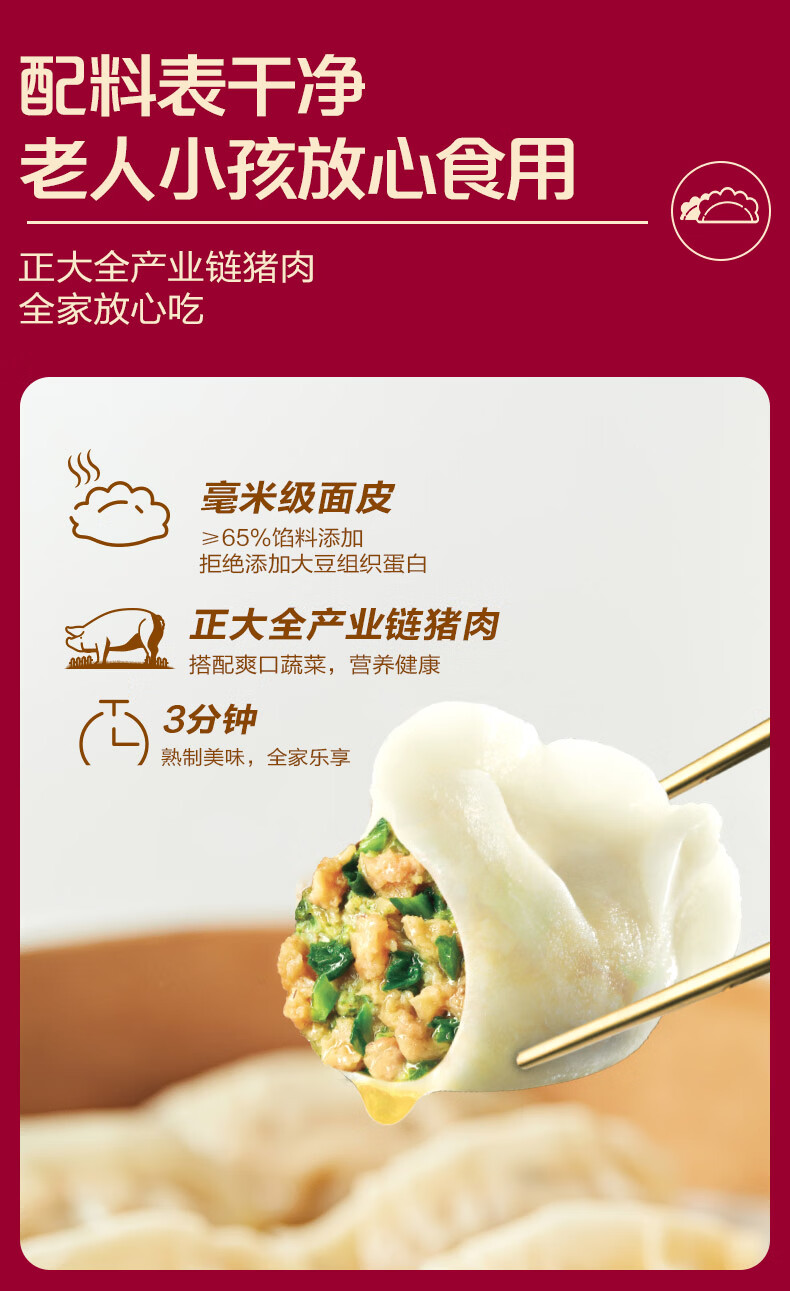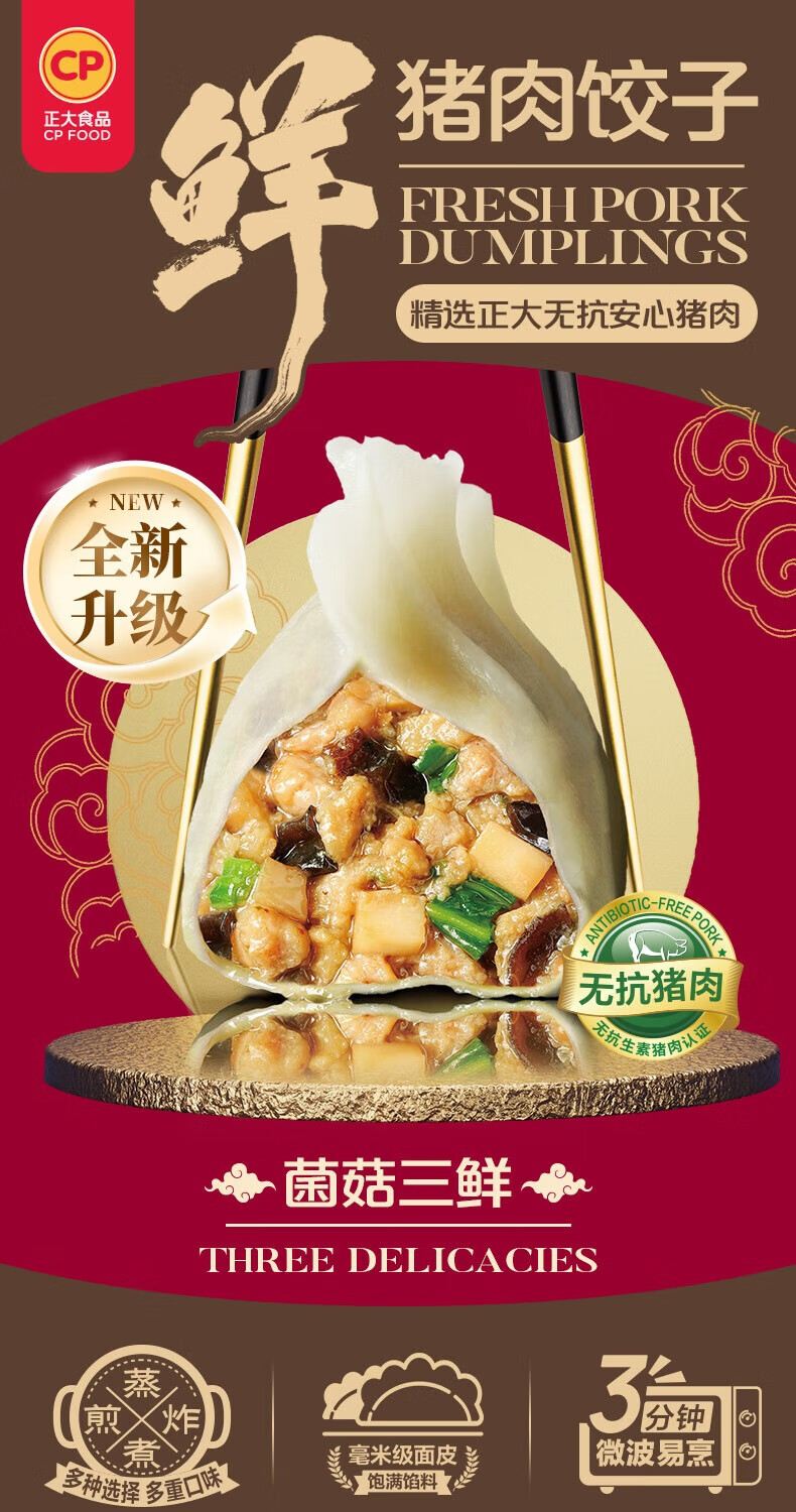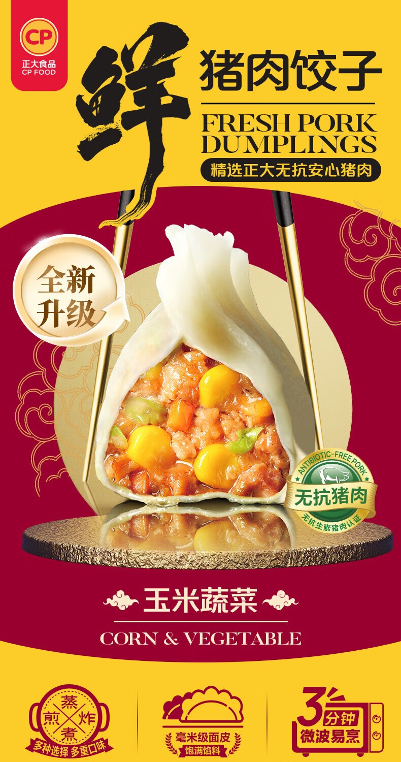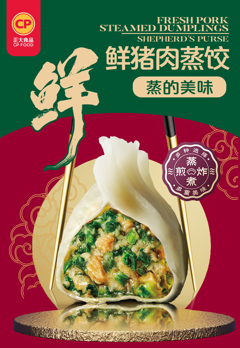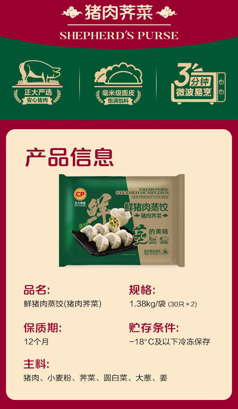 正大早餐速冻饺子 速食冷冻 荠菜猪肉饺子1380g 23g*15粒*2盒*2袋