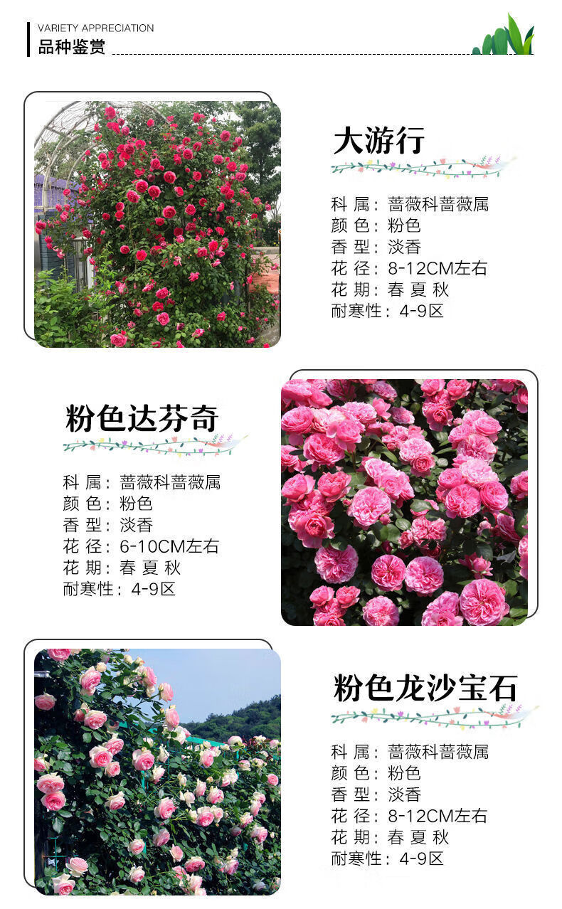1.5米高大苗 藤本月季花粉龙苗大花浓香型庭院地栽盆栽爬藤蔷薇 粉龙 1.5米(大苗)