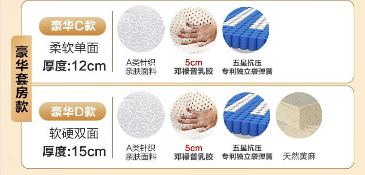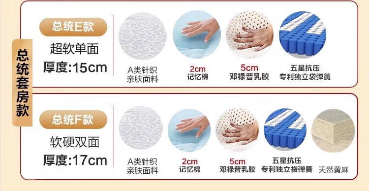 亚朵深睡亚朵床垫家用薄款15cm厚天然乳胶1.8m静音独立弹簧榻榻米高箱薄垫 五星豪华(15cm双面两用) 1.8*2.0m