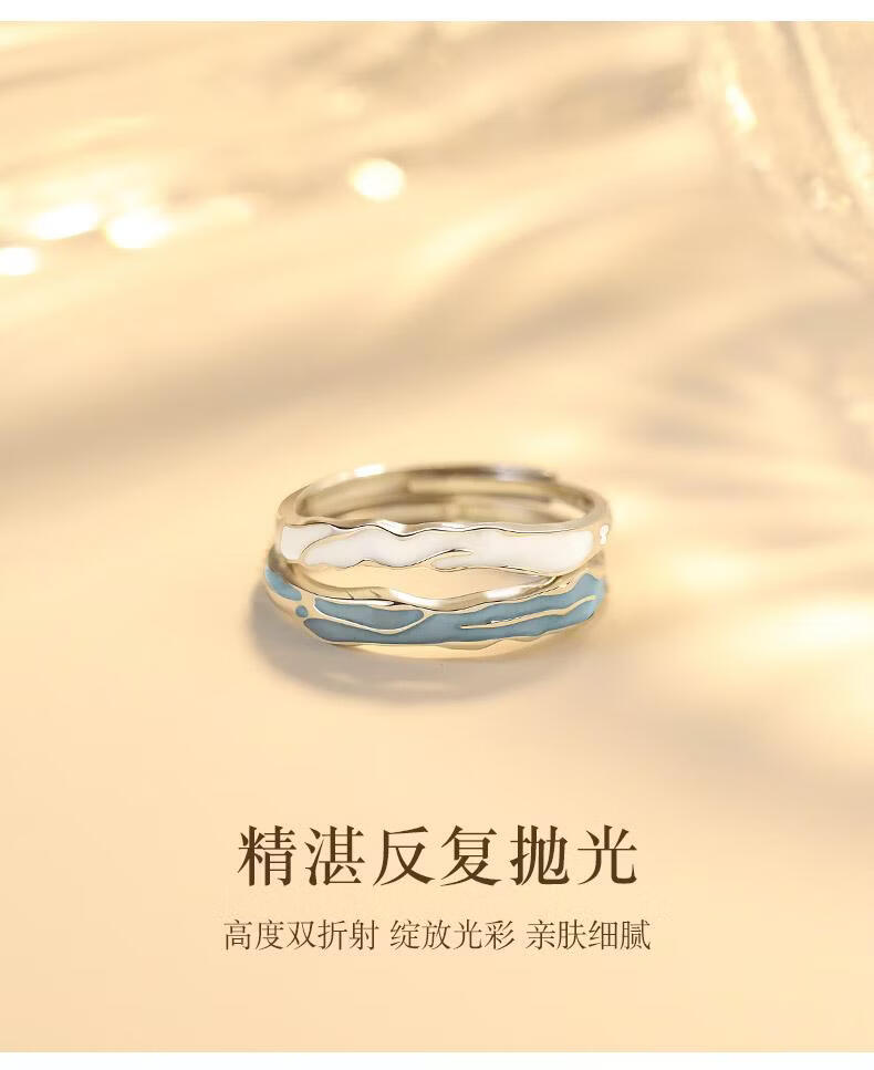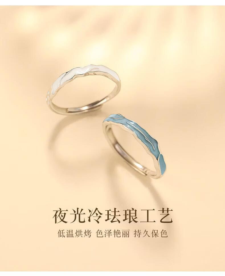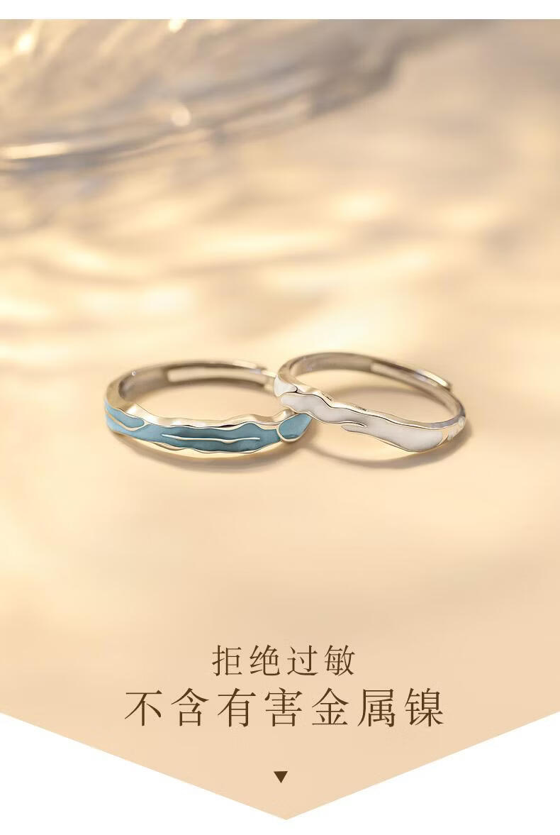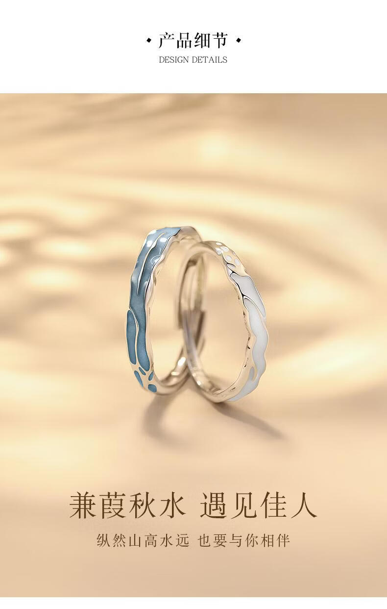 宝恋蒹葭白露情侣对戒925银女小众设计感生日纪念日送女友520礼物 【S925】蒹葭白露情侣对戒+真爱花盒+证书 【开口可调节】支持异地分开发货