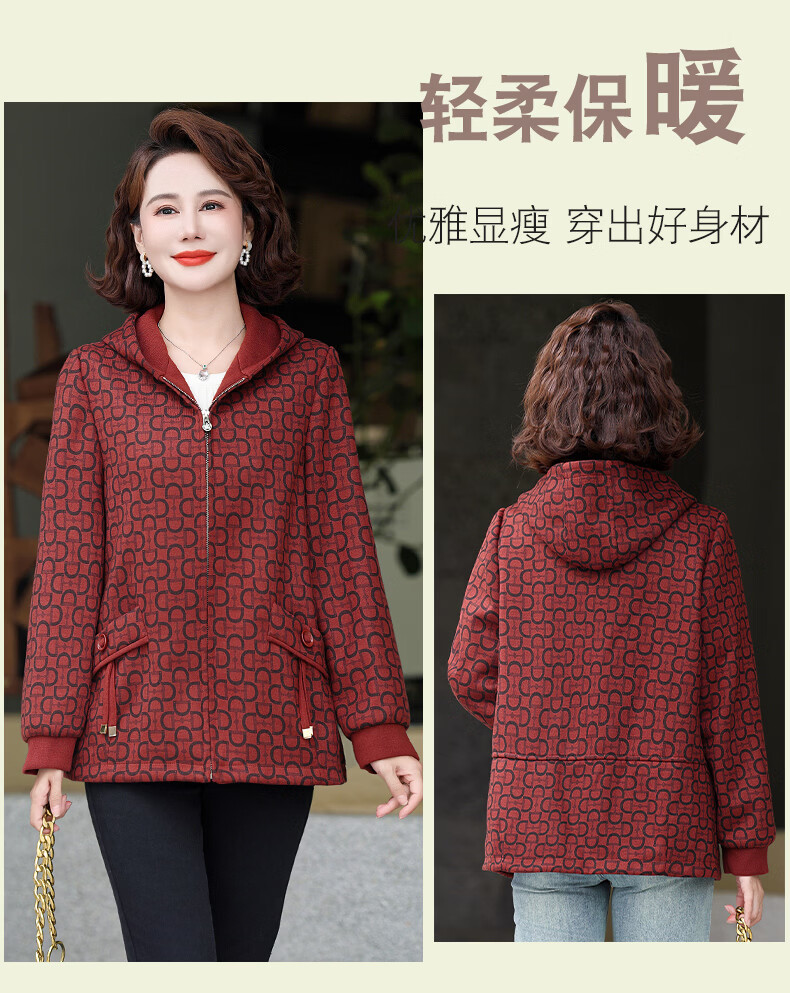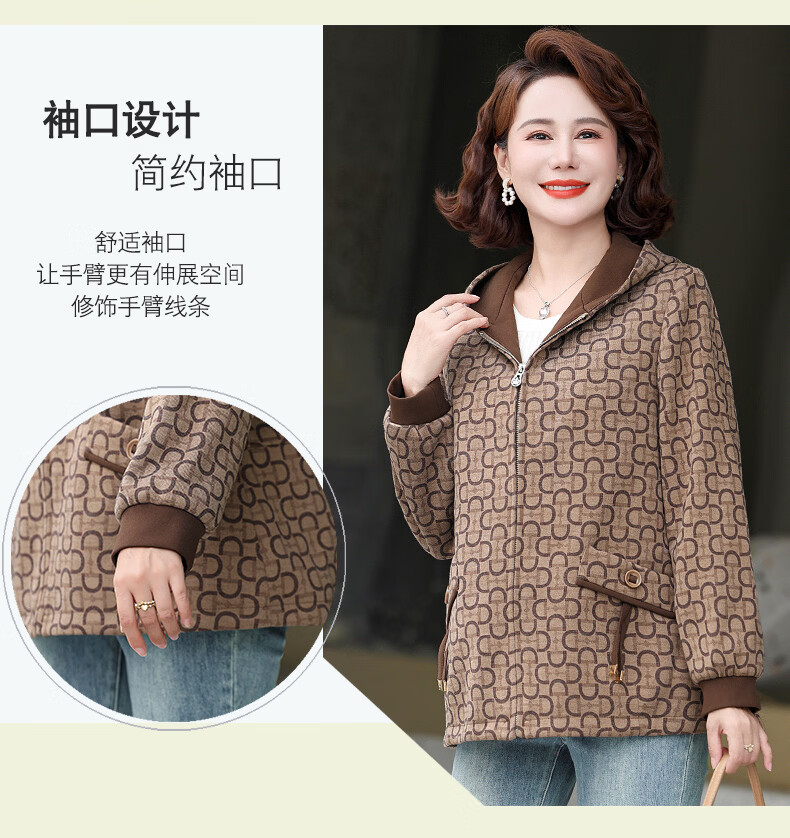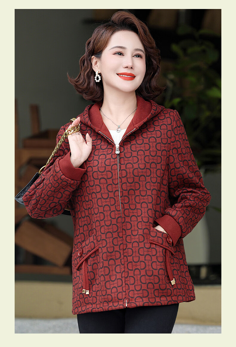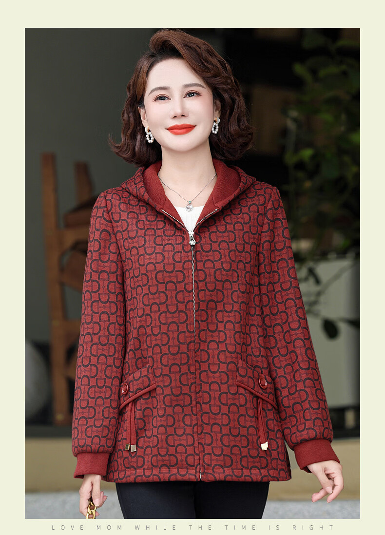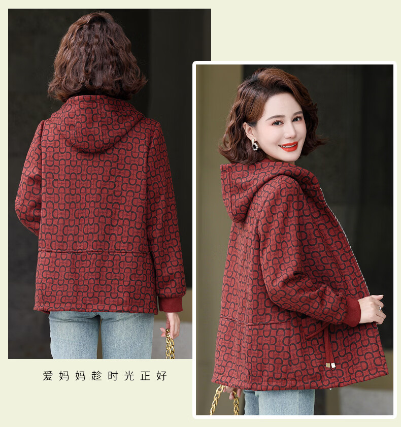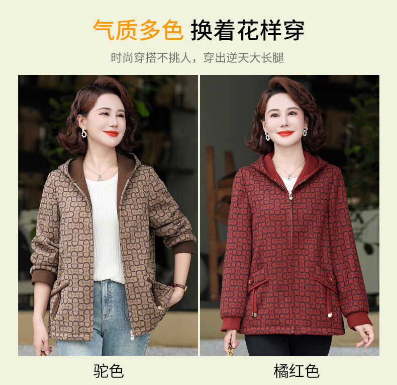 孜颜中老年女士外套50-60岁洋气妈妈装春装女2026春季新款连帽夹克衫 桔红 XL (建议100斤以内)