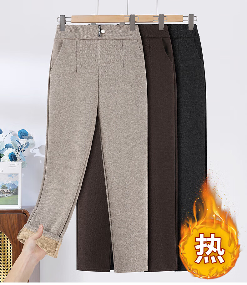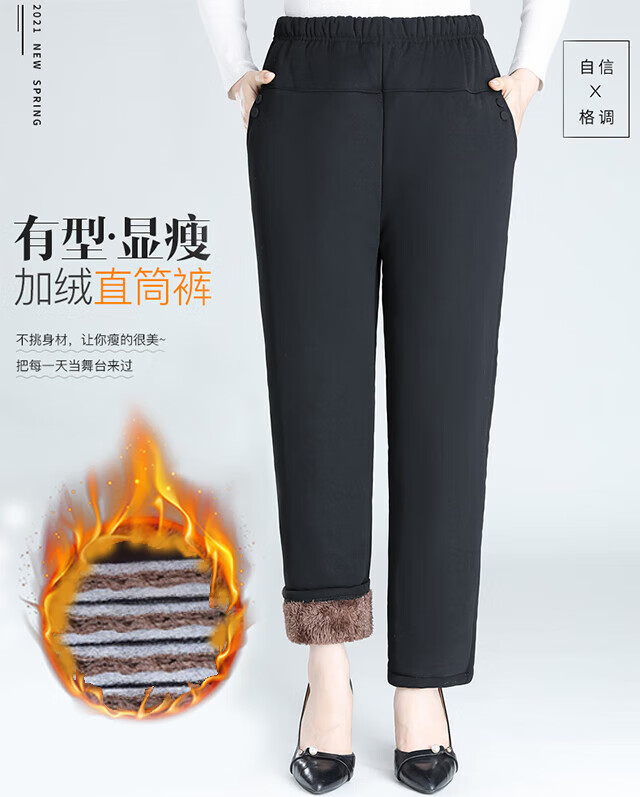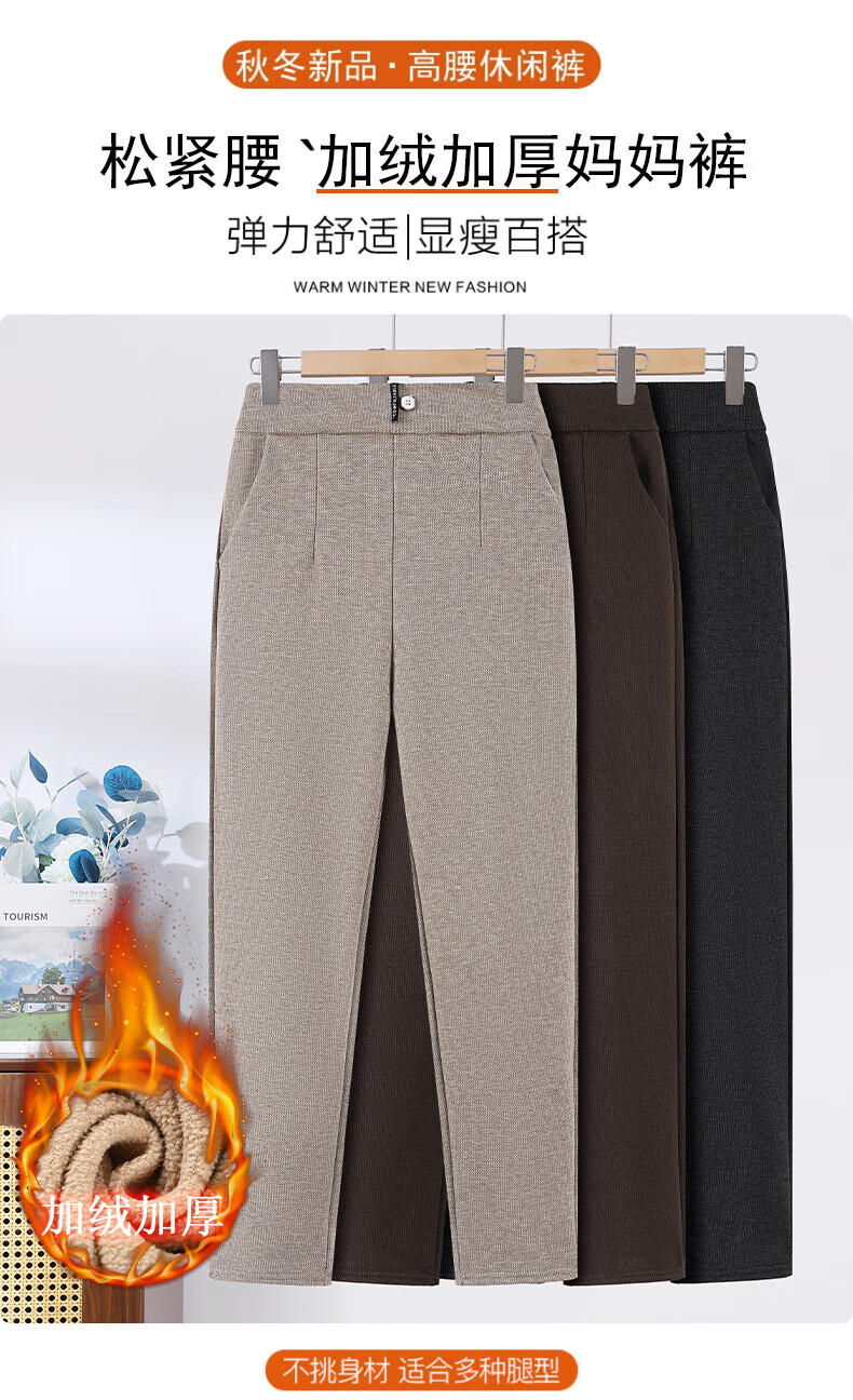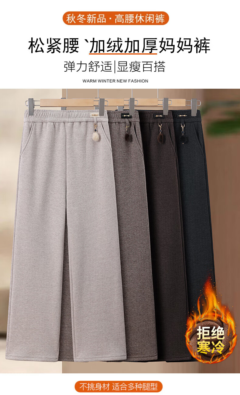 情罗兰(QINGLUOLAN)老年人加绒加厚裤子女冬季宽松妈妈棉裤50-60岁休闲裤女士长裤子 深灰 加绒 XL 【80-100斤】