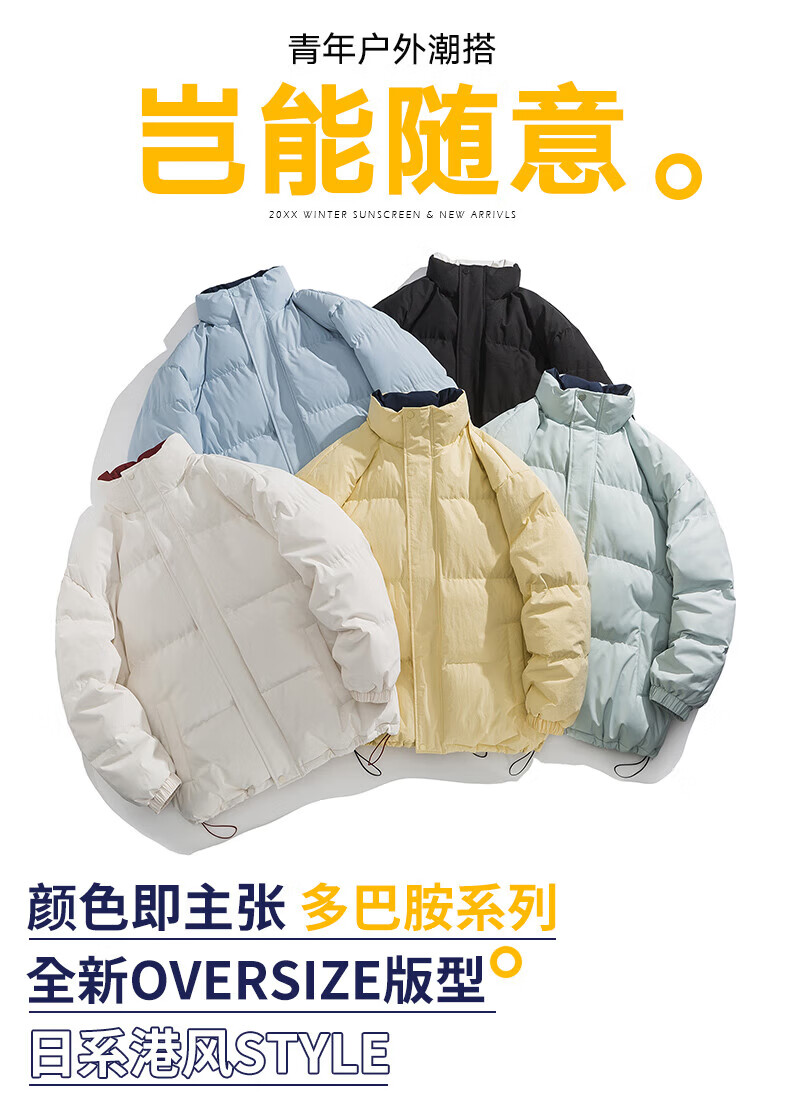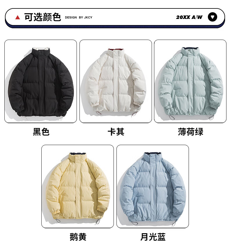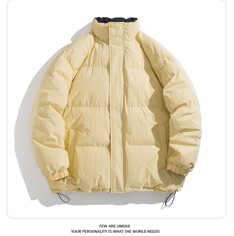 真维斯(Jeanswest)棉衣男冬季男生2026美式撞色棉袄保暖情侣面包服厚外套 鹅黄 3XL