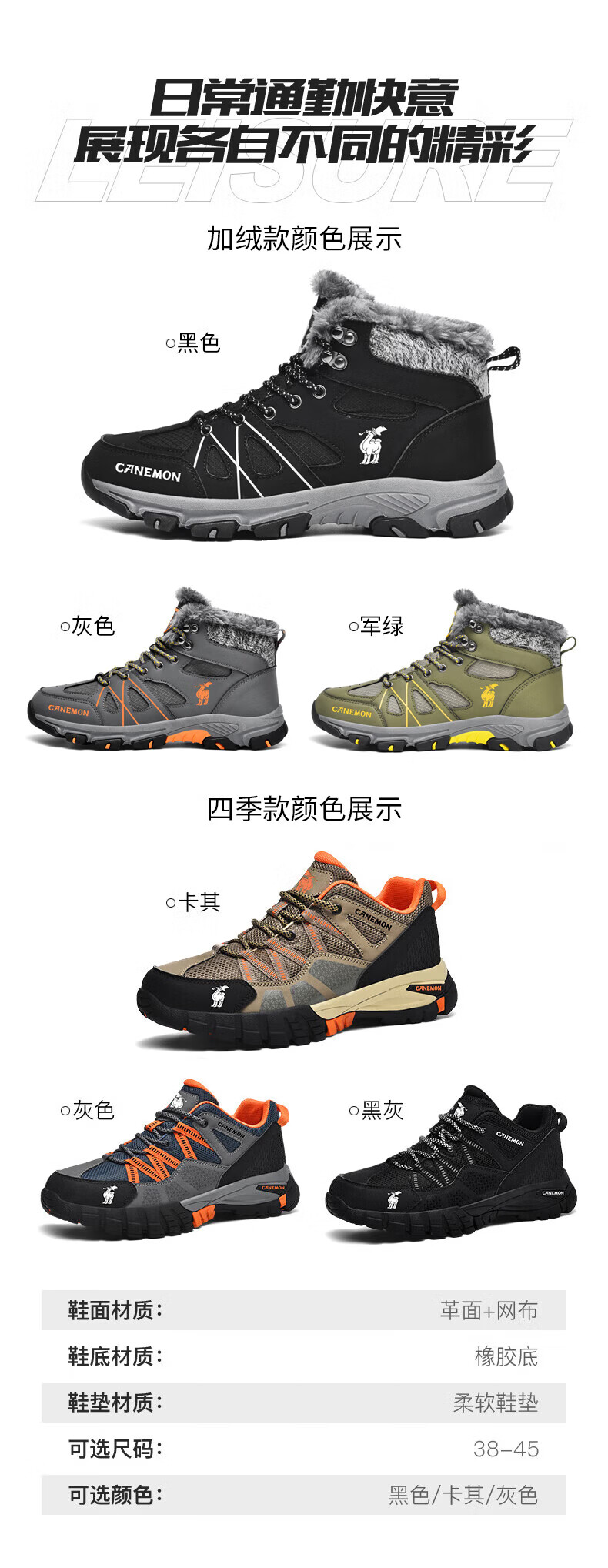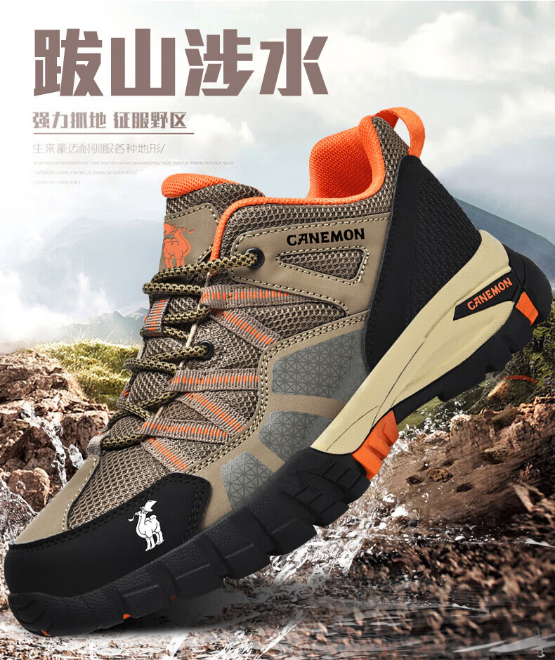 保罗骆驼户外登山鞋子 2026春夏季透气运动休闲男鞋 防滑增高大码徒 【四季款】棕色 6135 38 【正常运动鞋码】