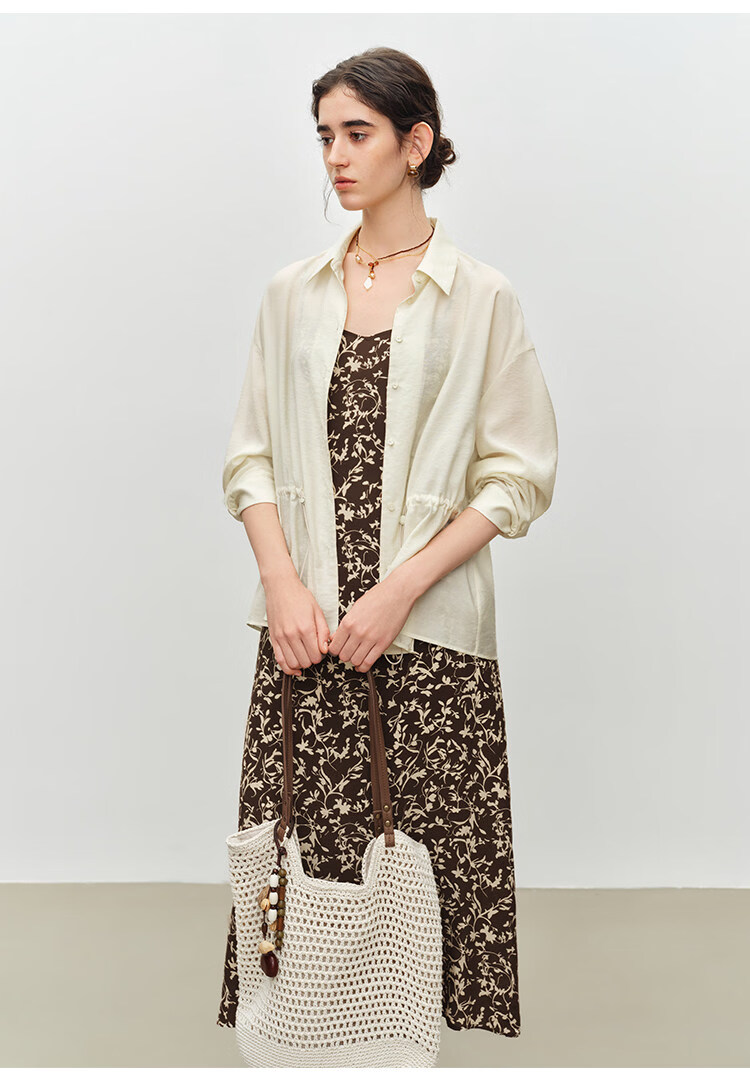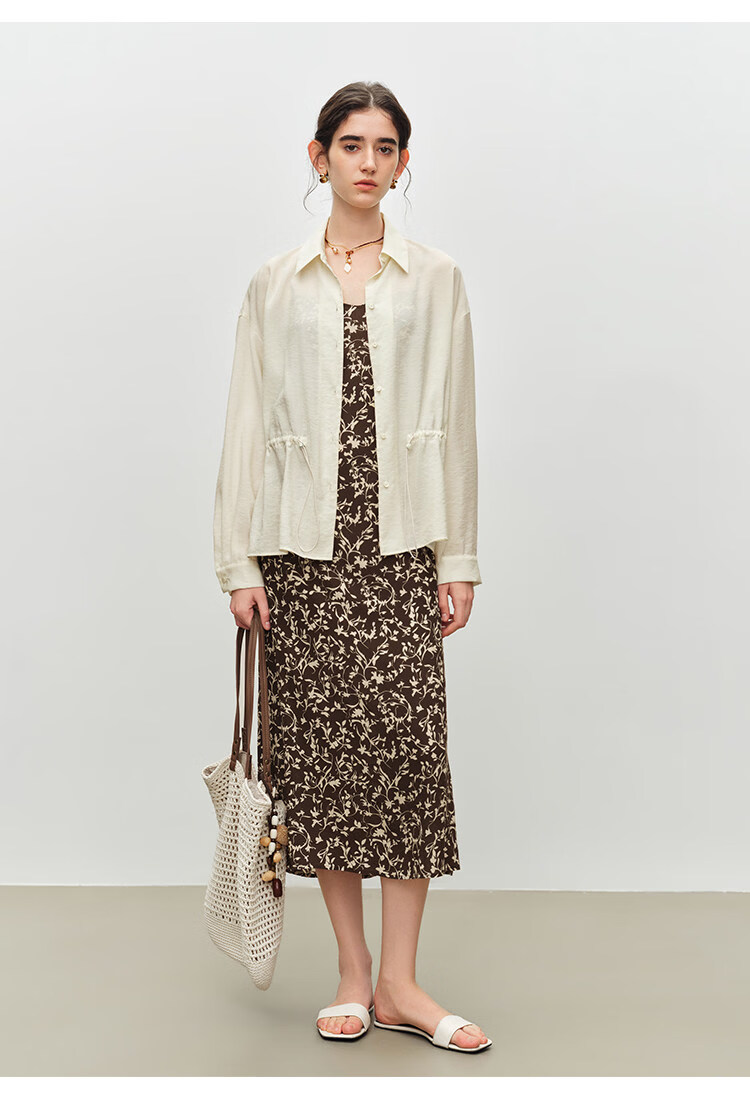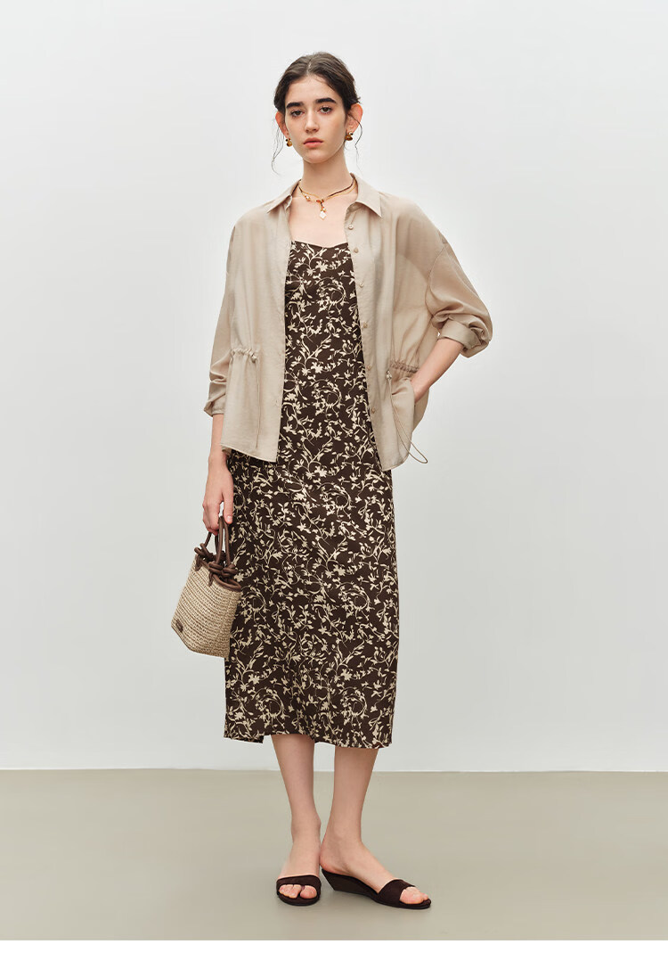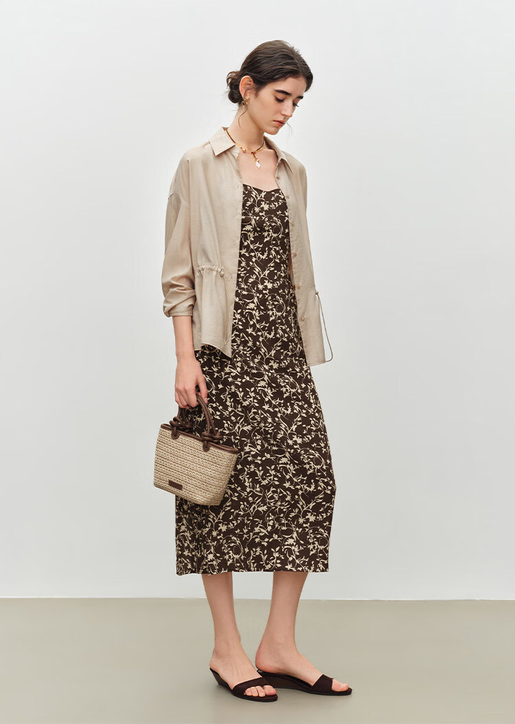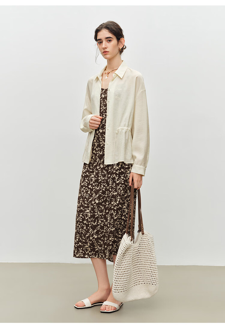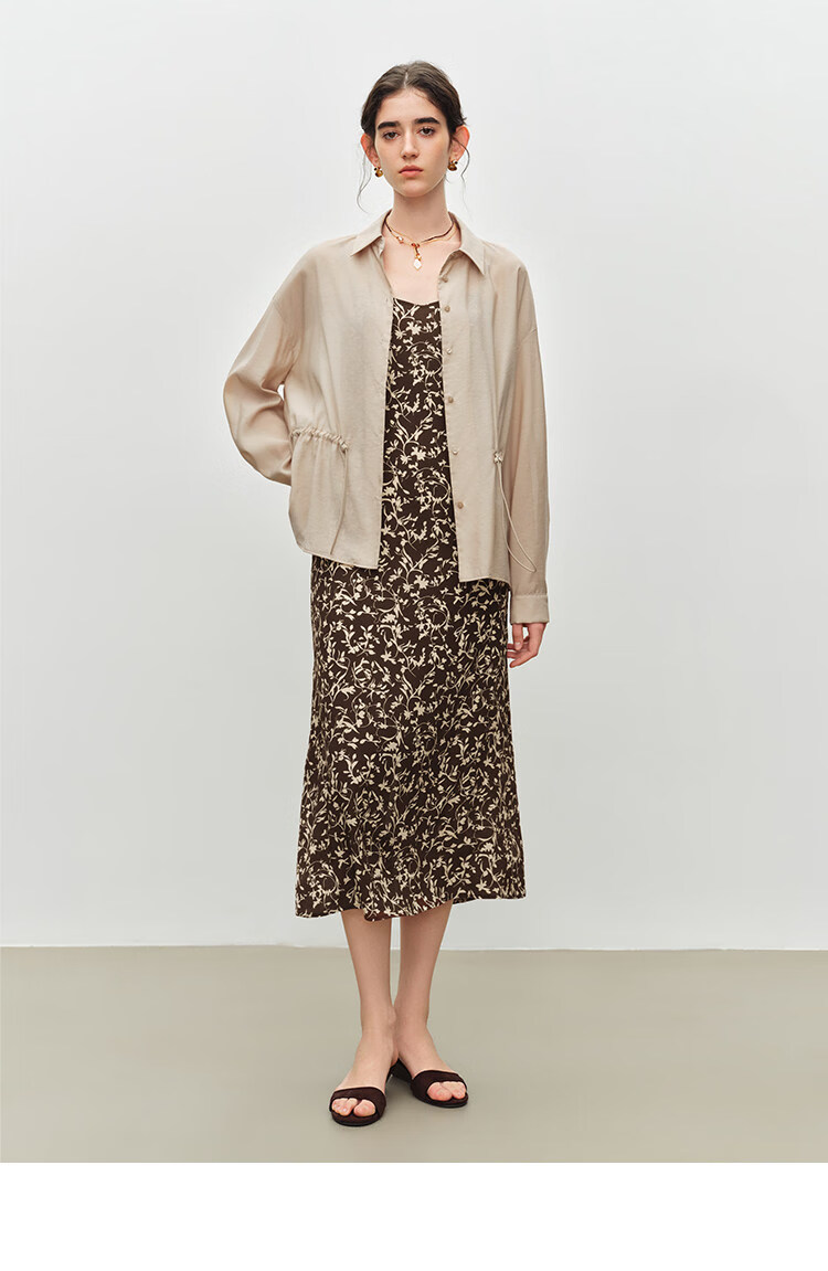 自巧小个子度假感翻领长袖收腰衬衫&印花吊带裙套装2026夏季新品 藤蔓印花连衣裙 XS (尺码:2)