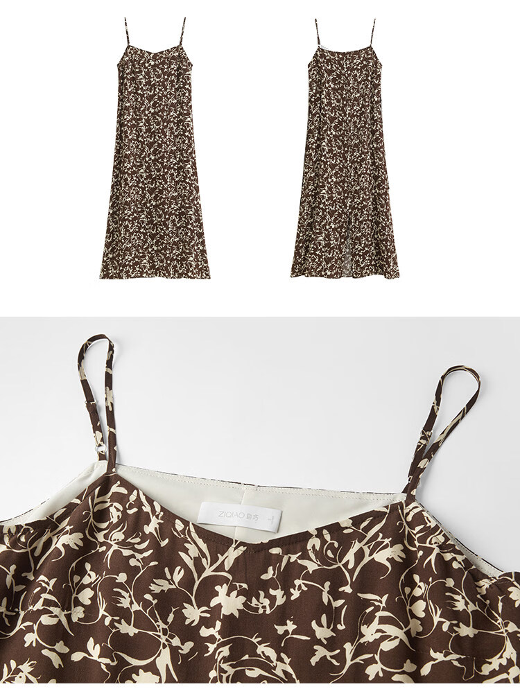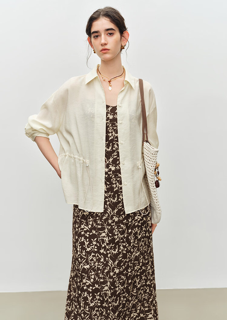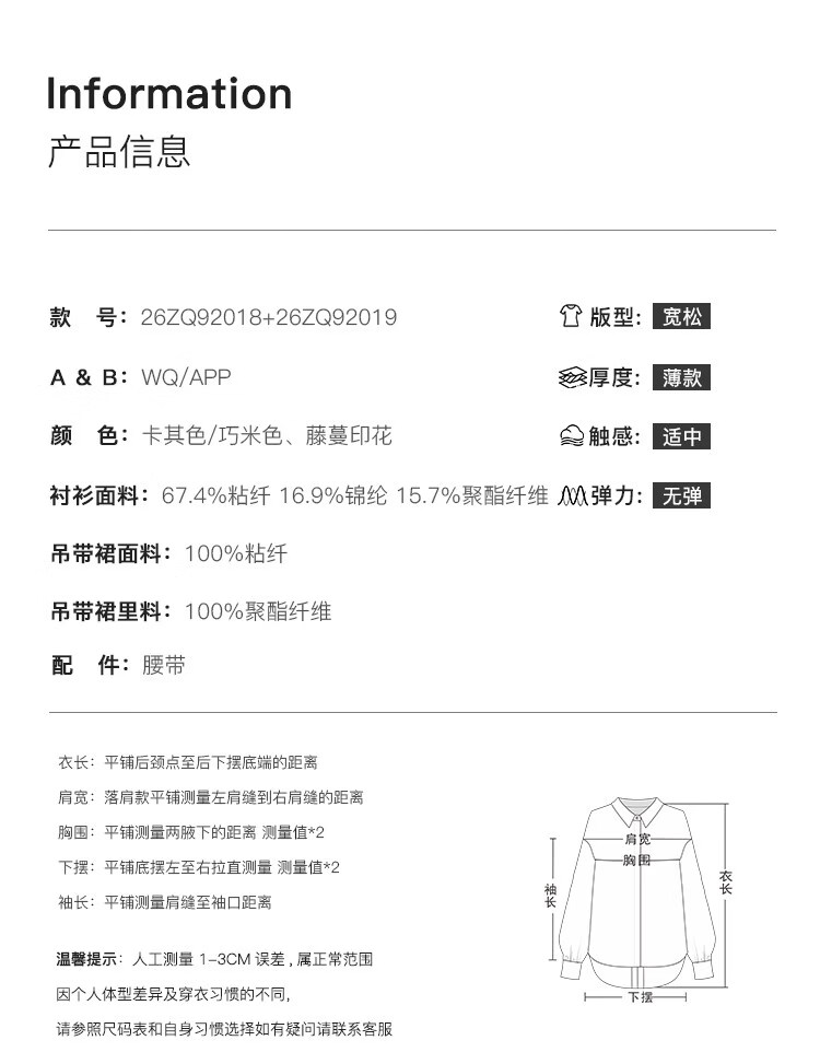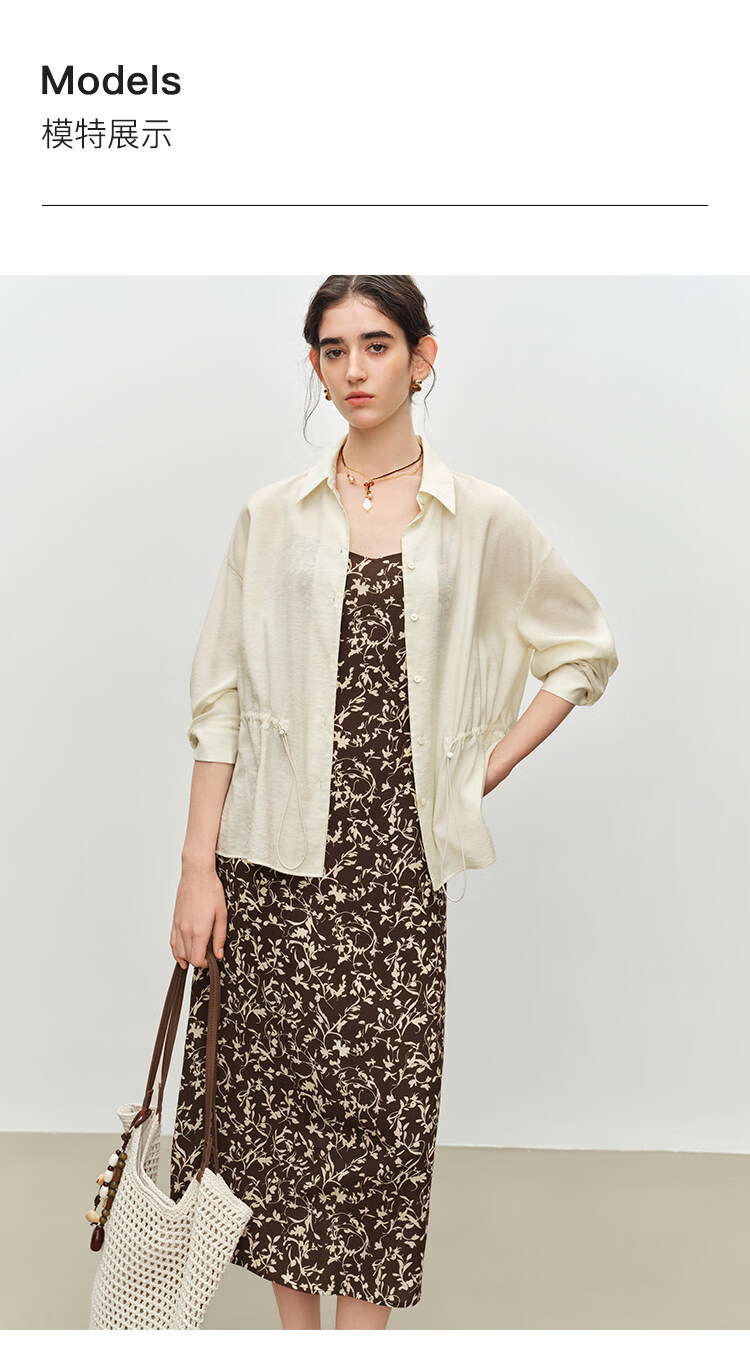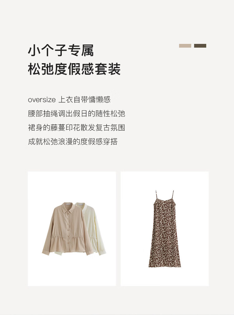 自巧小个子度假感翻领长袖收腰衬衫&印花吊带裙套装2026夏季新品 藤蔓印花连衣裙 XS (尺码:2)