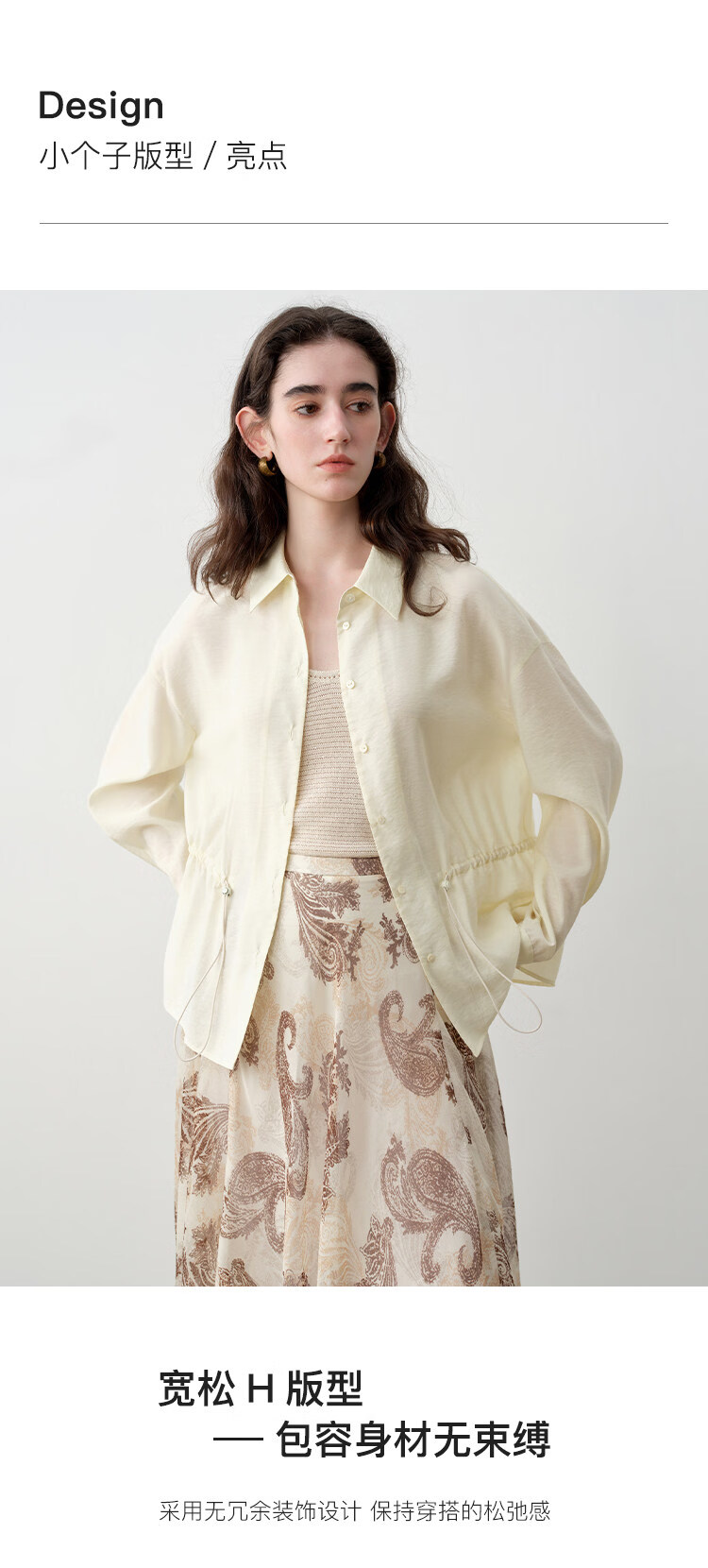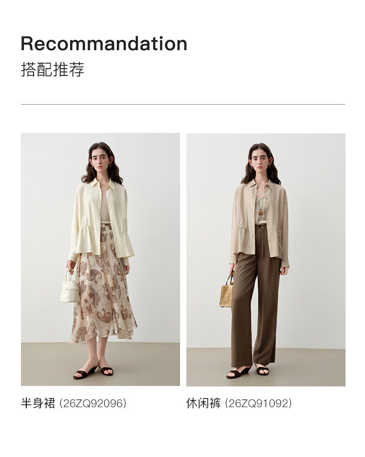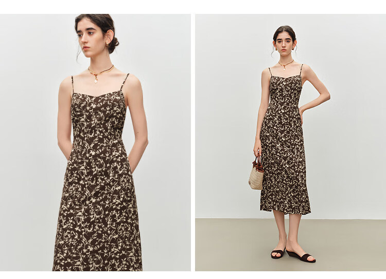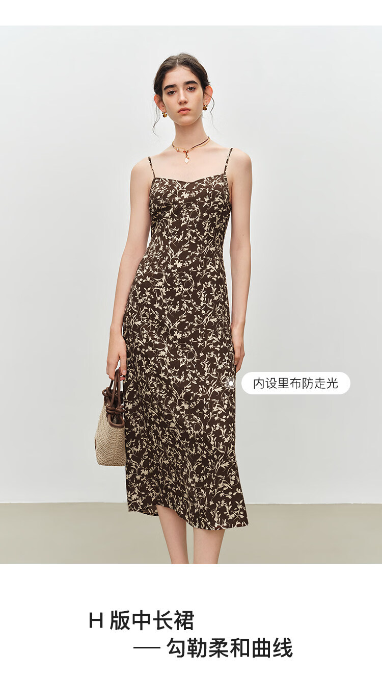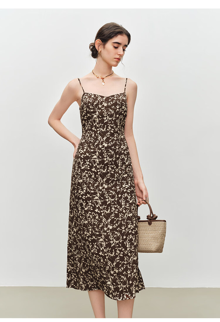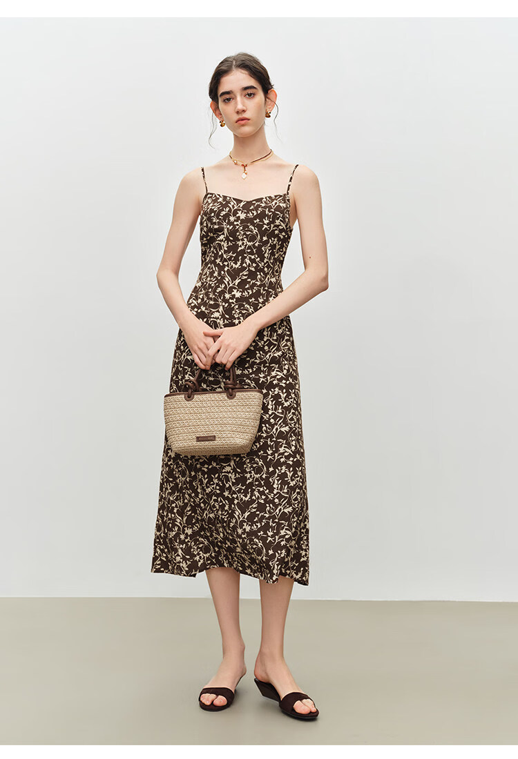 自巧小个子度假感翻领长袖收腰衬衫&印花吊带裙套装2026夏季新品 藤蔓印花连衣裙 XS (尺码:2)