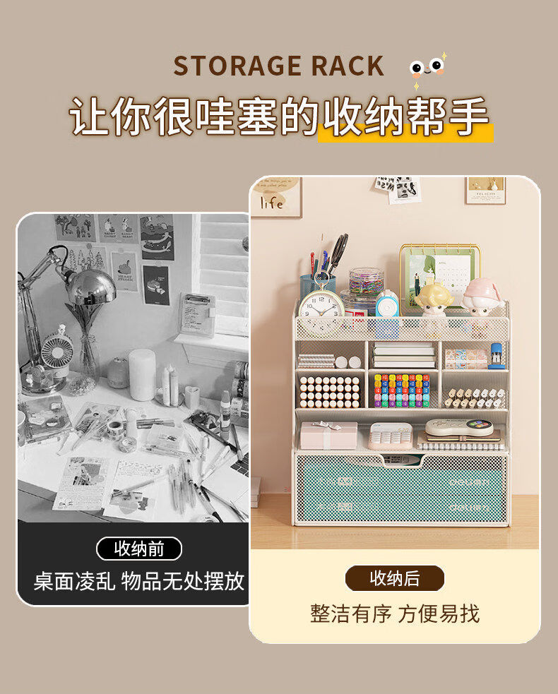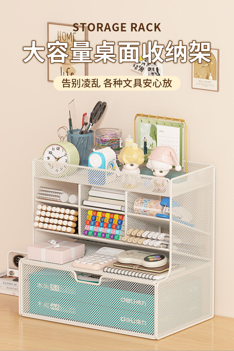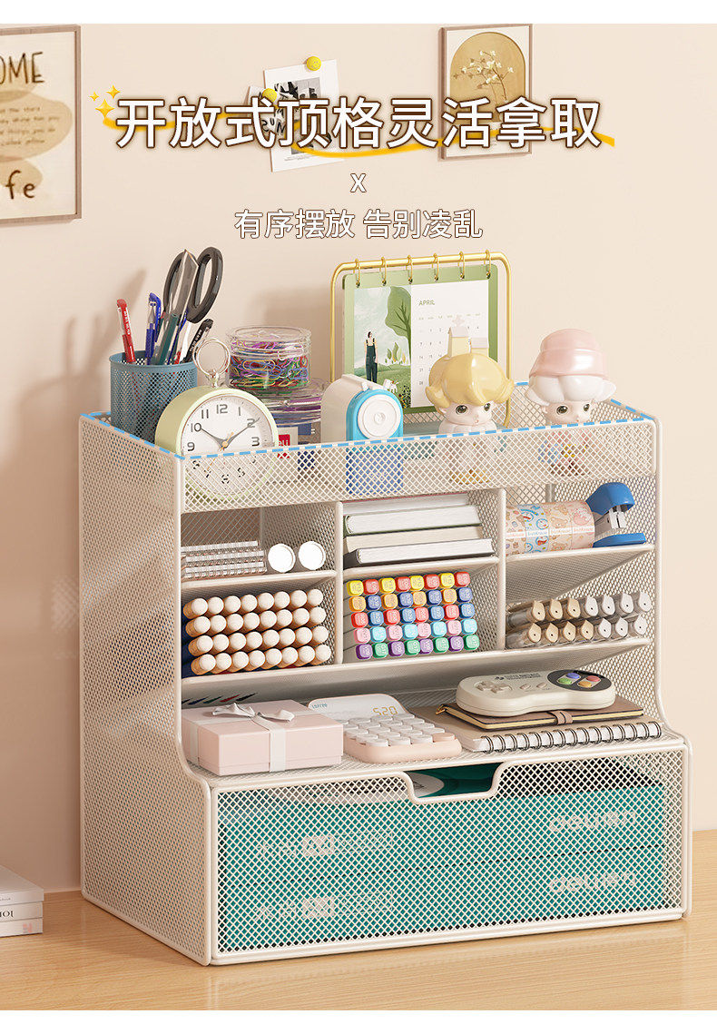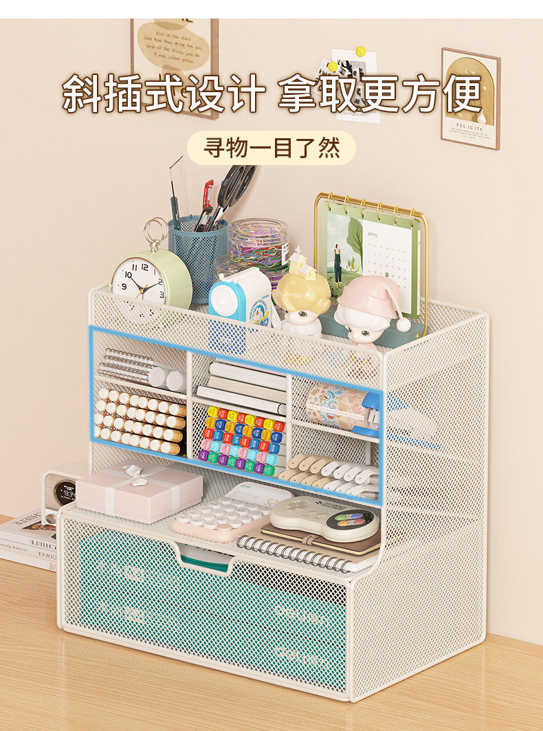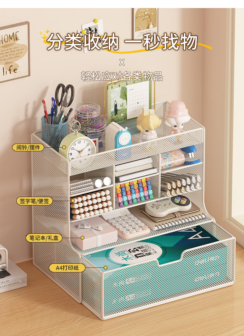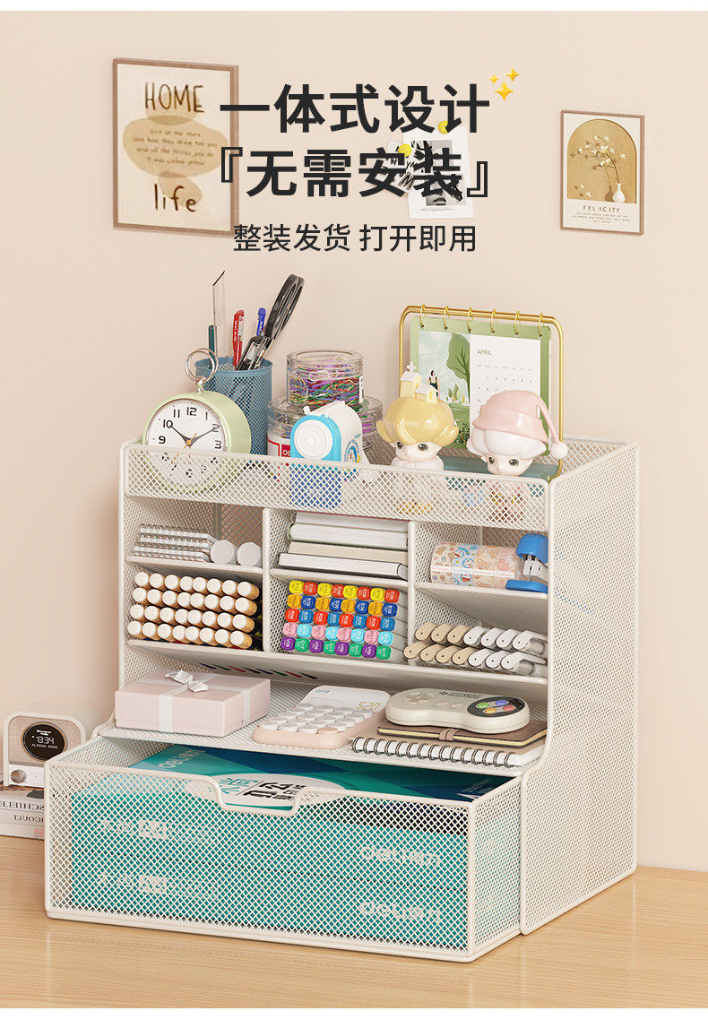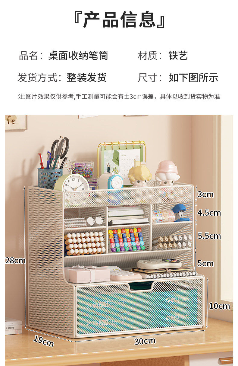 百目源(BAIMUYUANN)桌面收纳盒办公室杂物整理盒抽屉式文具大容量多功能斜插式笔筒架 大容量金属笔筒-黑色