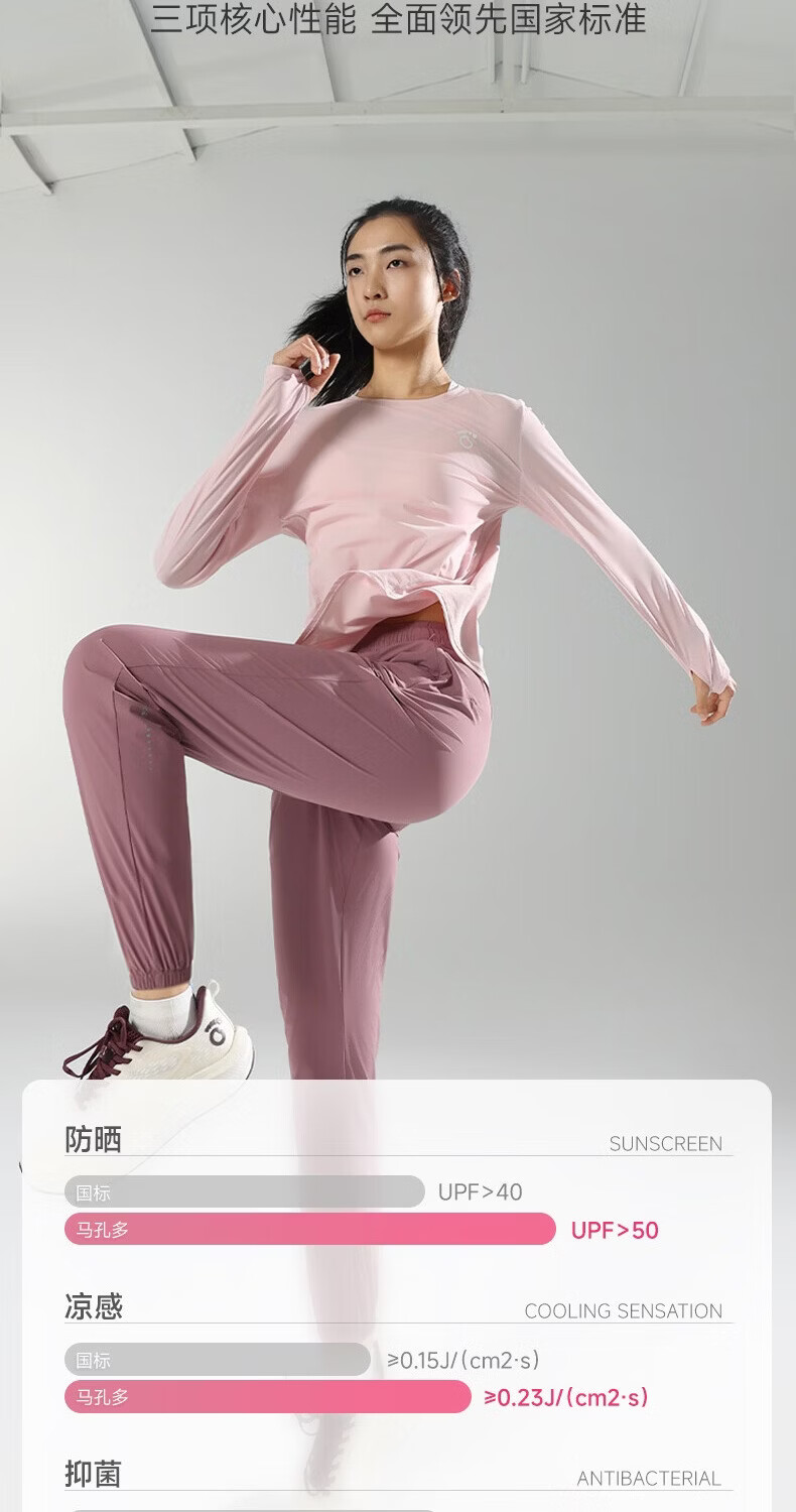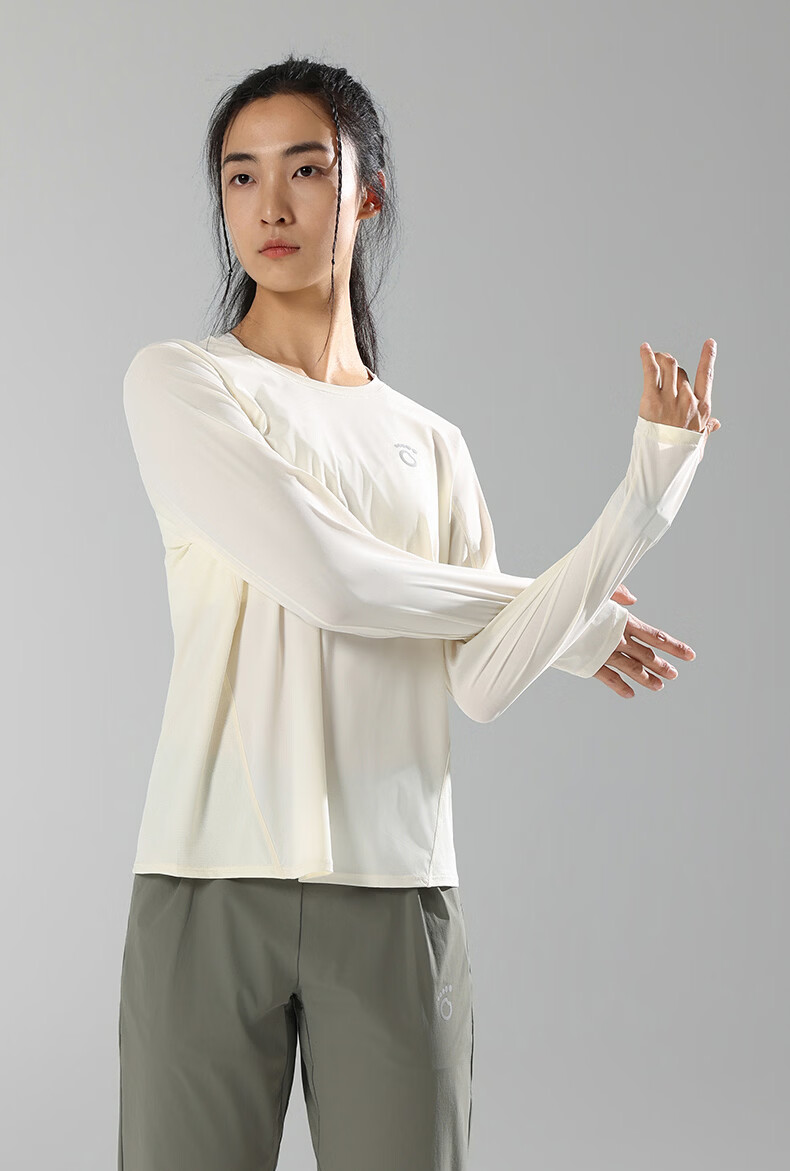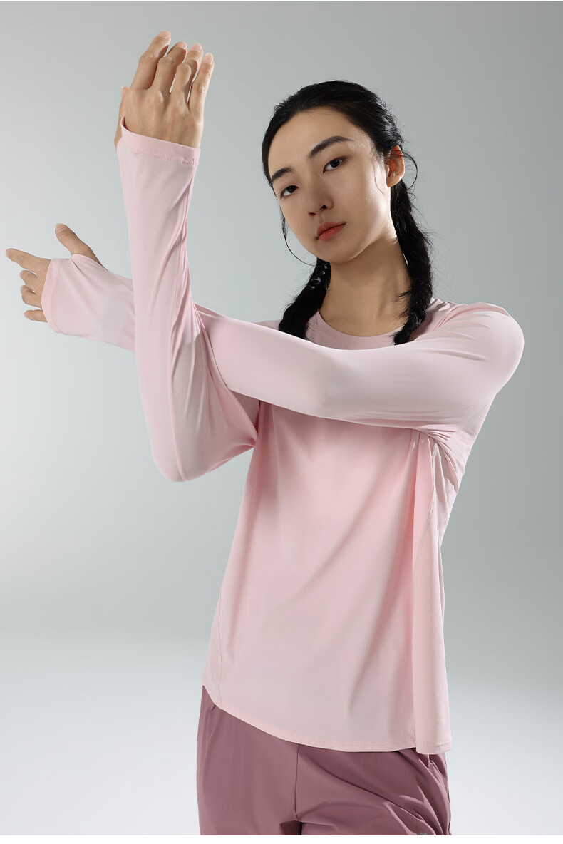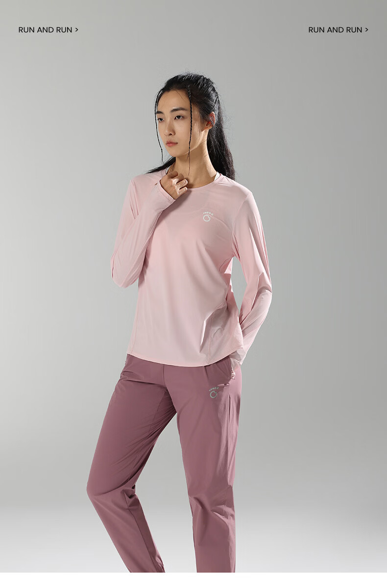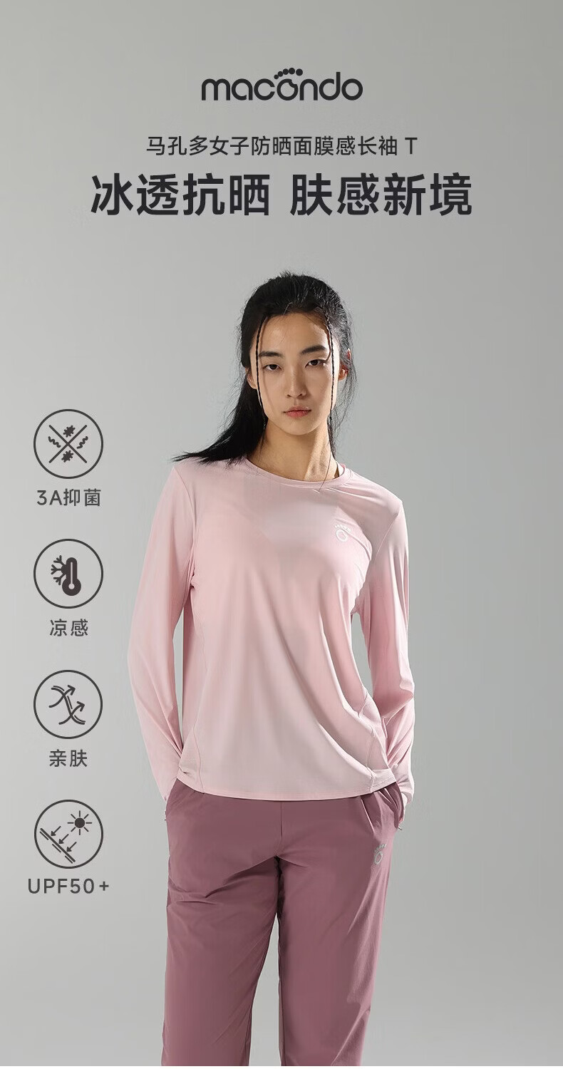 马孔多(macondo)26年女款面膜感跑步长袖T恤 速干衣水润清爽夏日原纱防晒抗菌 粉霜色 女款 S 【女90-105斤】