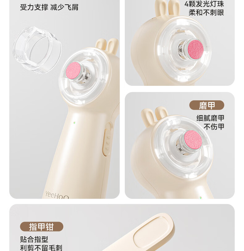 英氏(YEEHOO)婴儿指甲剪新生儿专用电动磨甲器幼儿童指甲刀宝宝指甲钳打磨 电动磨甲器套装+备用指甲剪