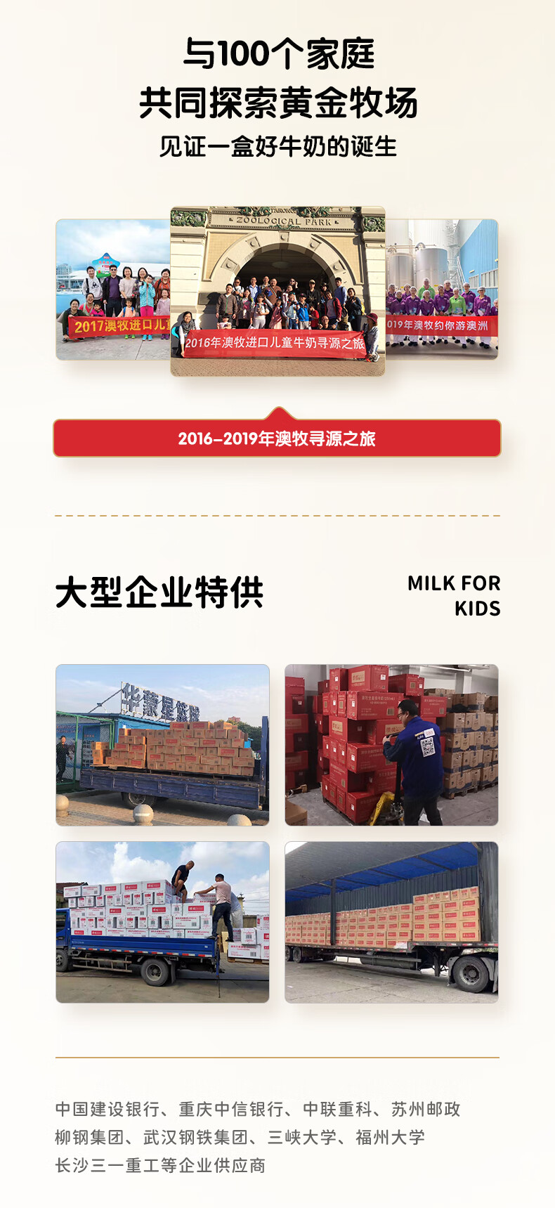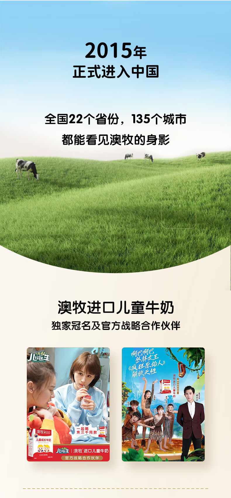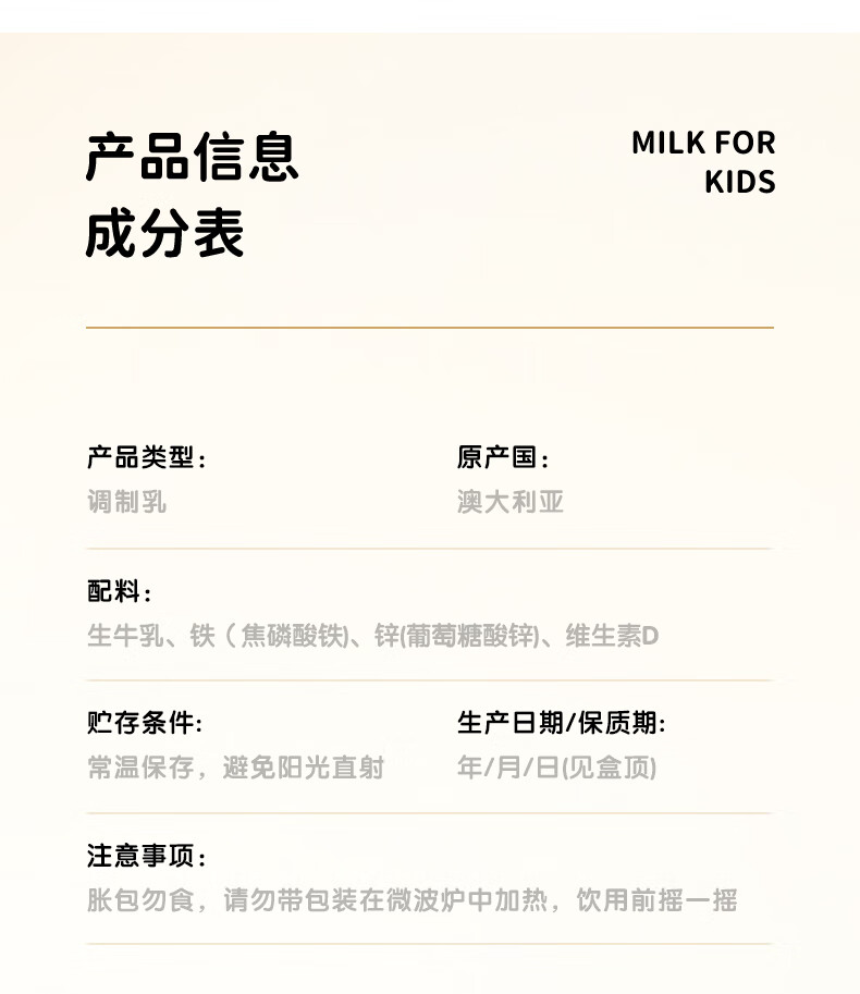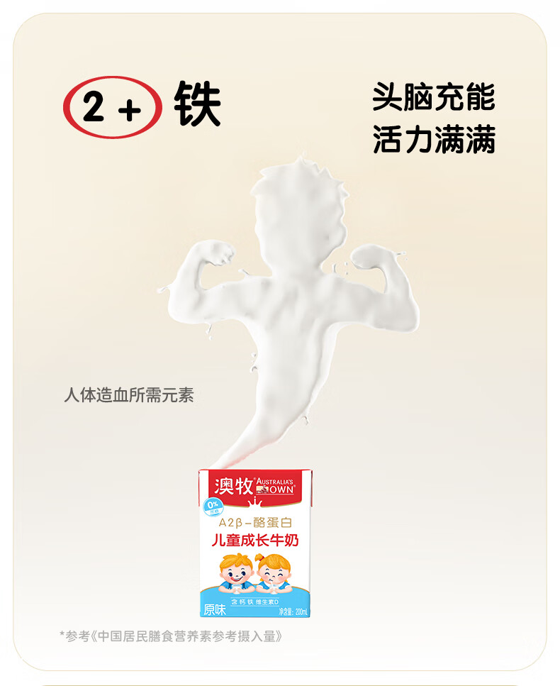 澳牧(Australia's Own)儿童成长牛奶A2蛋白钙铁锌VD 0蔗糖全脂学生早餐奶 200ml*6盒