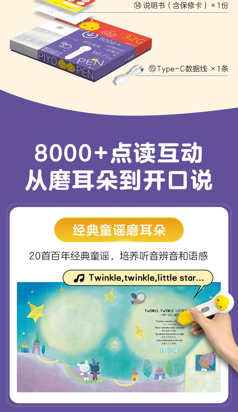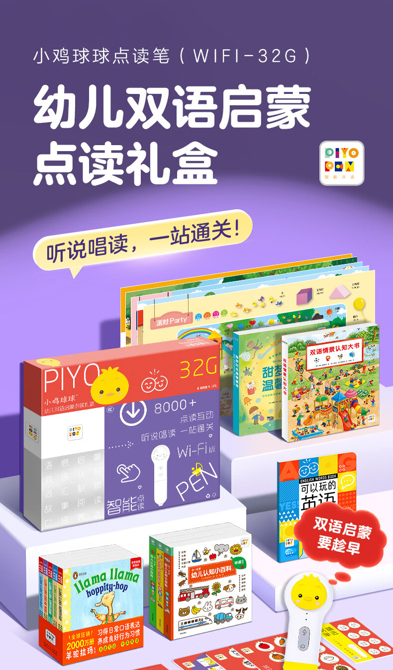 PIYO PEN小鸡球球智能点读笔32G幼儿双语启蒙早教男孩女孩玩具生日礼物