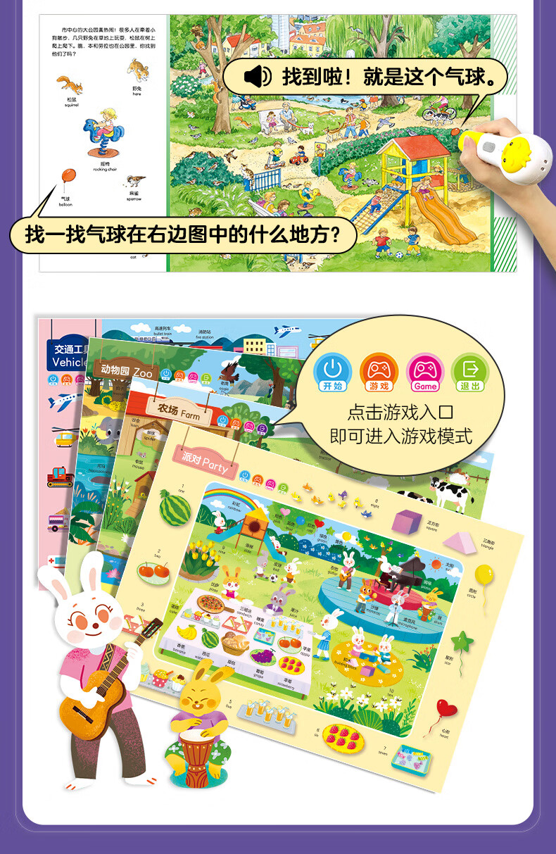 乐乐鱼(leleyu)卡通兔有声早教挂图儿童玩具宝宝识字表墙贴3张男孩女孩生日礼物
