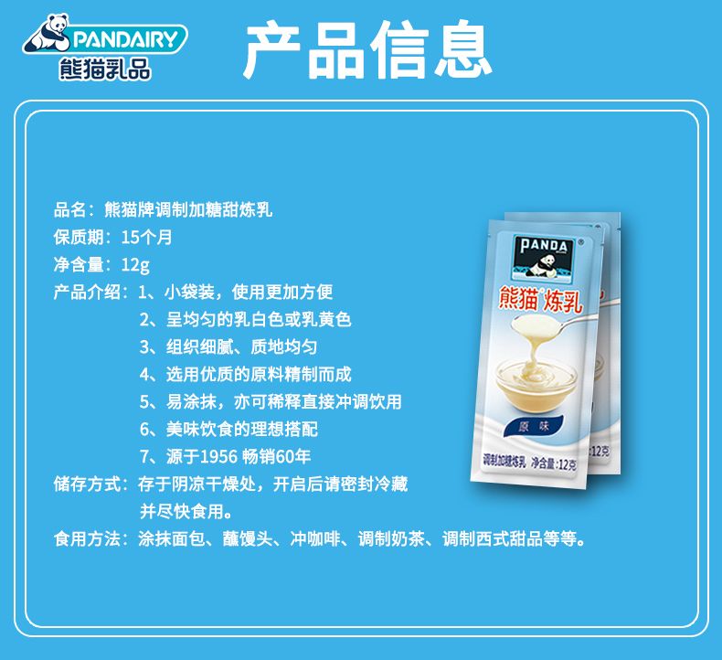 熊猫牌炼乳12g小包装家用蛋糕蛋挞蘸面包咖啡奶茶烘焙原材料炼奶 熊猫牌炼乳12g*5袋
