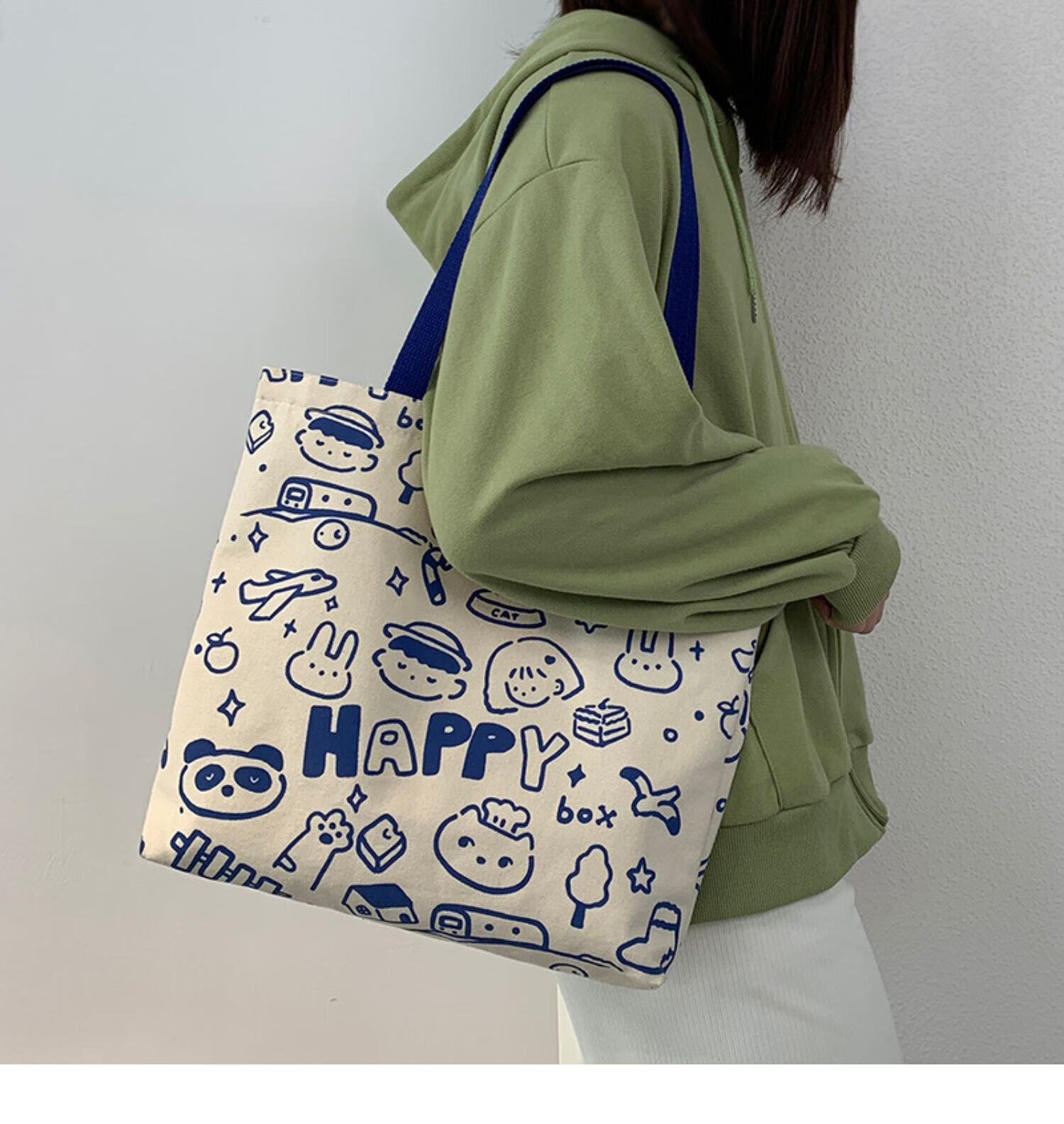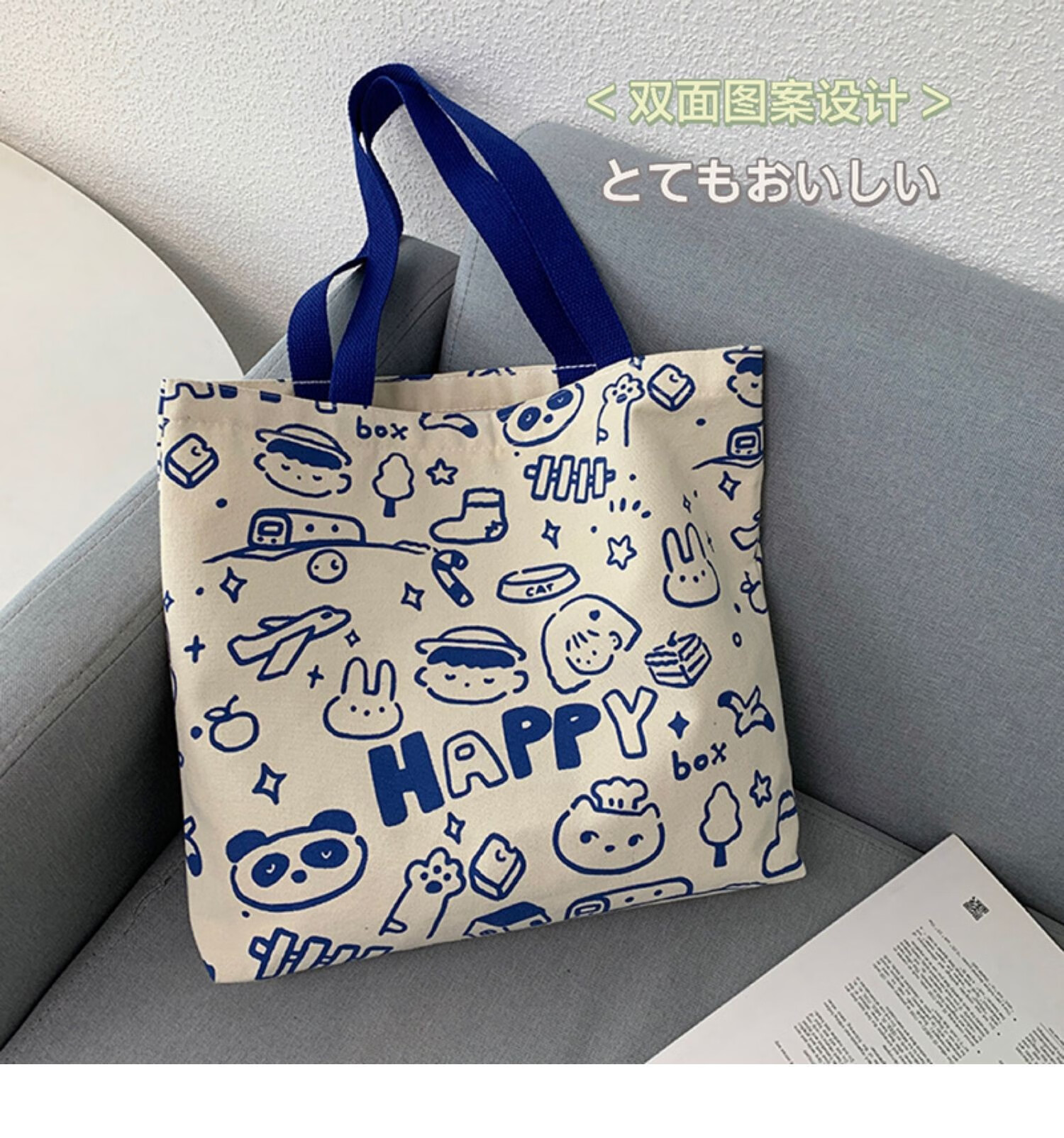 【优选好物】韩风新款帆布包包女大学生上课单肩手提书包袋大容量 保持快乐帆布包