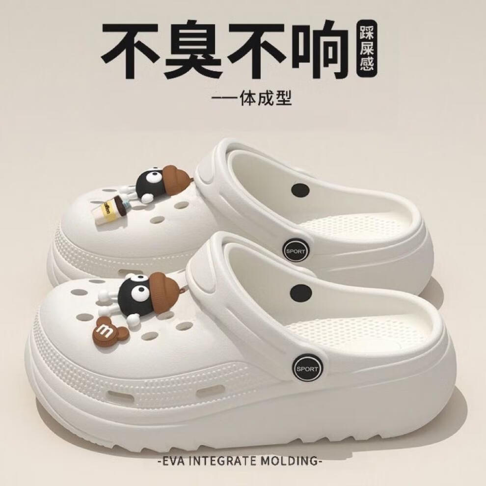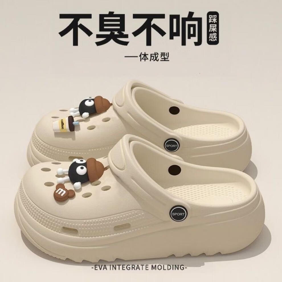 网红煤球洞洞鞋女百搭平底外穿防滑沙滩鞋包头居家凉拖鞋 煤球-卡其 44-45