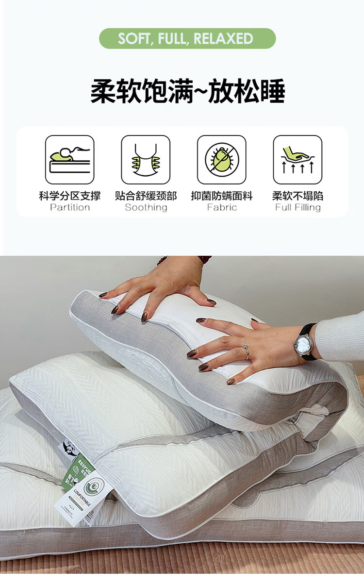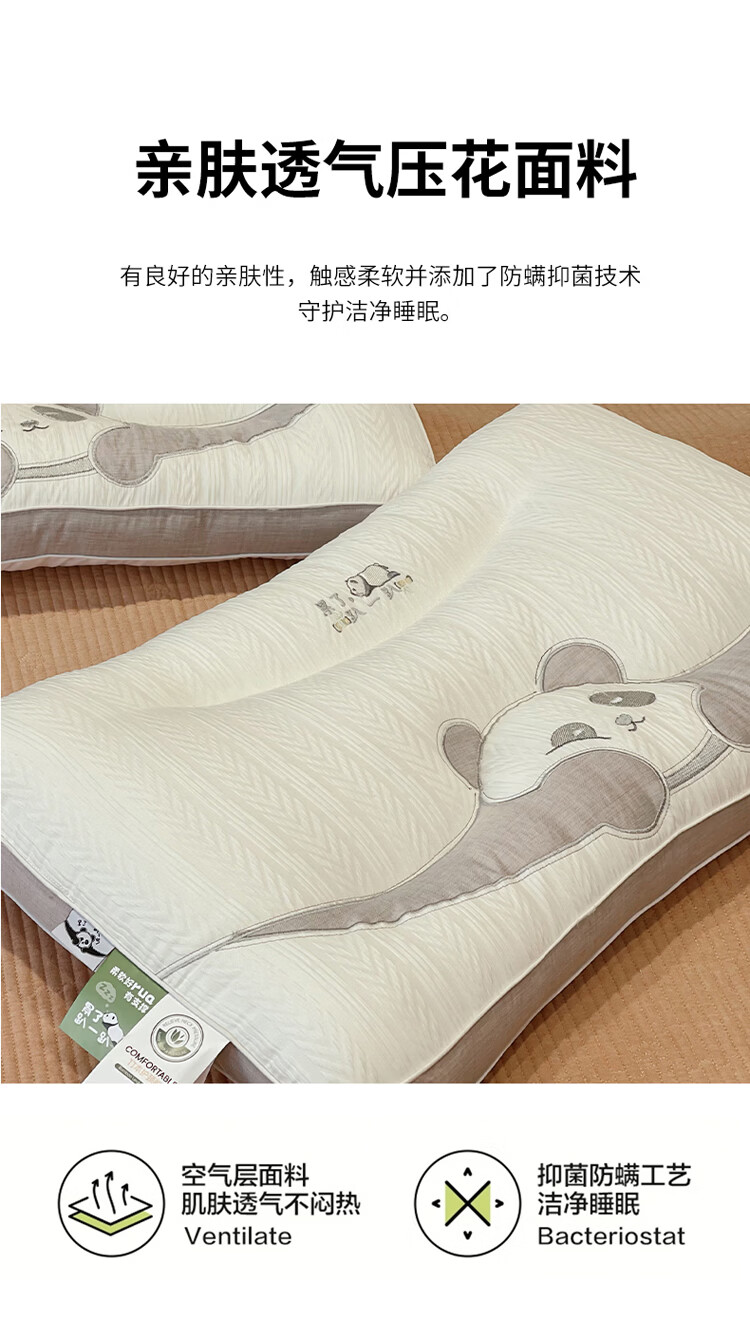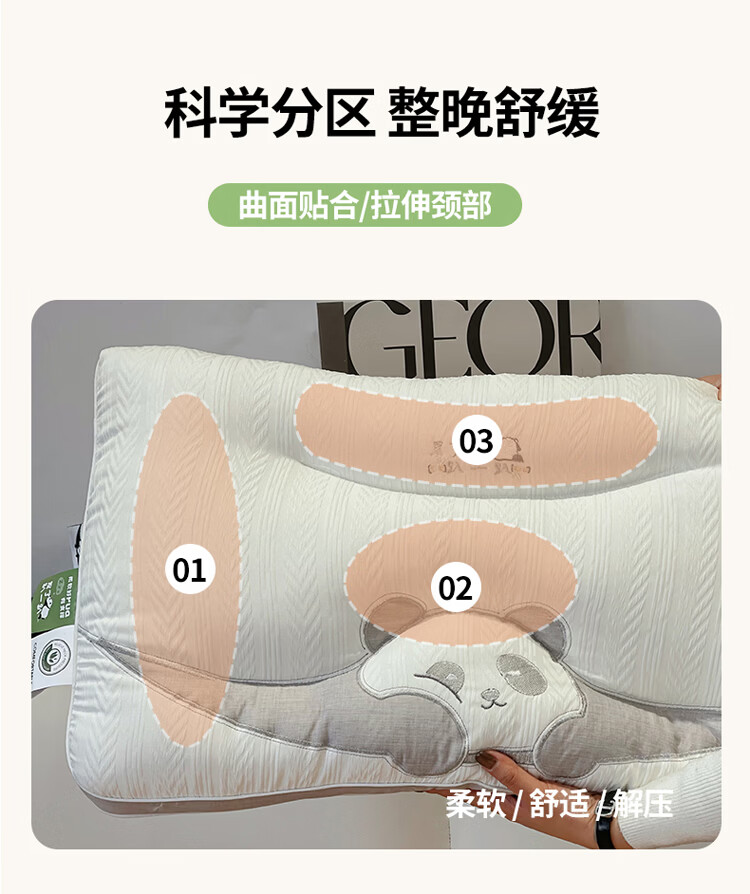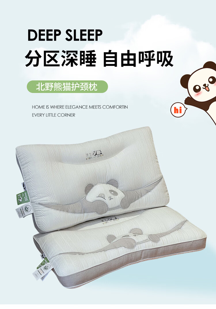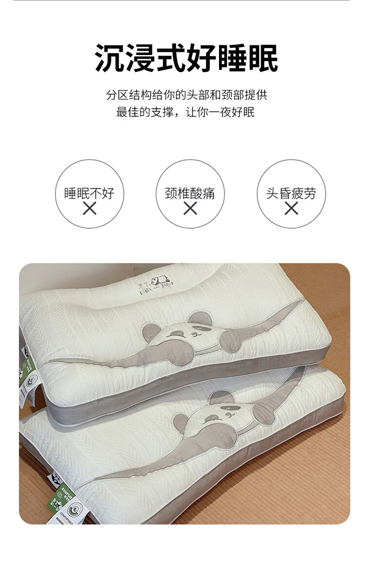 ROLAND LIVE护颈枕家用科学分区透气枕芯单人枕可回弹抗菌柔软48*74一对装 TXA 北野熊猫护颈枕 【一只装】 48*74cm