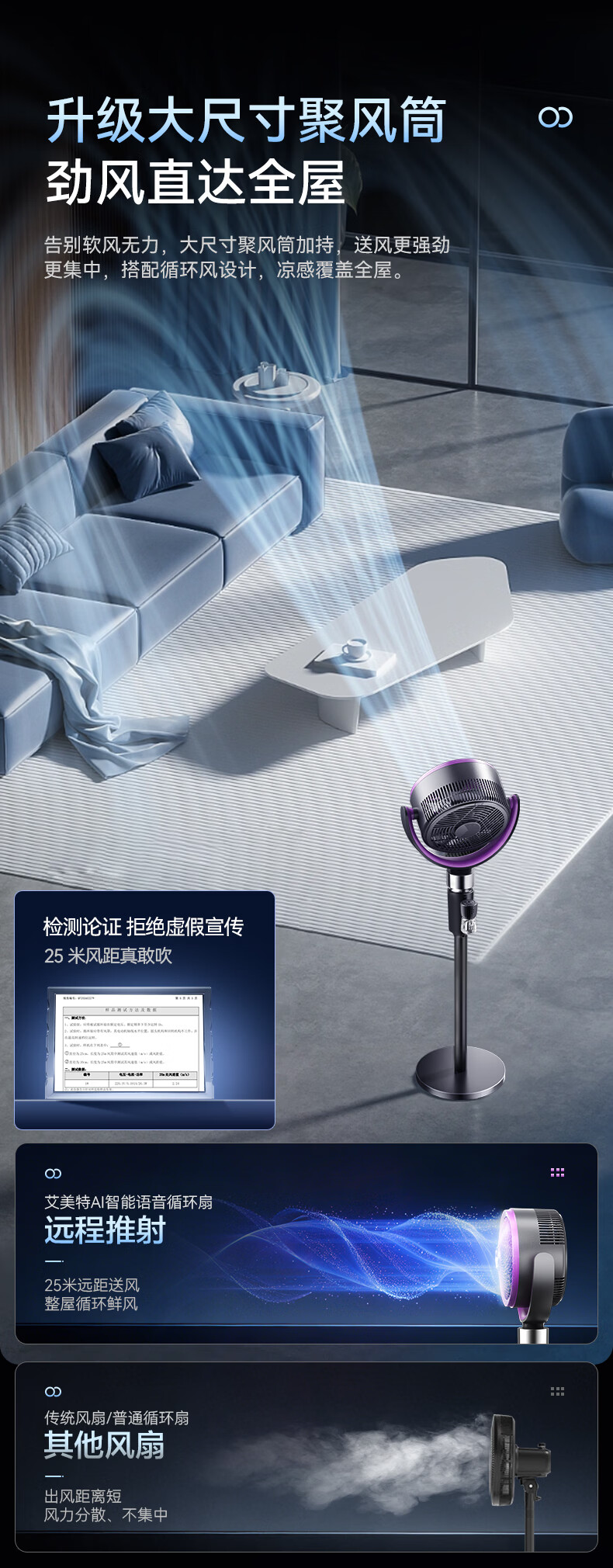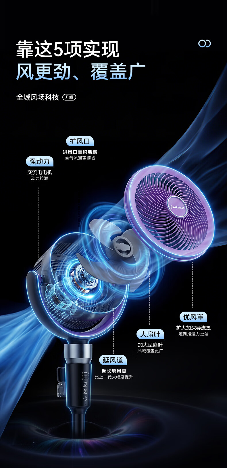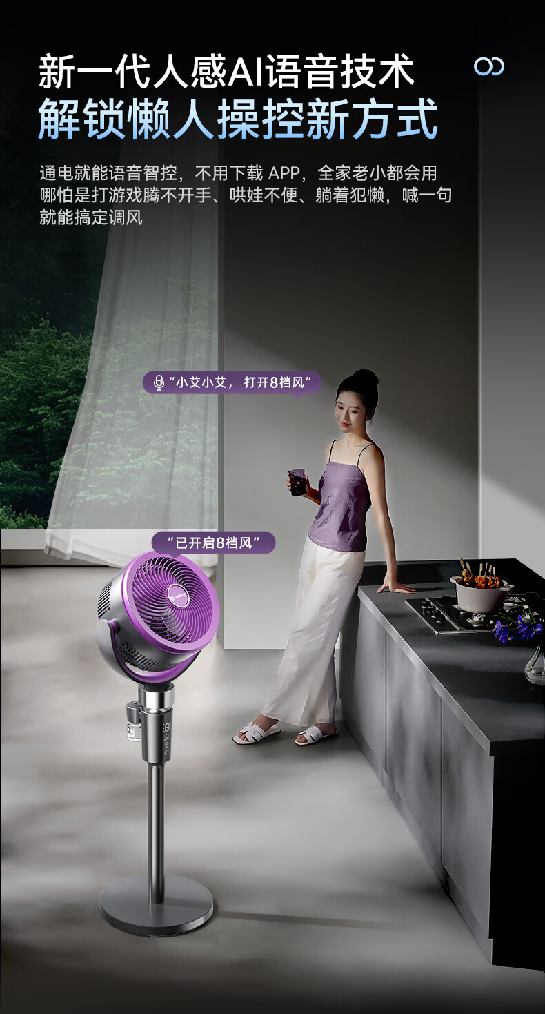 艾美特(AIRMATE)【升级驱蚊】AI语音空气循环扇家用电风扇负离子净化落地扇遥控定时2026新款空调伴侣 【新风MAX】+FA18-SQRD238