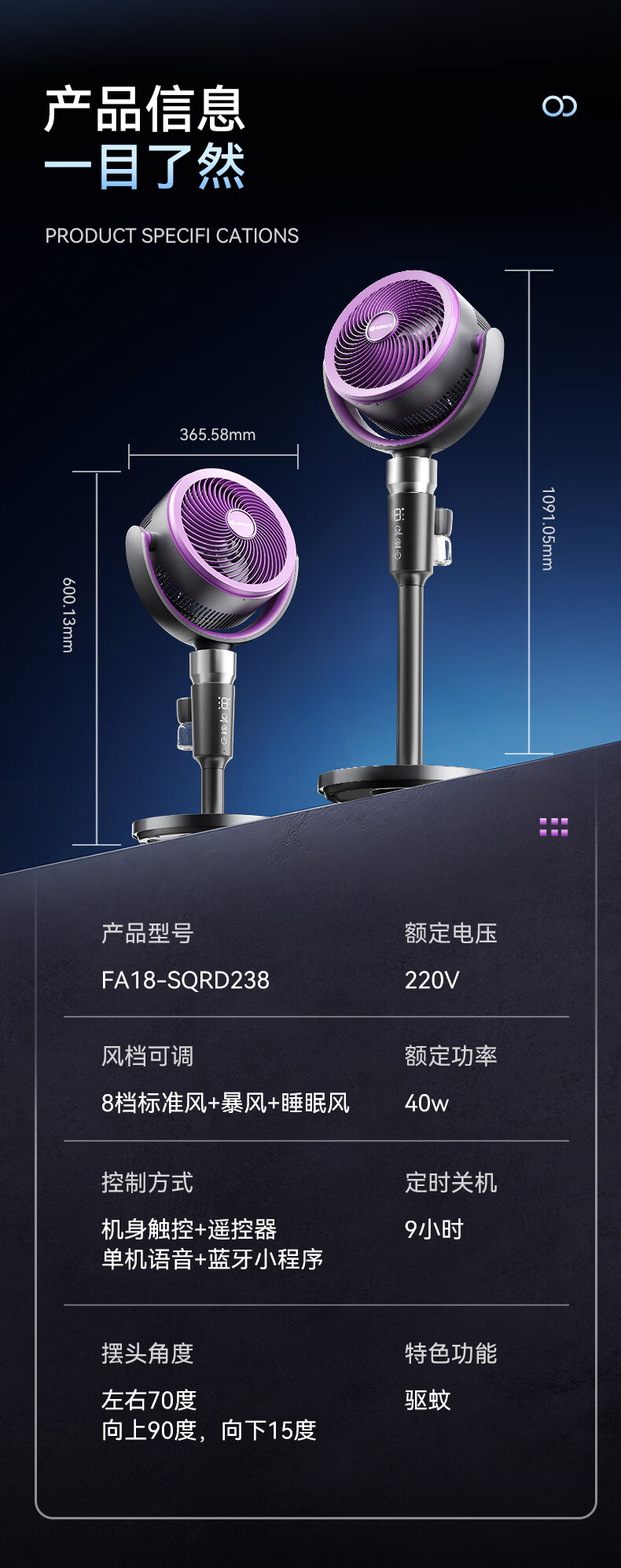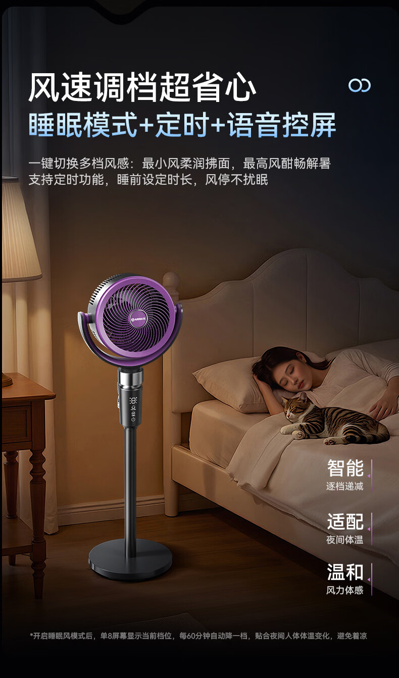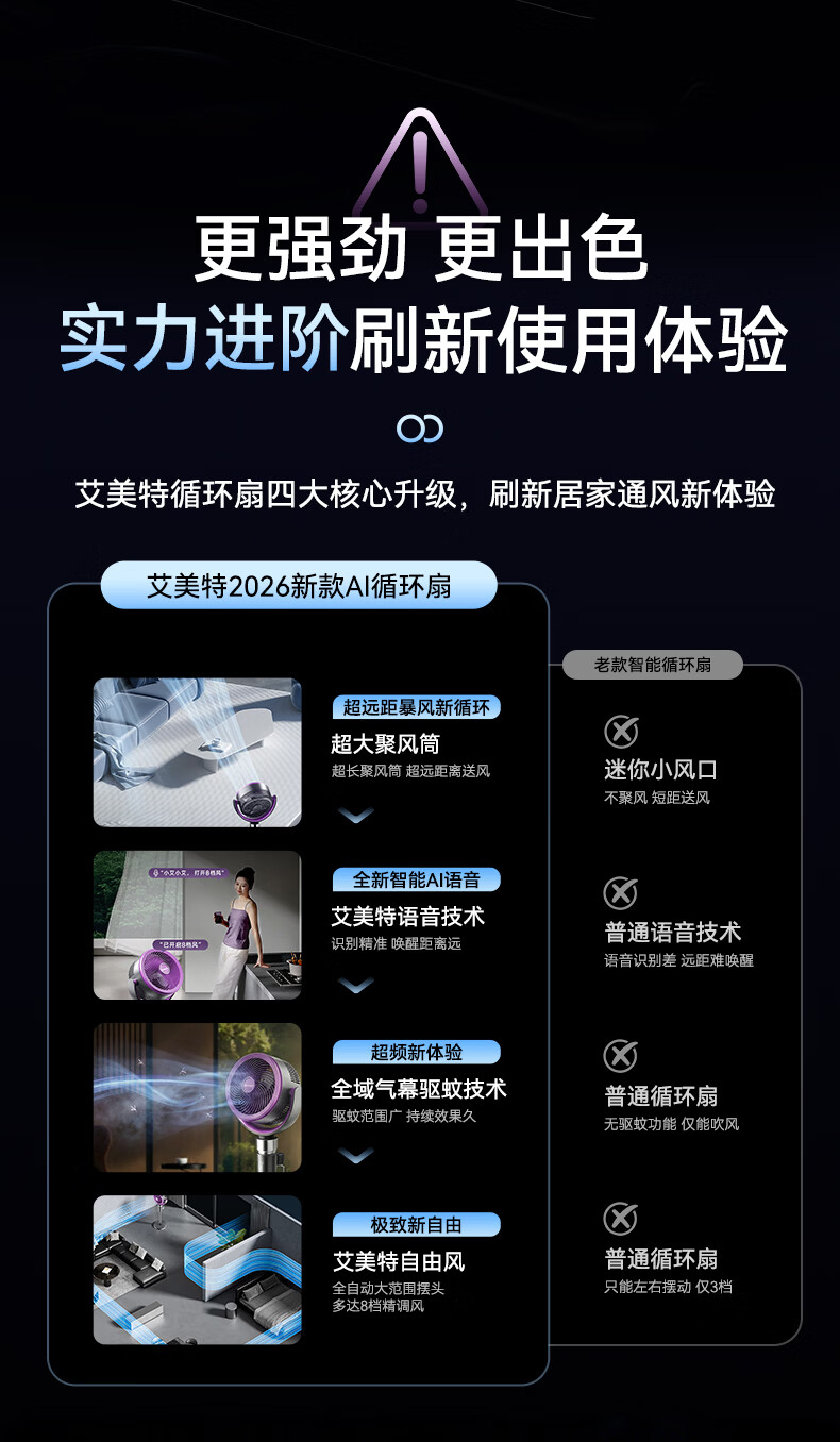 艾美特(AIRMATE)【升级驱蚊】AI语音空气循环扇家用电风扇负离子净化落地扇遥控定时2026新款空调伴侣 【新风MAX】+FA18-SQRD238