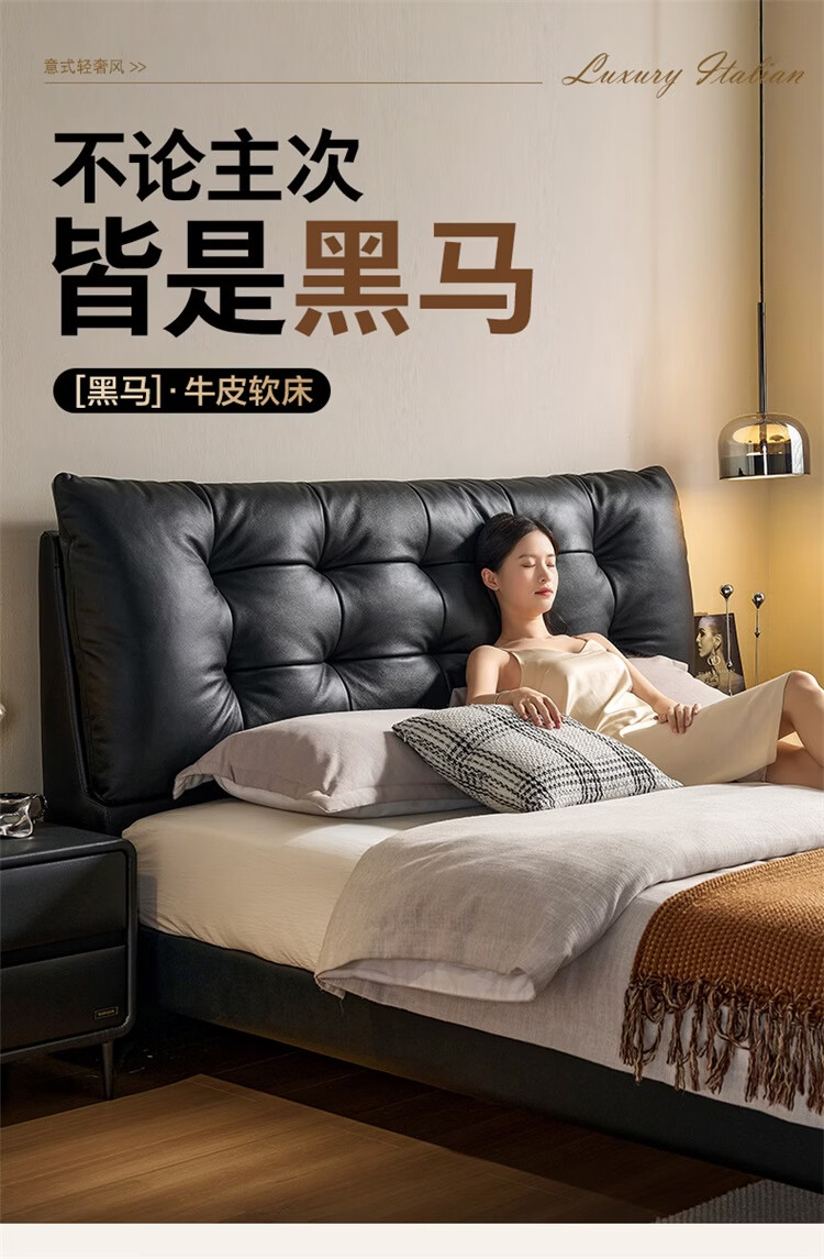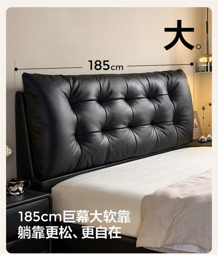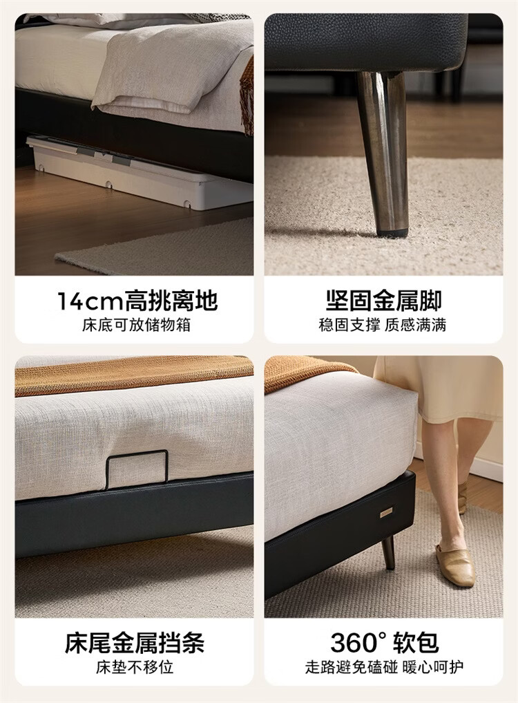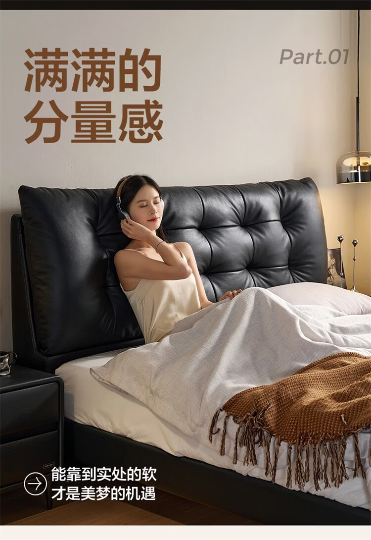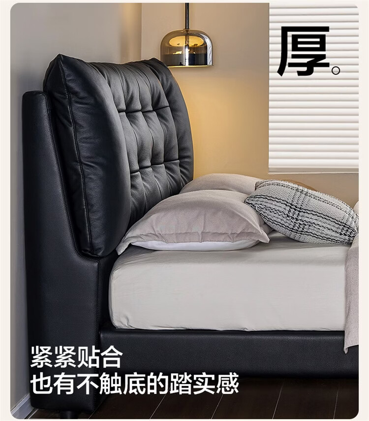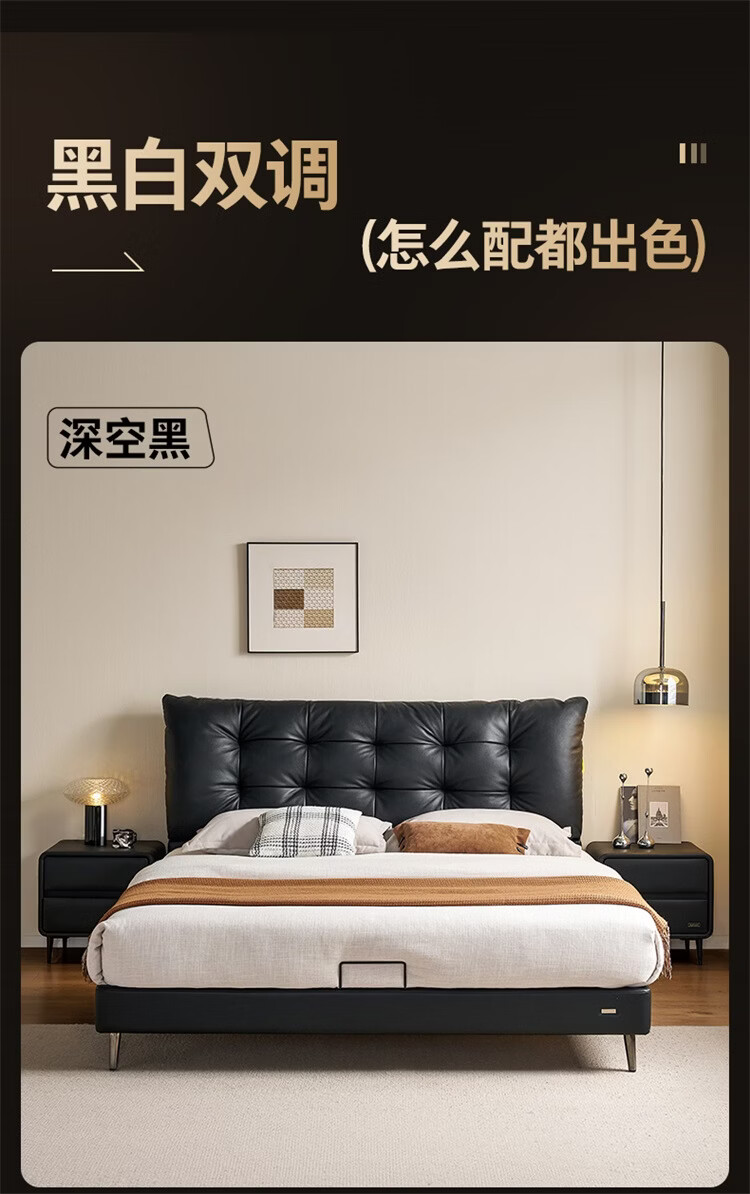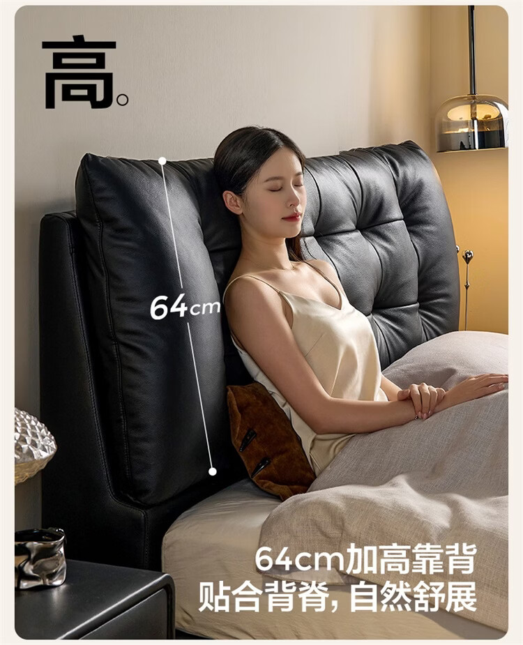 全友家居现代简约风皮艺床家用卧室轻奢高级感2026新款头层牛皮床家具 【深空黑丨牛皮】高脚床 1.8米x2米 单床