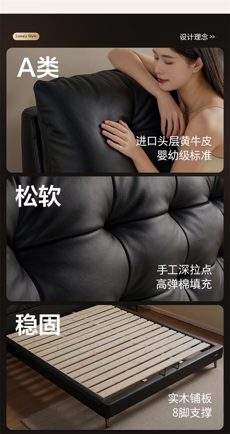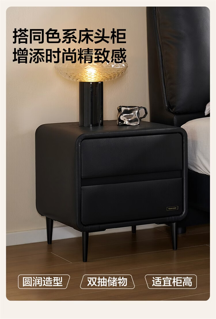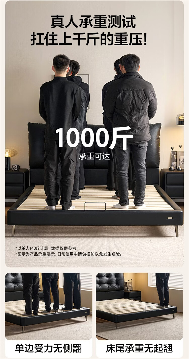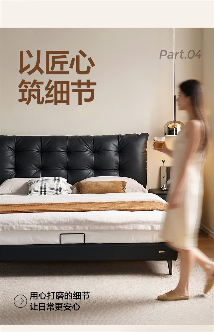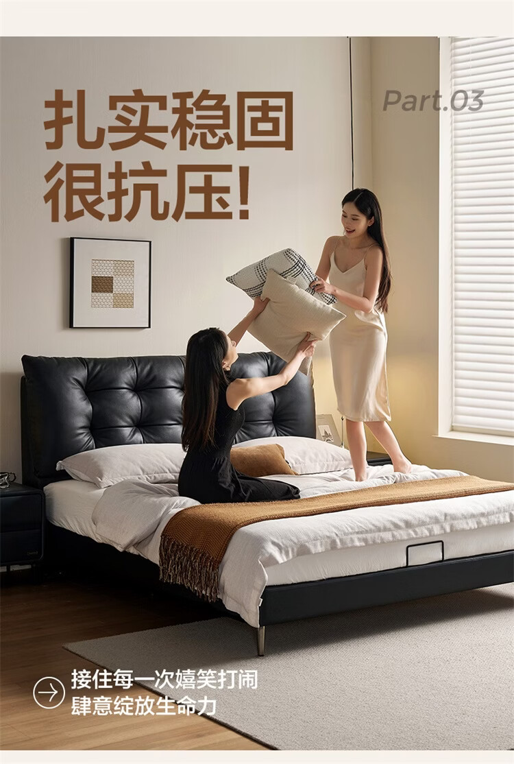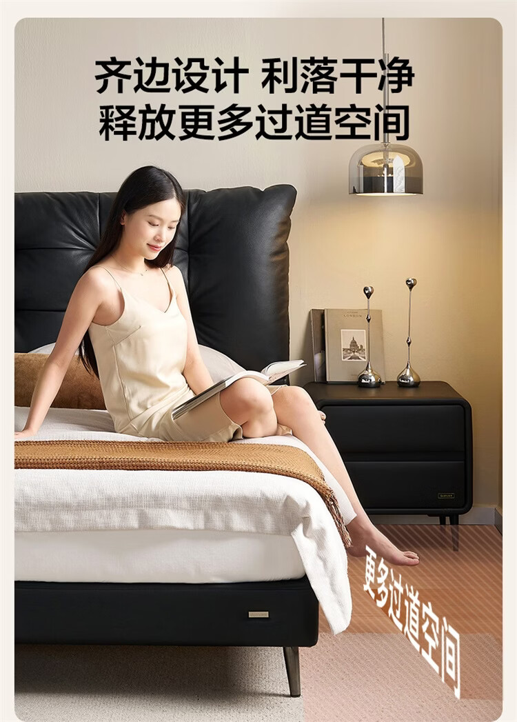 全友家居现代简约风皮艺床家用卧室轻奢高级感2026新款头层牛皮床家具 【深空黑丨牛皮】高脚床 1.8米x2米 单床