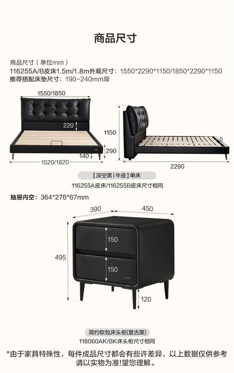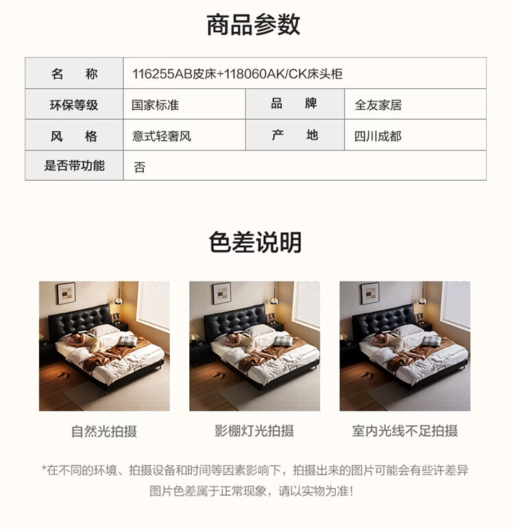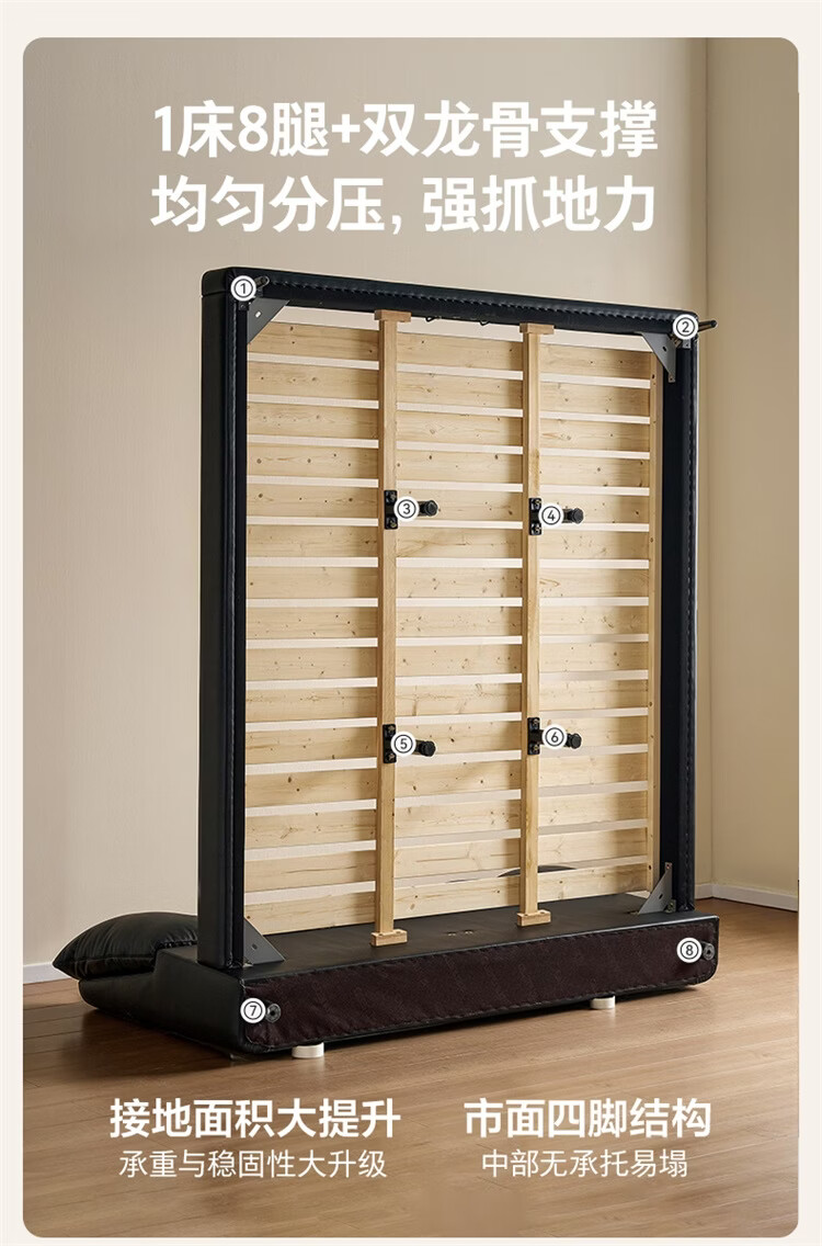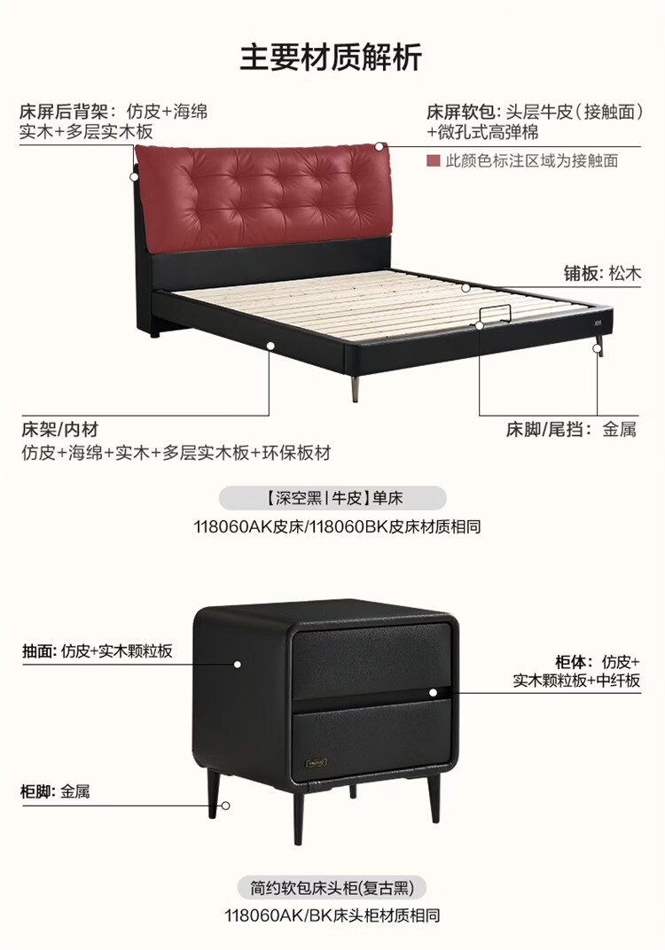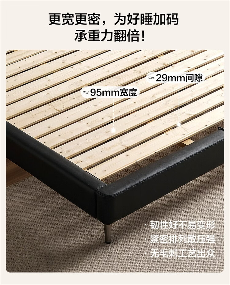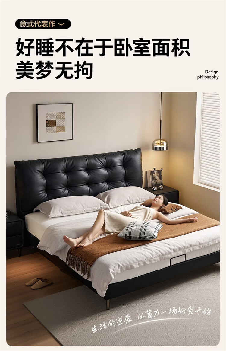 全友家居现代简约风皮艺床家用卧室轻奢高级感2026新款头层牛皮床家具 【深空黑丨牛皮】高脚床 1.8米x2米 单床