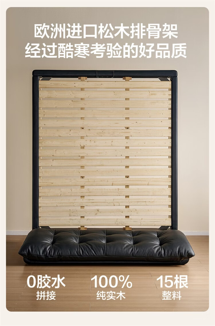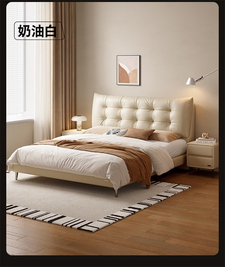 全友家居皮艺悬浮床1.8x2米主卧室双人大床奶油风头层牛皮真皮软包床 【云之垫安睡Pro】进口乳胶+独袋弹簧|厚23cm 1.5x2米