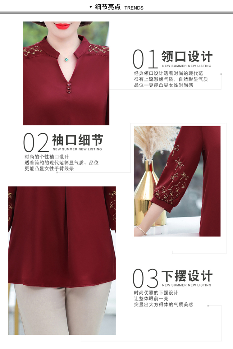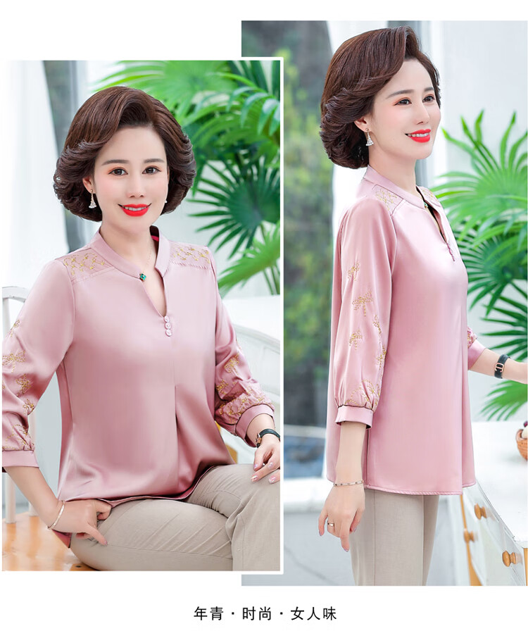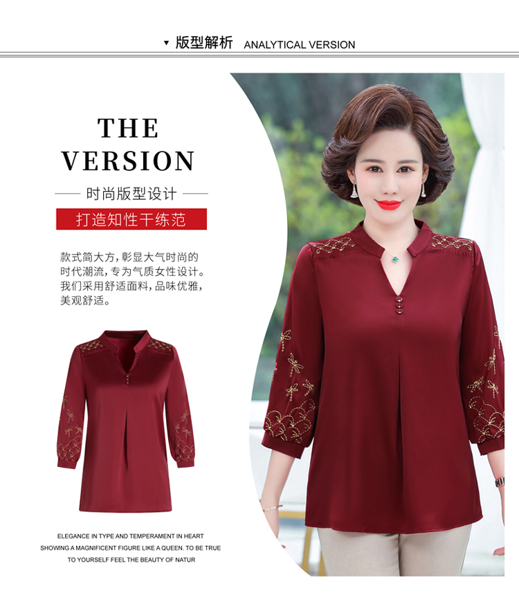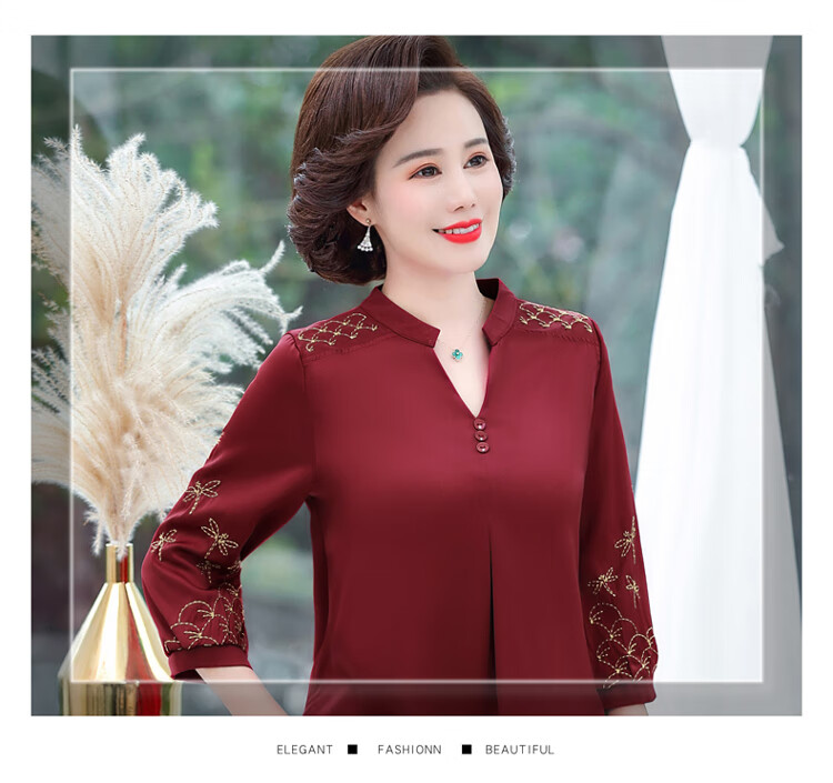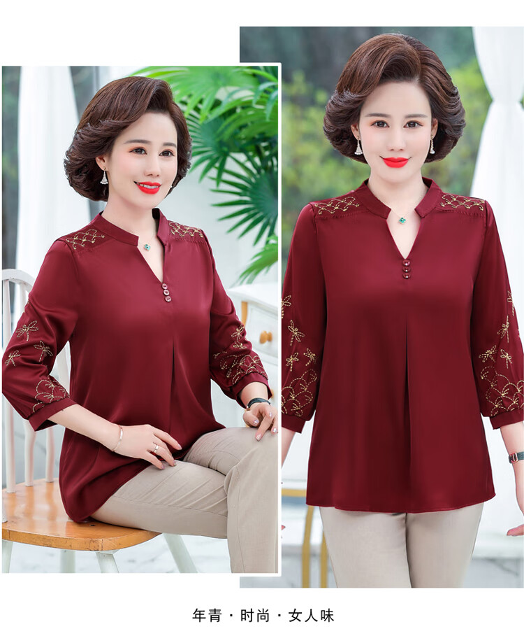 孜颜中老年女装夏季衬衫套装妈妈装夏装七分袖上衣50岁夏季母亲衣服女 红色上衣 XL (建议90-105斤)