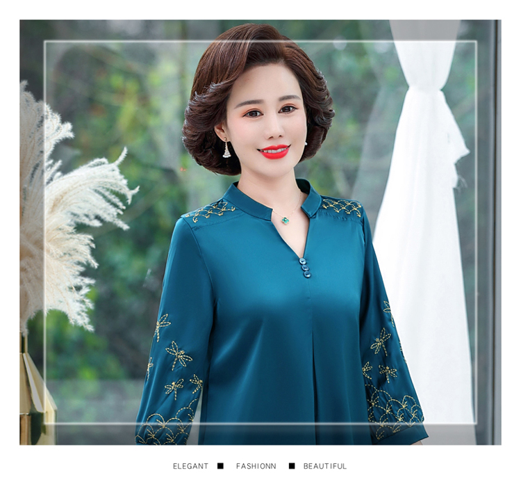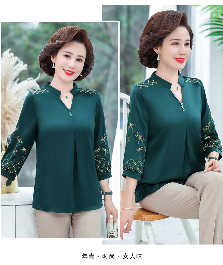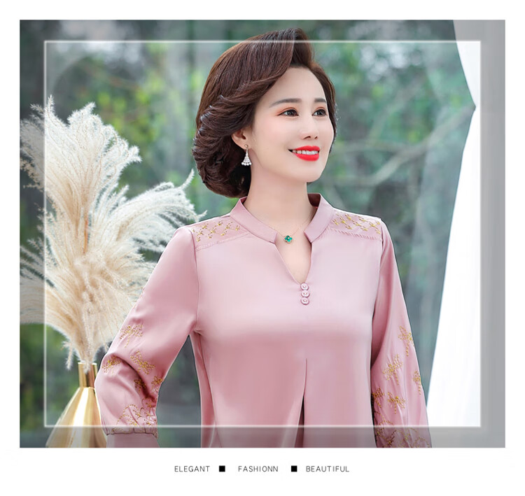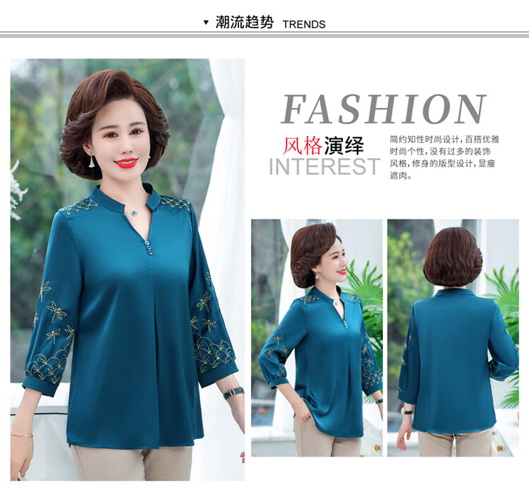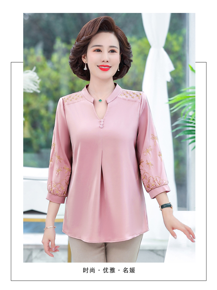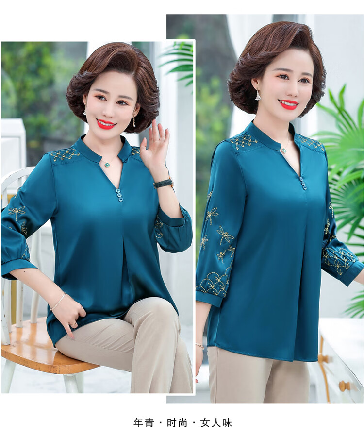 孜颜中老年女装夏季衬衫套装妈妈装夏装七分袖上衣50岁夏季母亲衣服女 红色上衣 XL (建议90-105斤)
