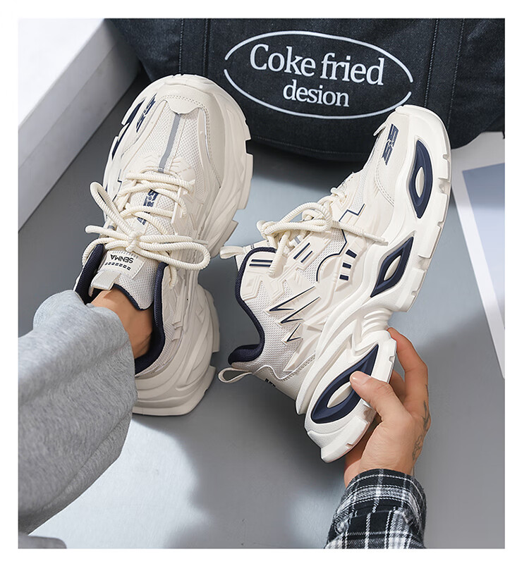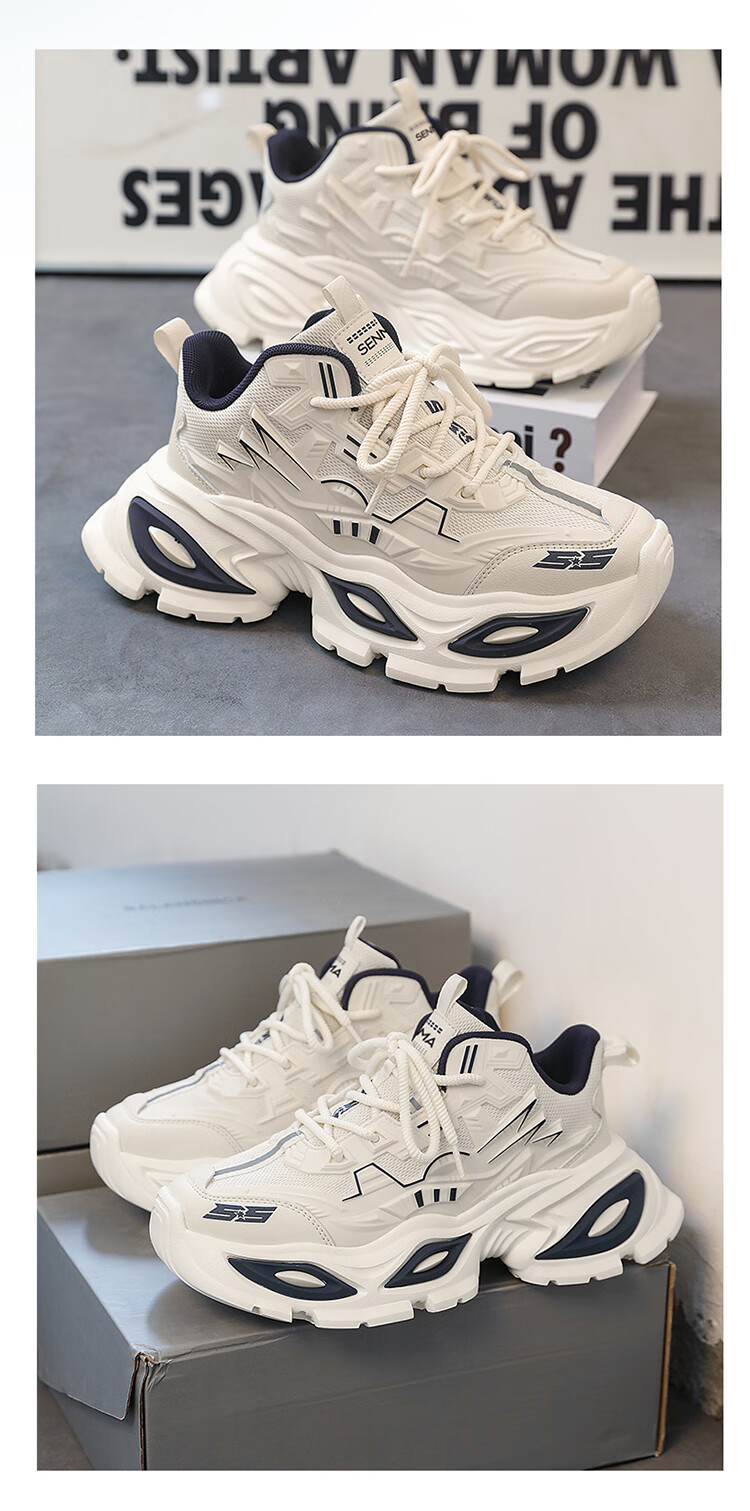 森馬男鞋2026新款春季高级感休闲板鞋青少年厚底防滑内增高运动小白鞋 米杏【基础款】 39 标准码数/现货秒发