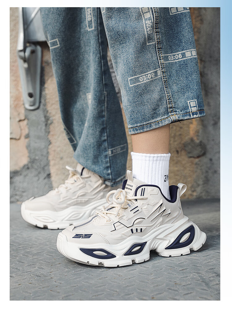 森馬男鞋2026马年限定金标男士老爹鞋本命年鞋子厚底增高休闲运动潮鞋 白金【升级款】 42 标准码数/现货秒发