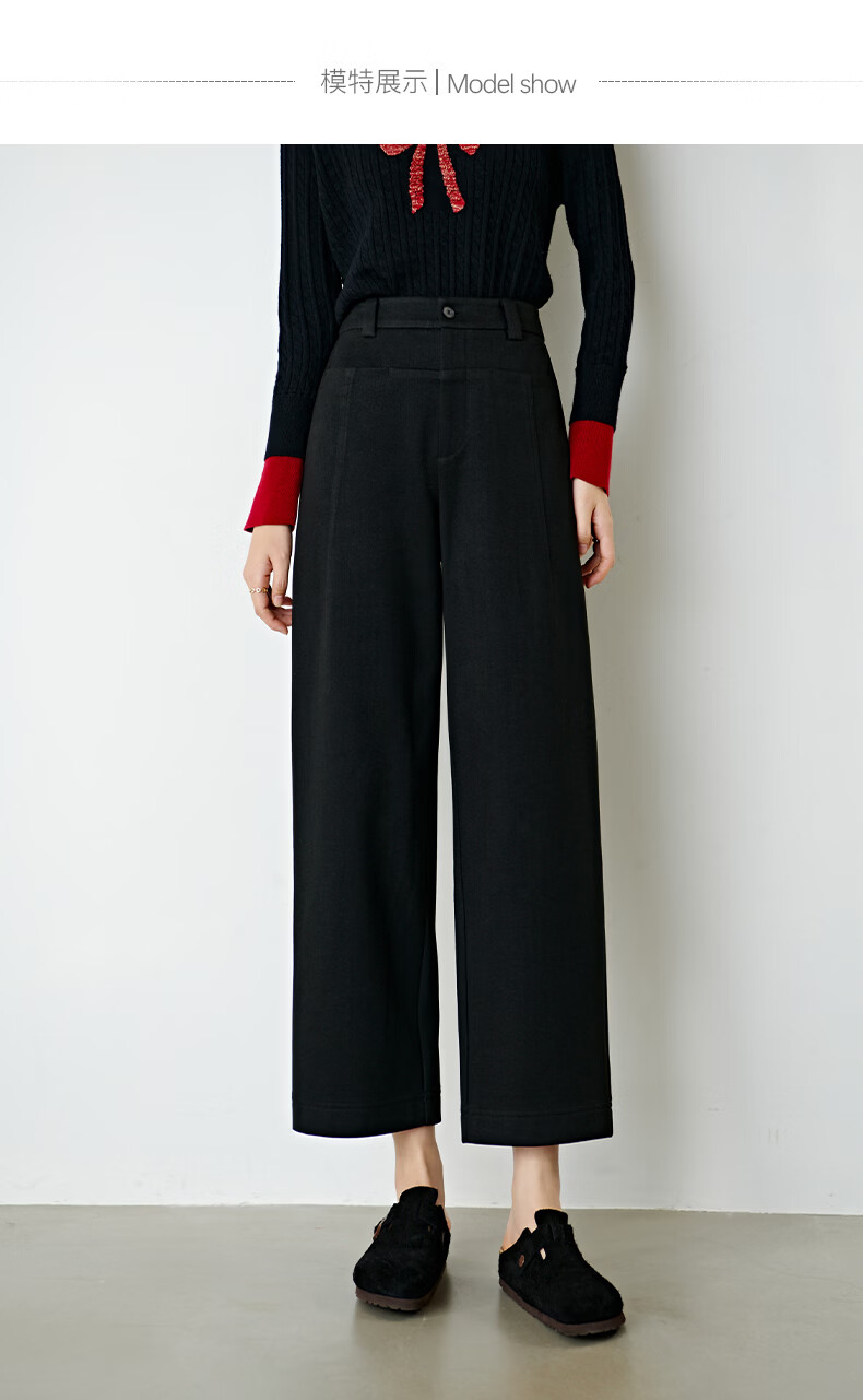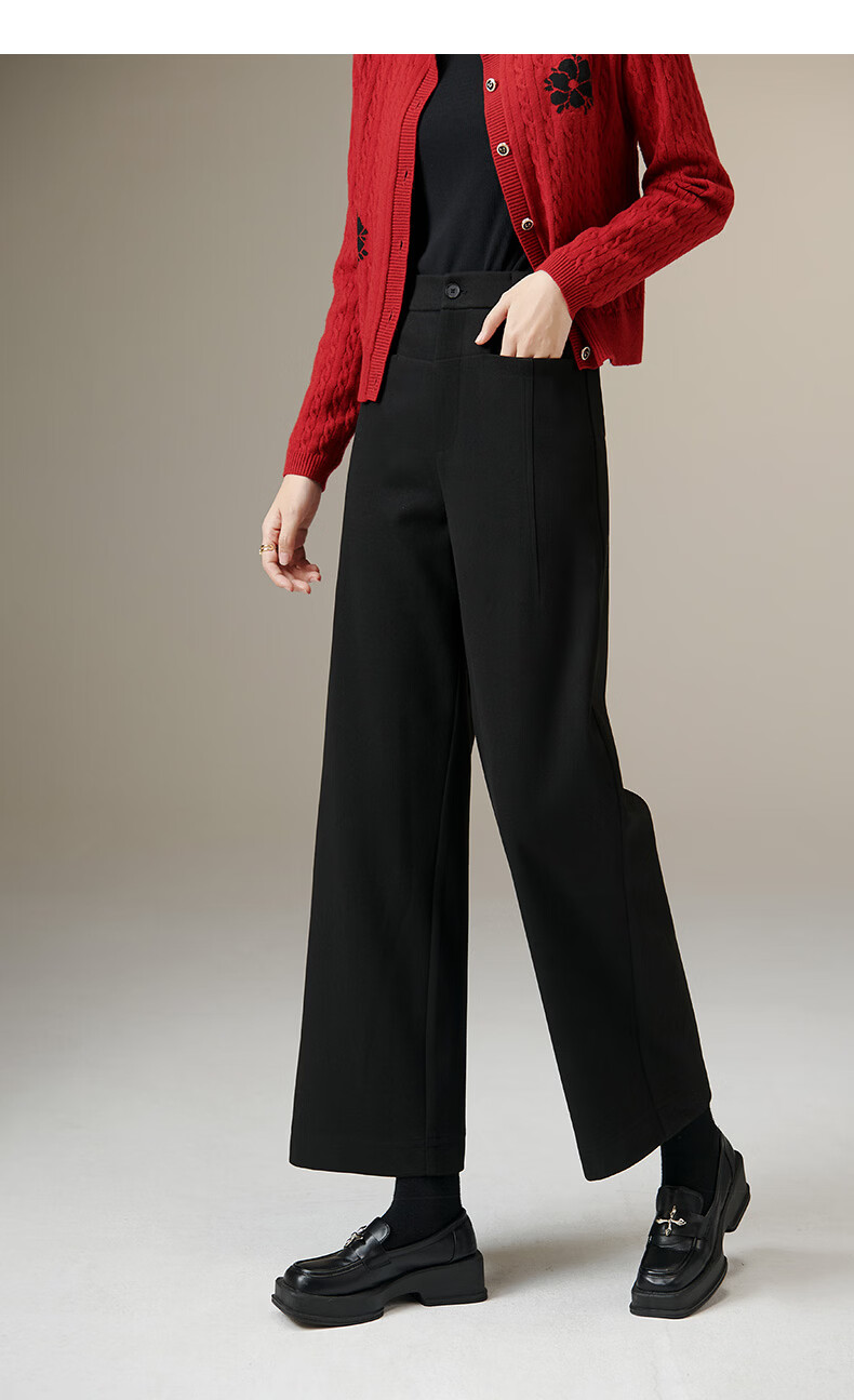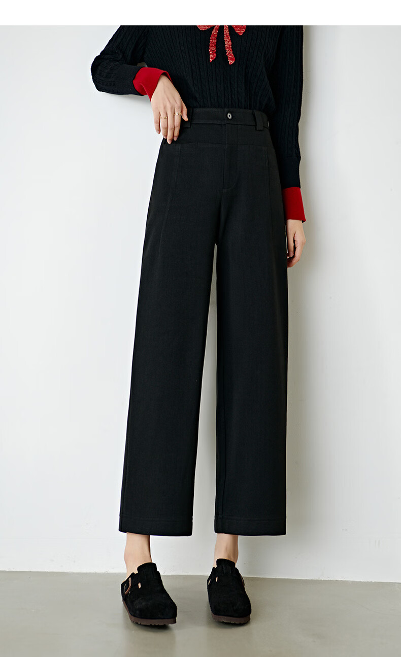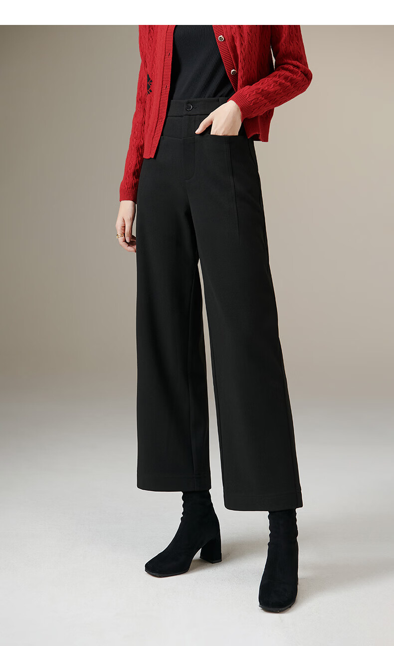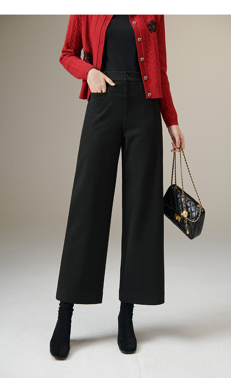 晚白【断码清仓】冬款经典毛呢裤高腰利落显瘦气质通勤直筒裤女 黑色 29