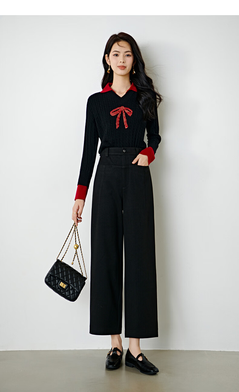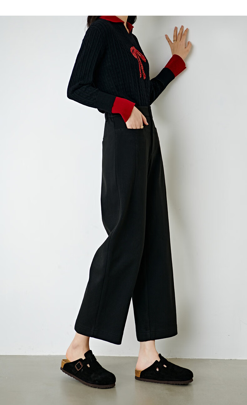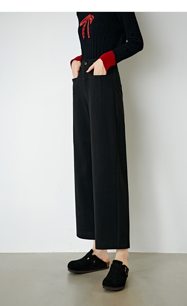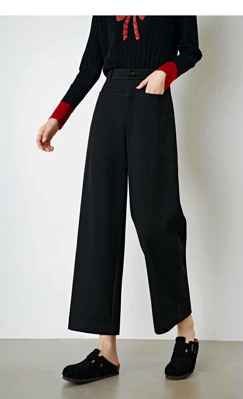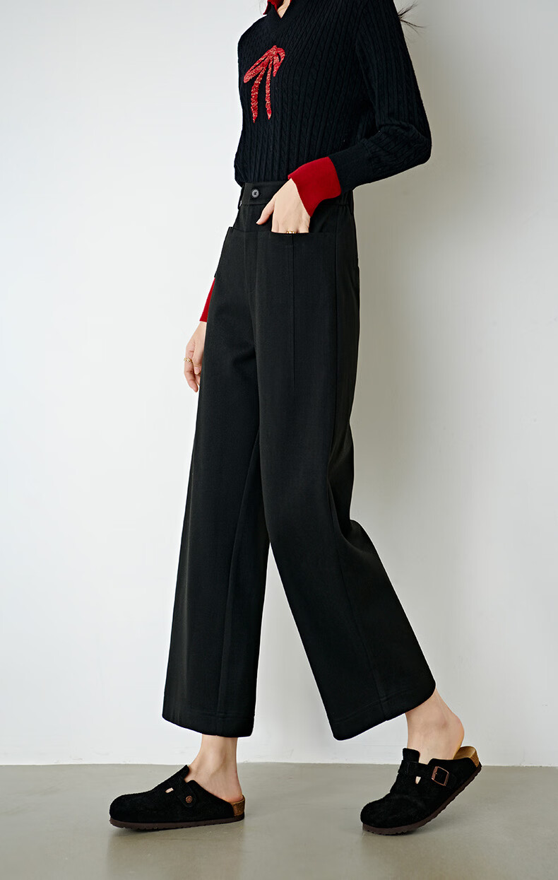 晚白【断码清仓】冬款经典毛呢裤高腰利落显瘦气质通勤直筒裤女 黑色 29