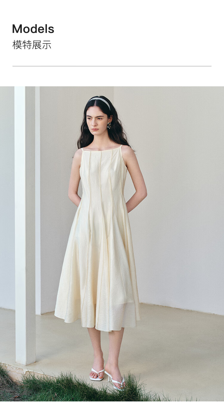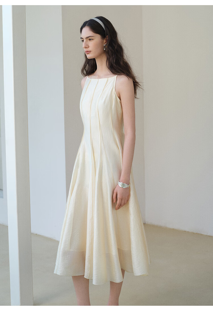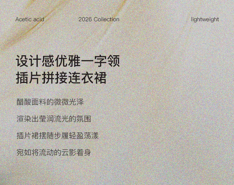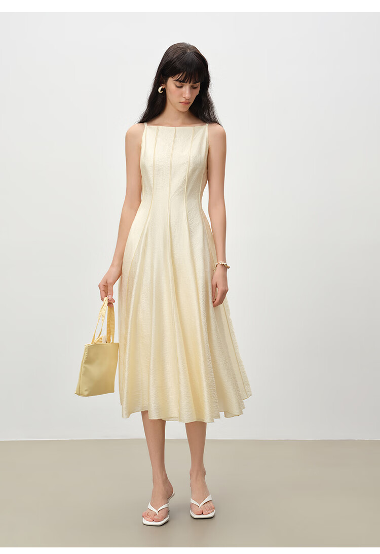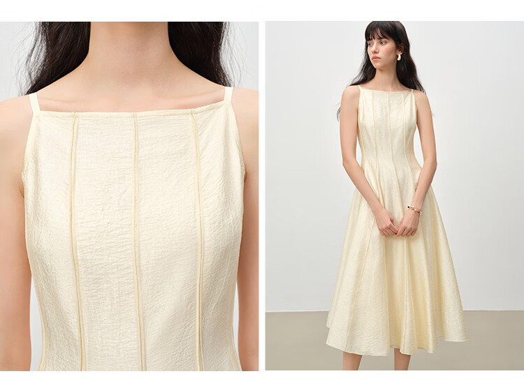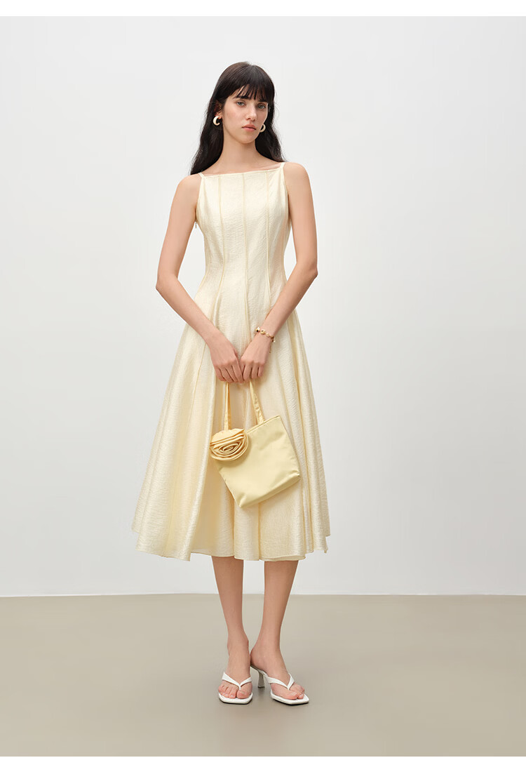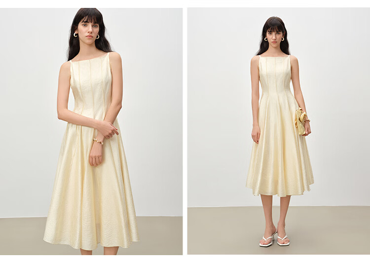 自巧【流光追影】小个子优雅一字领插片拼接连衣裙女2026春季新品 奶油黄 XXS (尺码:1)