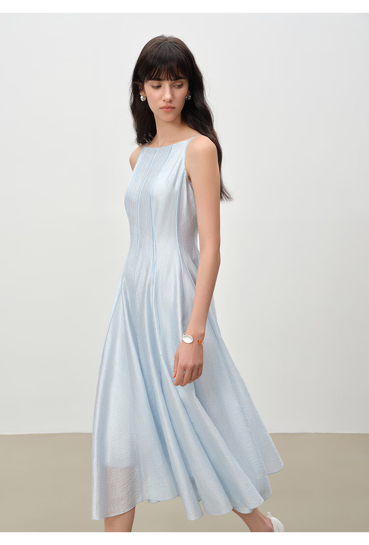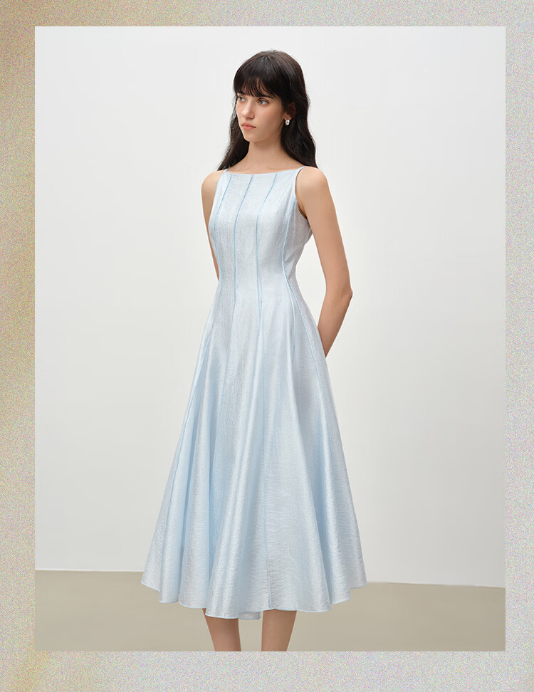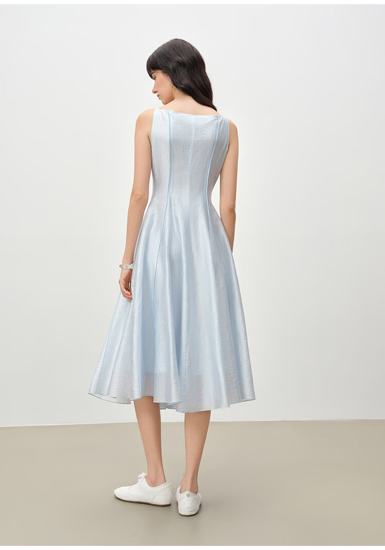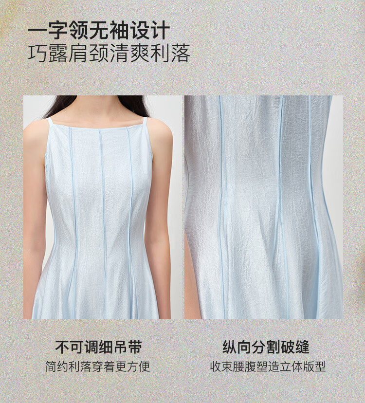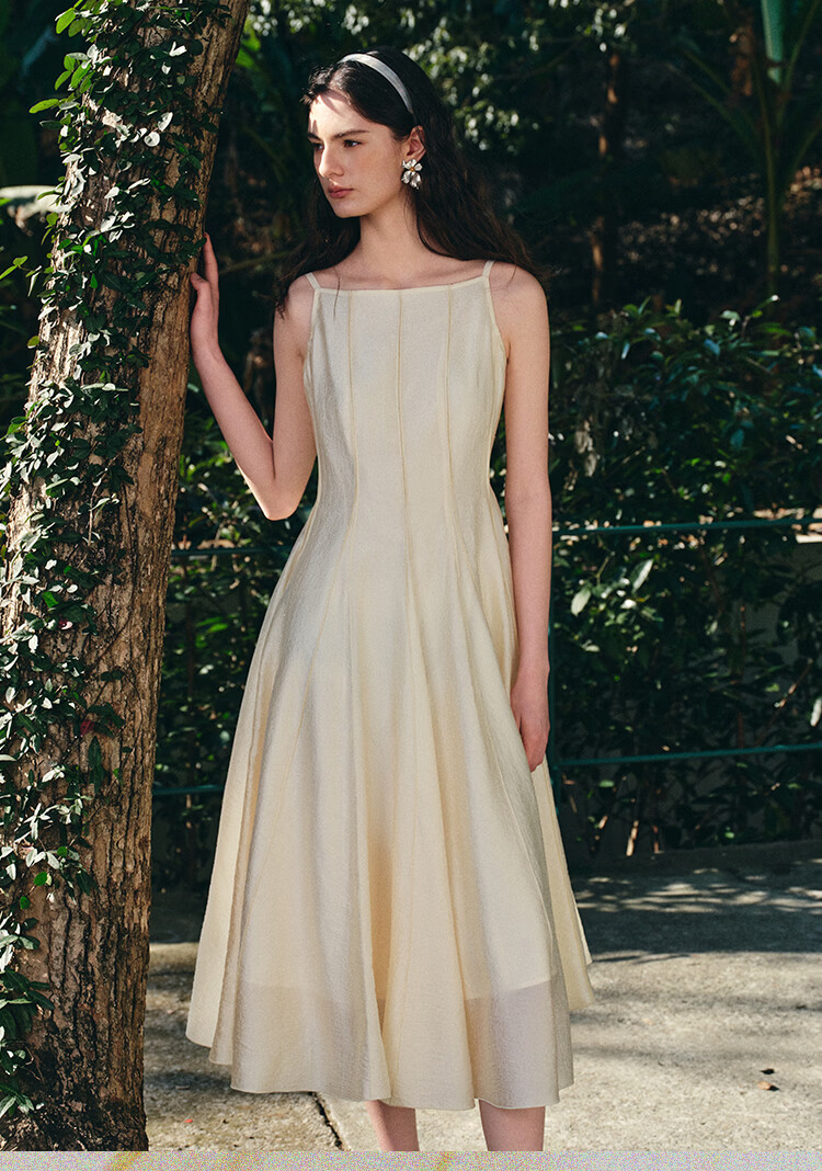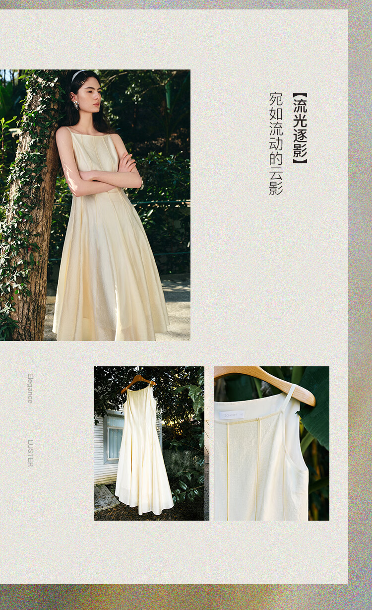 自巧【流光追影】小个子优雅一字领插片拼接连衣裙女2026春季新品 奶油黄 XXS (尺码:1)