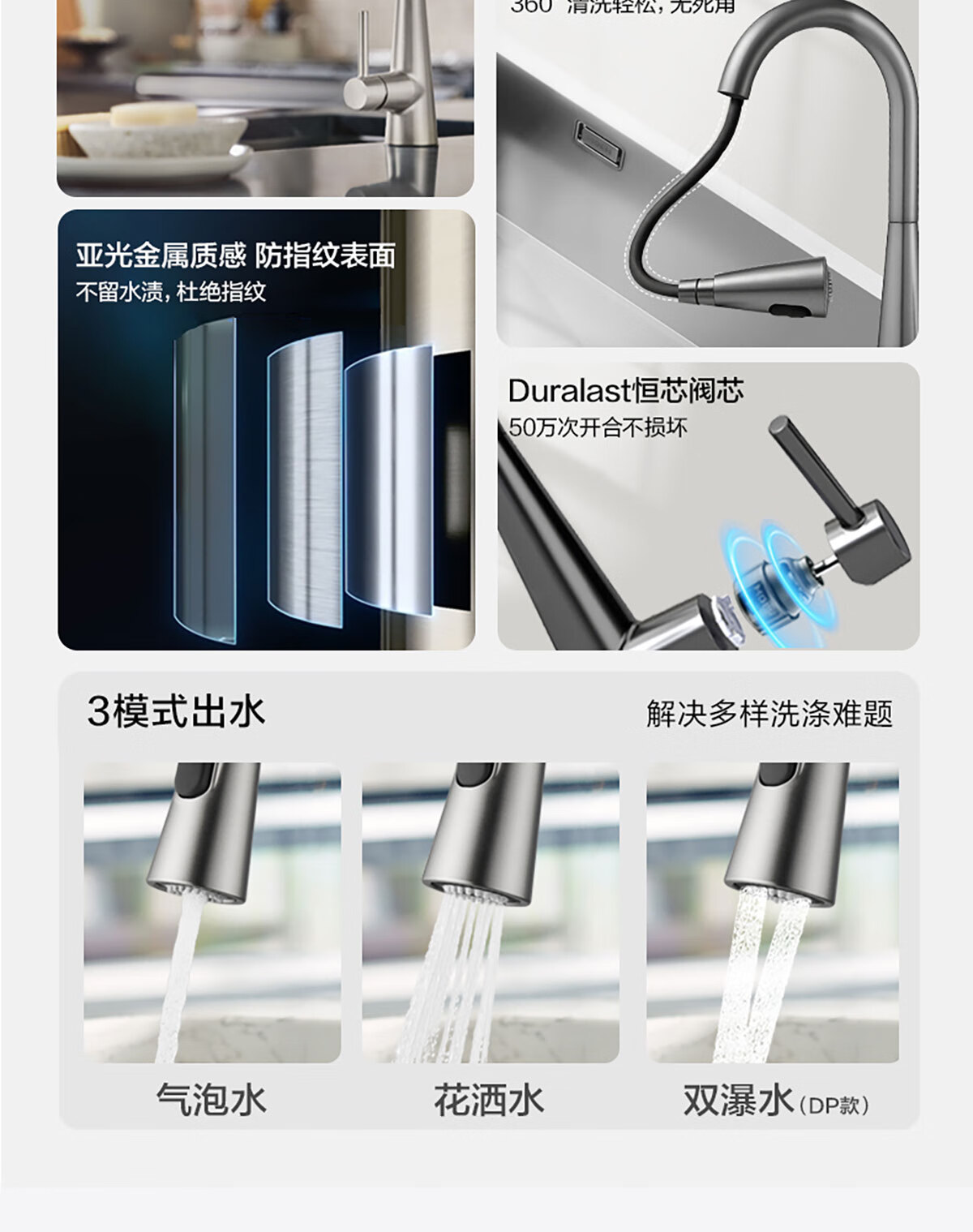 洛曲德国厨房冷热水龙头入墙式洗衣池阳台洗衣池全铜主体菜盆混水阀 双档出水龙头带机械臂