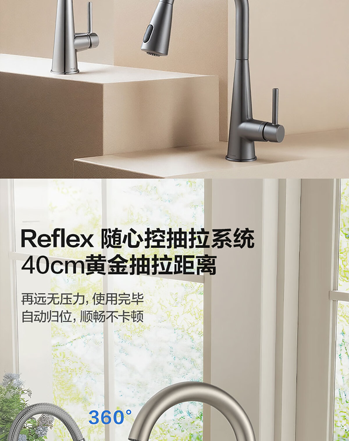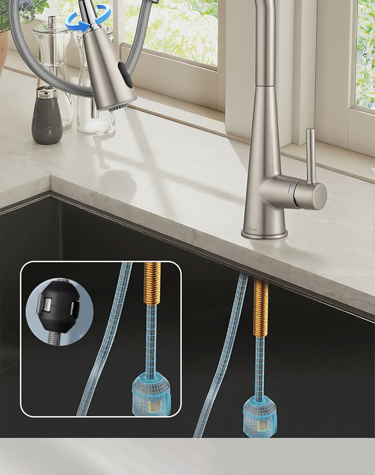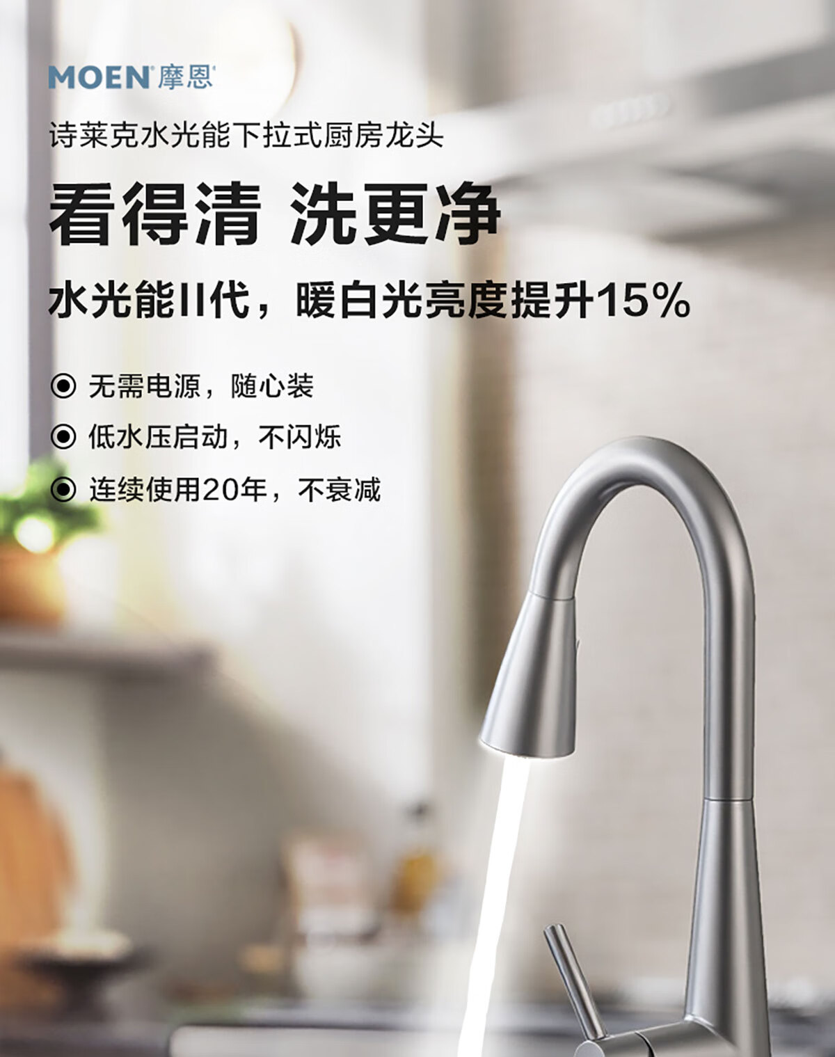 摩恩(MOEN)【迷住专属】诗莱克系列厨房水龙头冷热两用净铅抽拉式水槽龙头 【本体铜】镀铬款双出水抽拉龙头