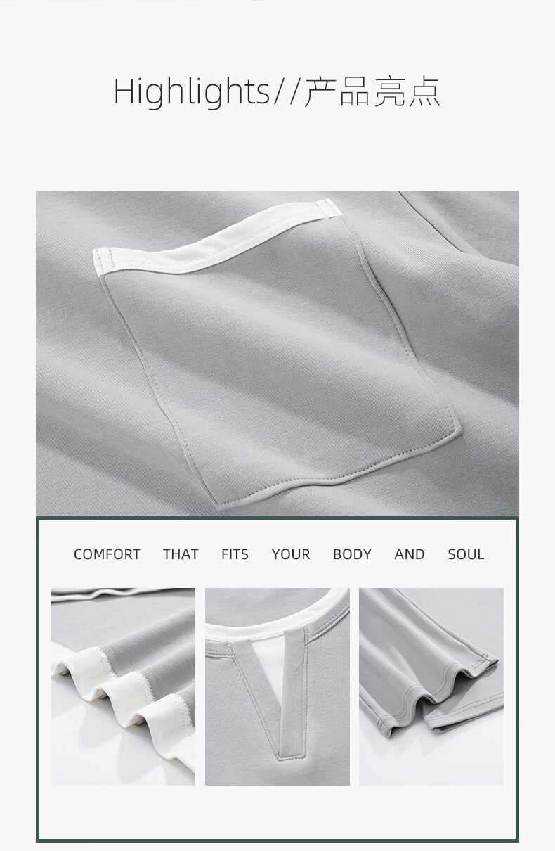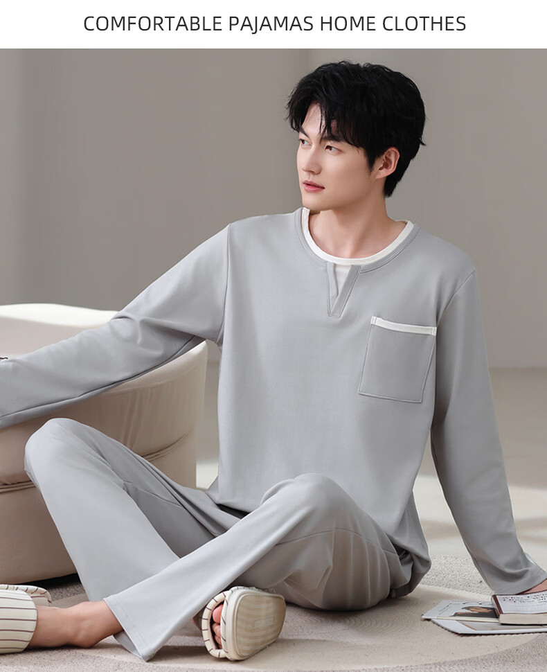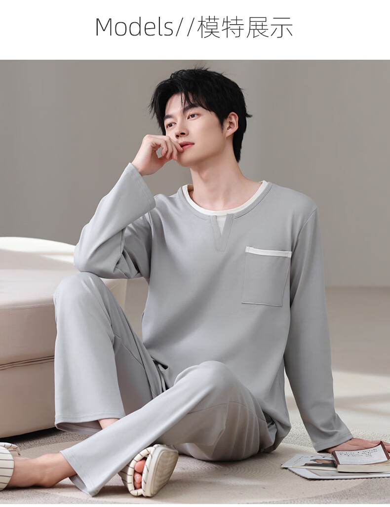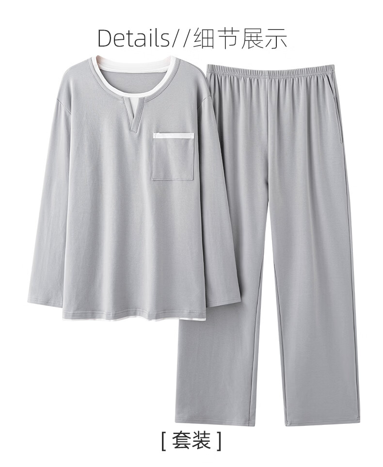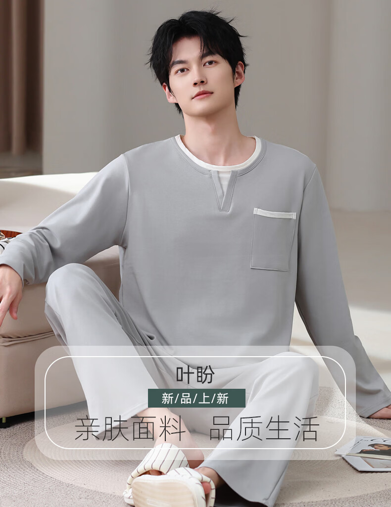 叶盼(yepan)【柔软】莱卡纯棉睡衣男士春秋长袖套头男款大码可外穿家居服套装 8602-银灰 L (170) :建议100-135斤穿着