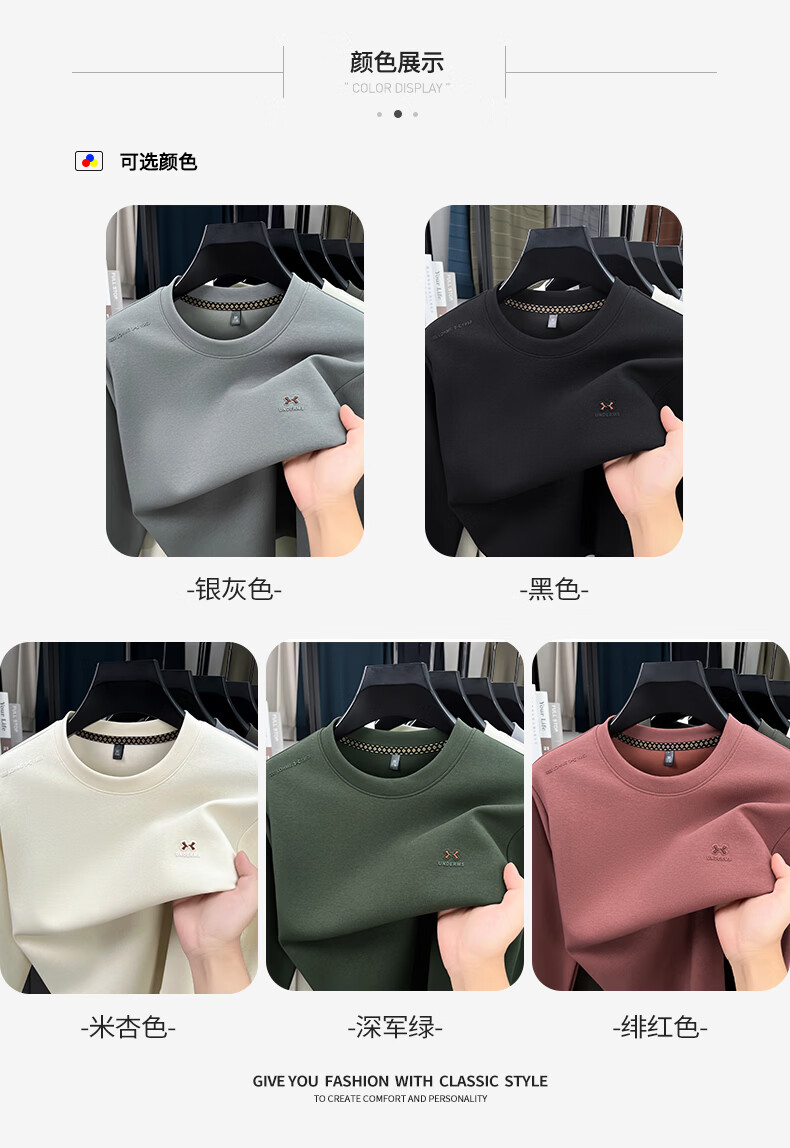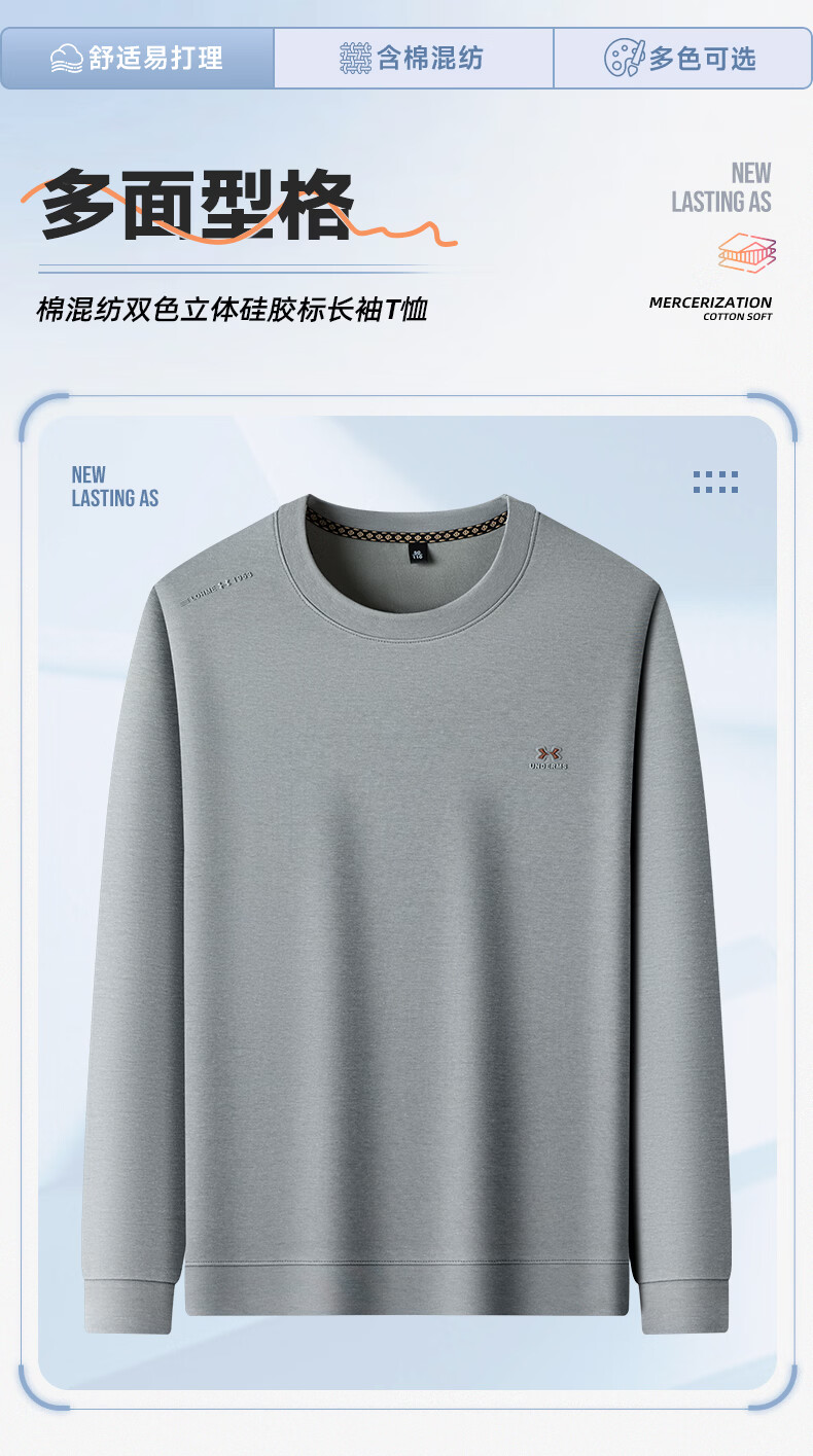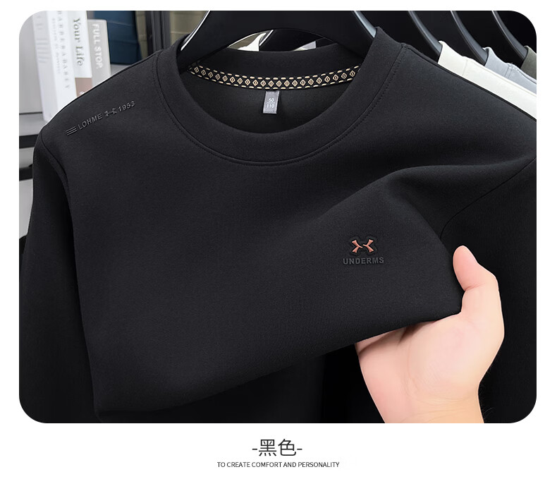 SHANSHAN长袖T恤男春秋季新款休闲简约打底衫男士内搭易打理上衣男 黑色 3XL /190