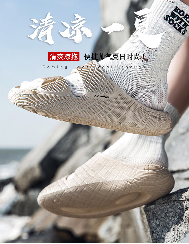 森馬男士拖鞋夏季户外穿耐磨男生浴室洗澡防滑防臭室内居家居一字拖鞋 棕色【基础款】 40-41 【现货秒发】