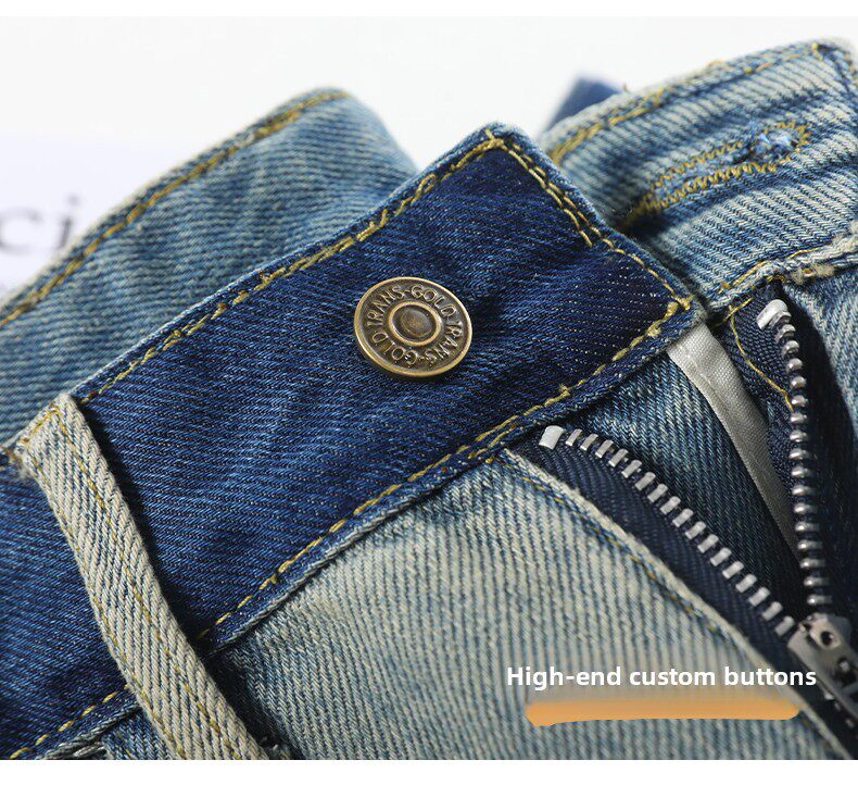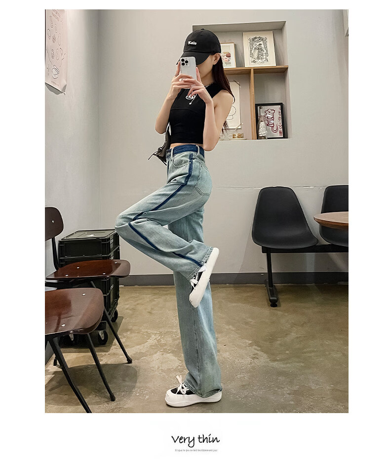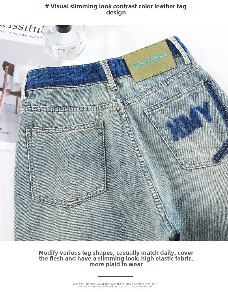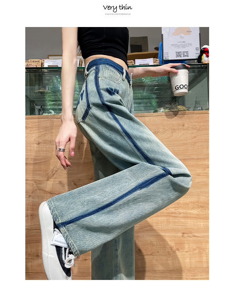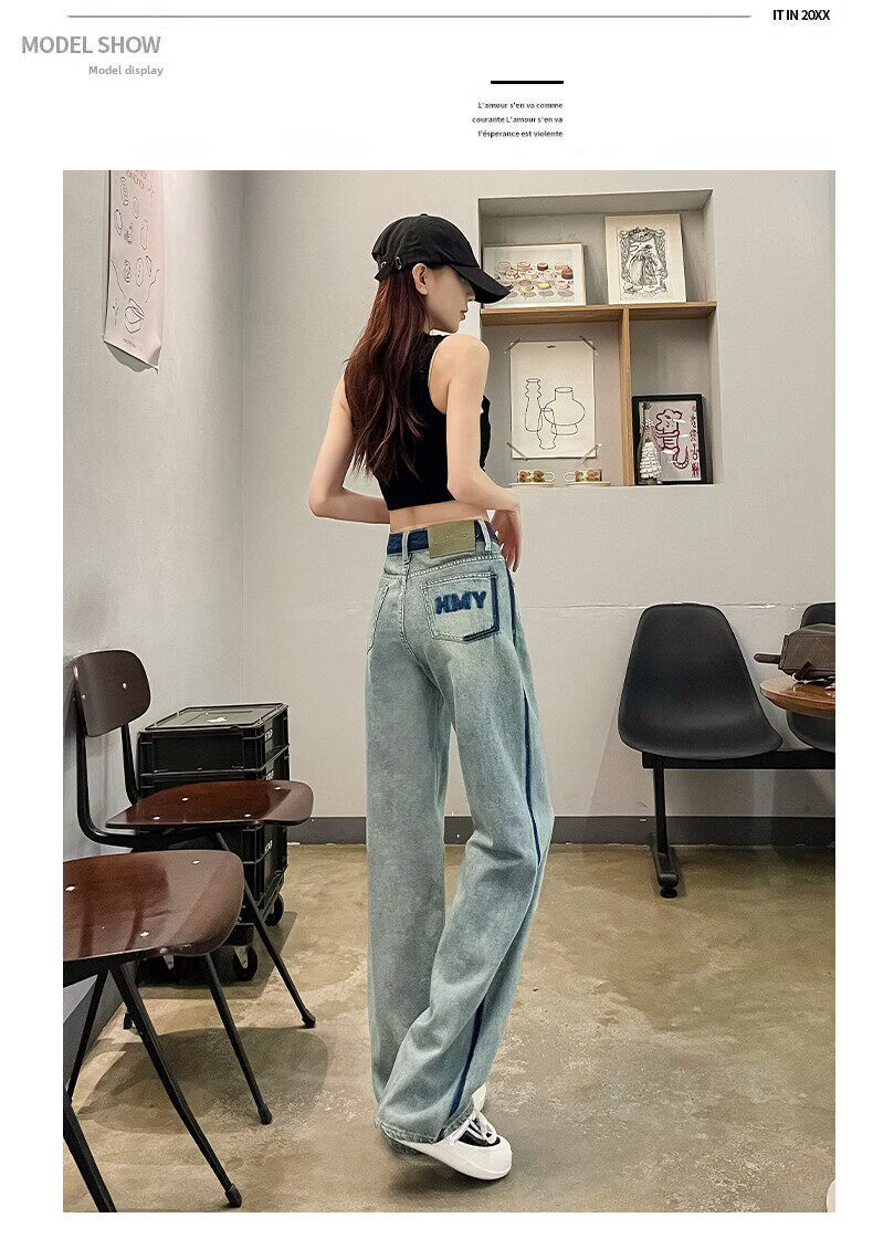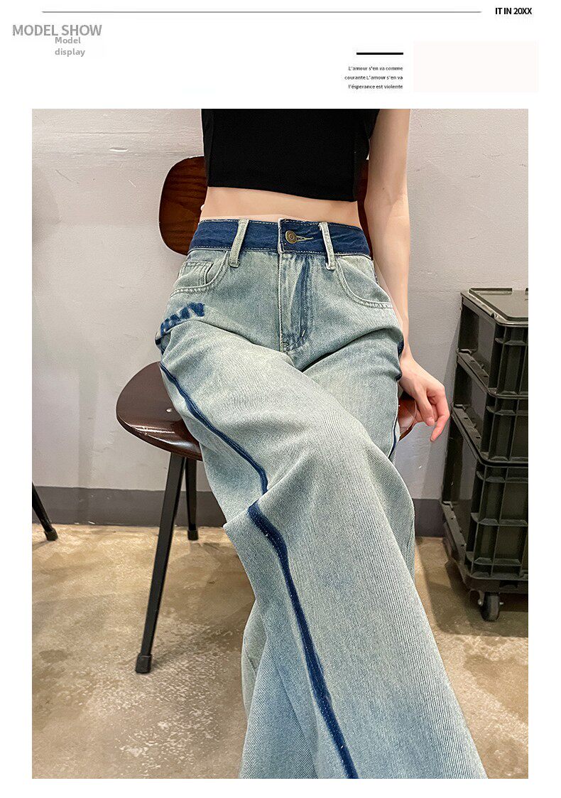 MODX春季女士阔腿牛仔裤,新款,高腰,修身,宽松,流行,对比色设计 怀旧蓝【长裤】 XS