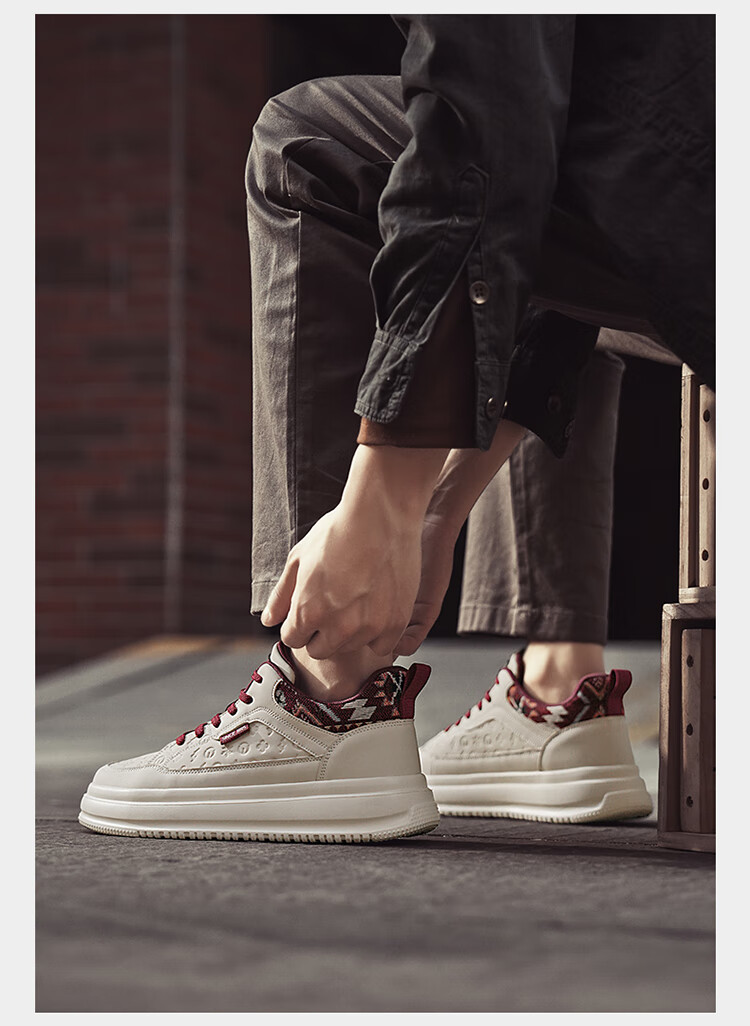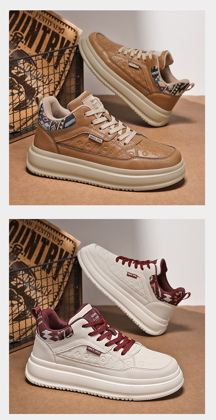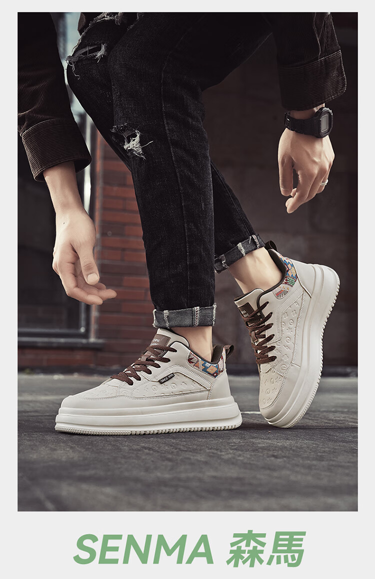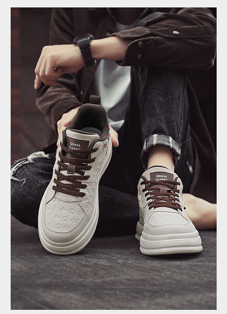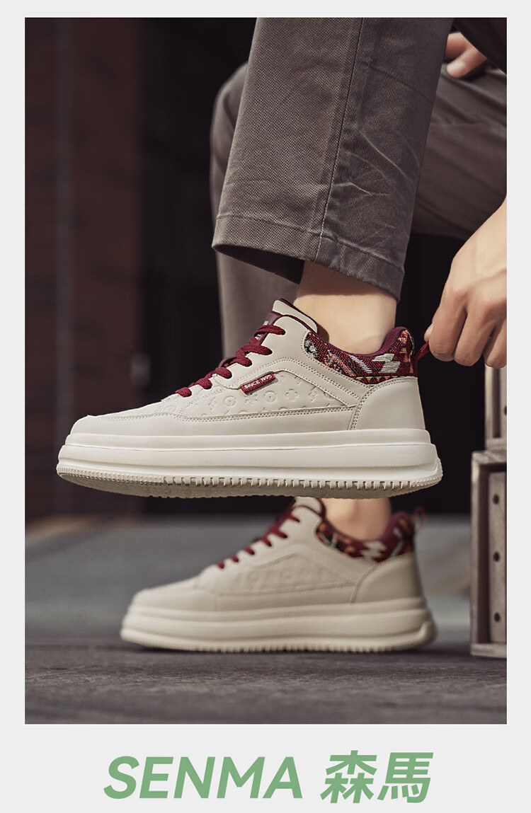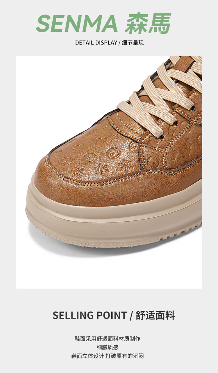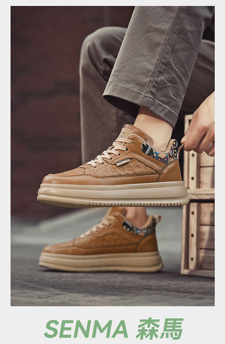 森馬2026冬季新款皮面轻便时尚耐磨低帮板鞋男款防滑厚底增高休闲鞋 米棕【基础款】 37 标准码数/现货秒发