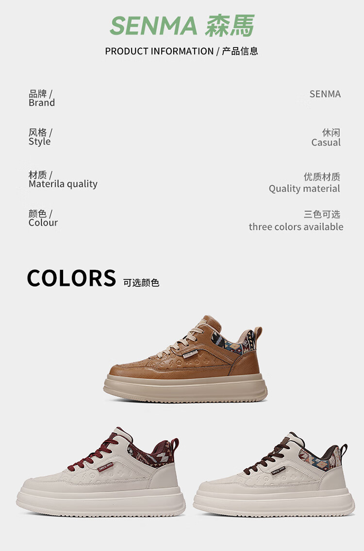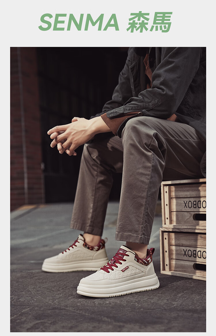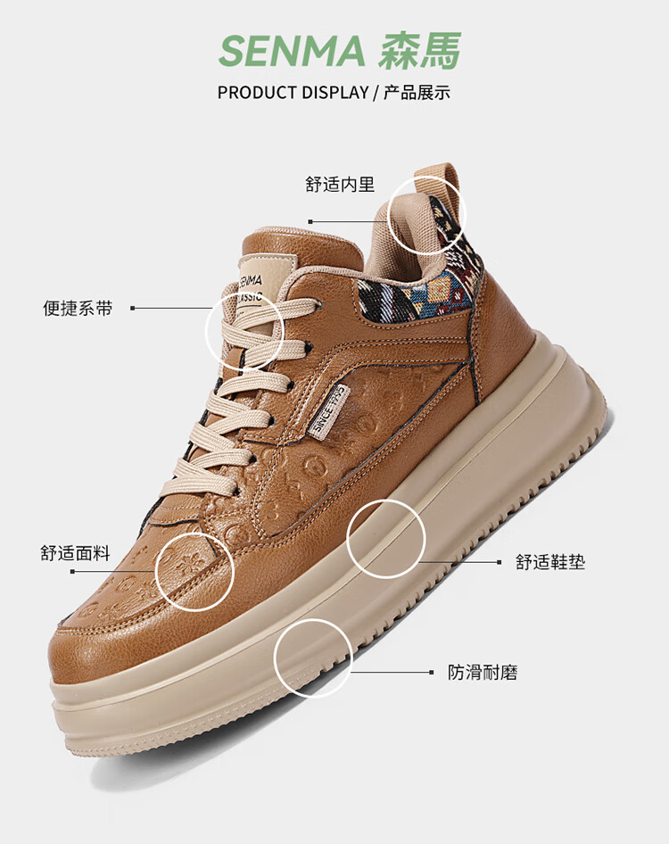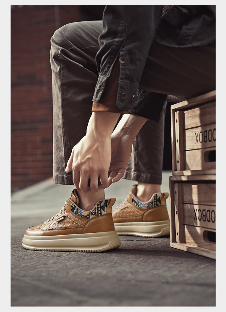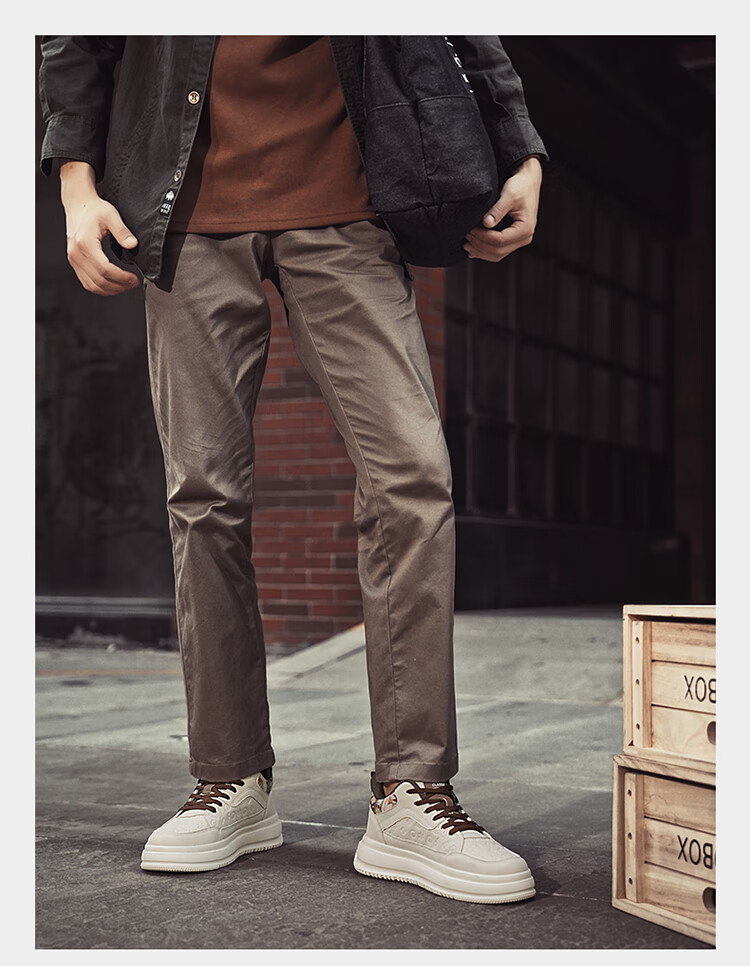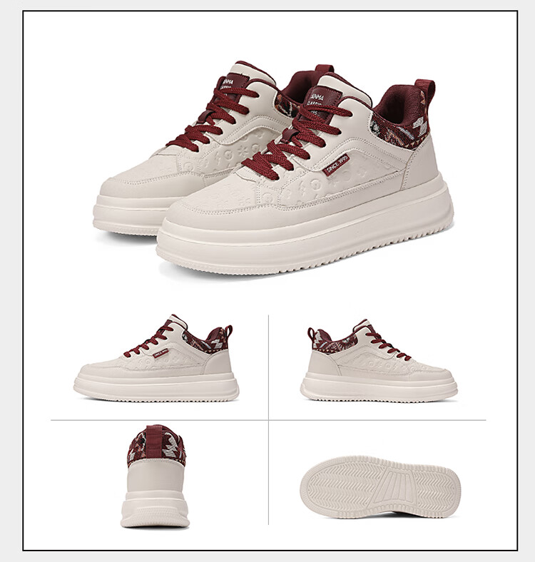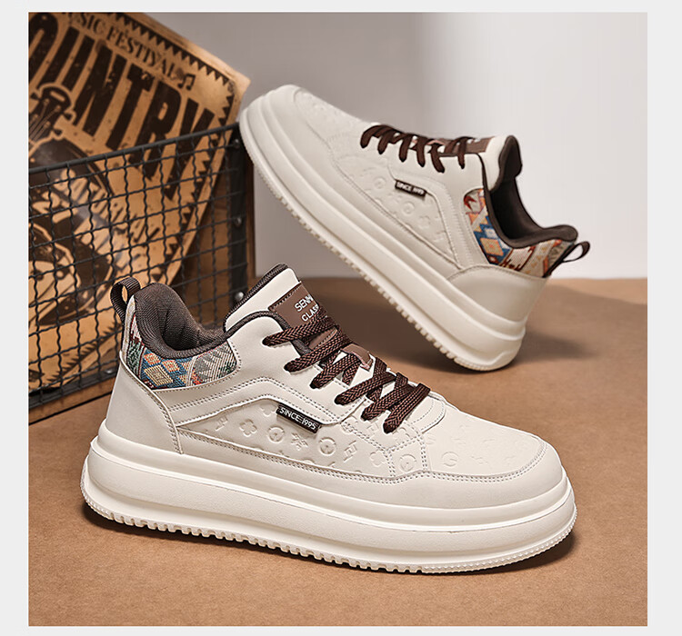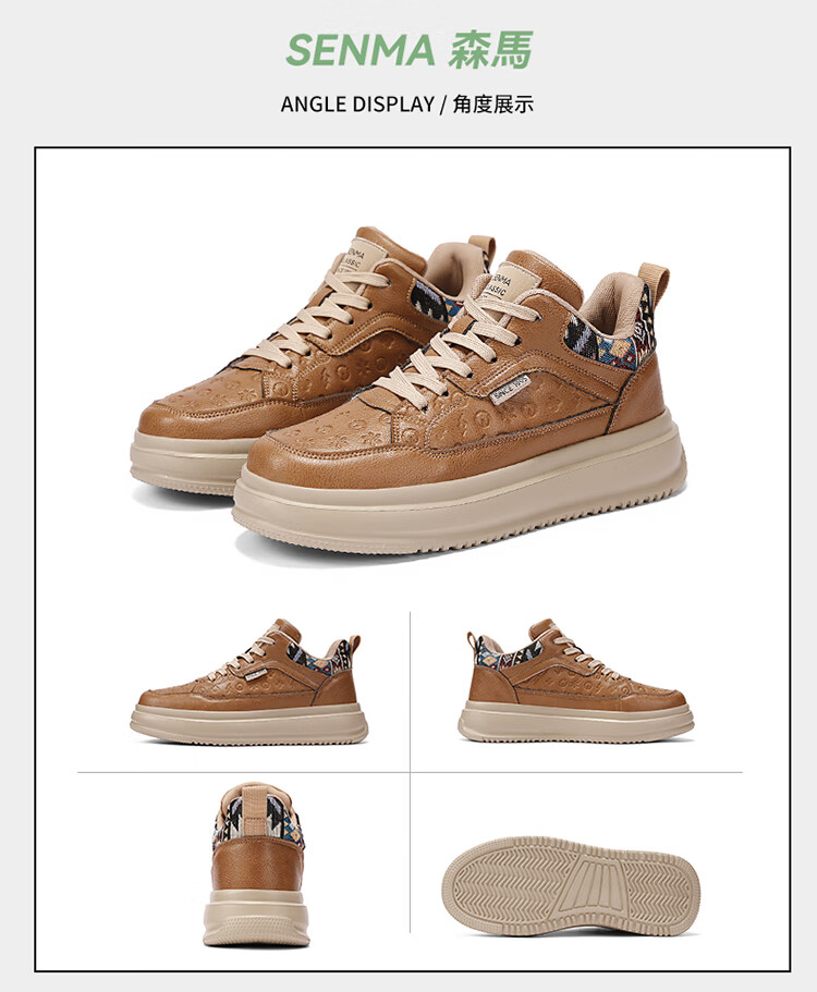 森馬2026冬季新款皮面轻便时尚耐磨低帮板鞋男款防滑厚底增高休闲鞋 米棕【基础款】 37 标准码数/现货秒发