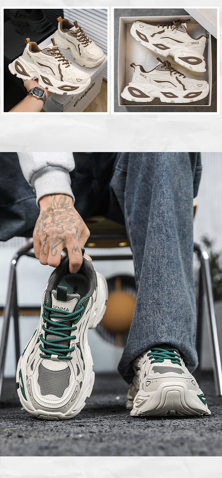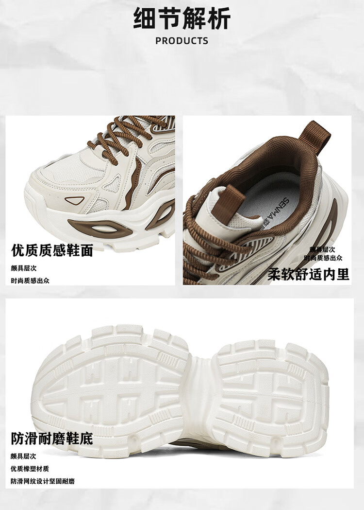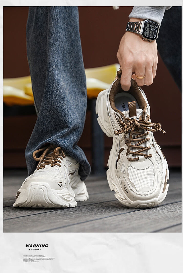 森馬男鞋2026春季新款透气百搭轻便休闲运动跑步鞋男士厚底耐磨老爹鞋 米棕【升级款】 42 标准码数/现货秒发