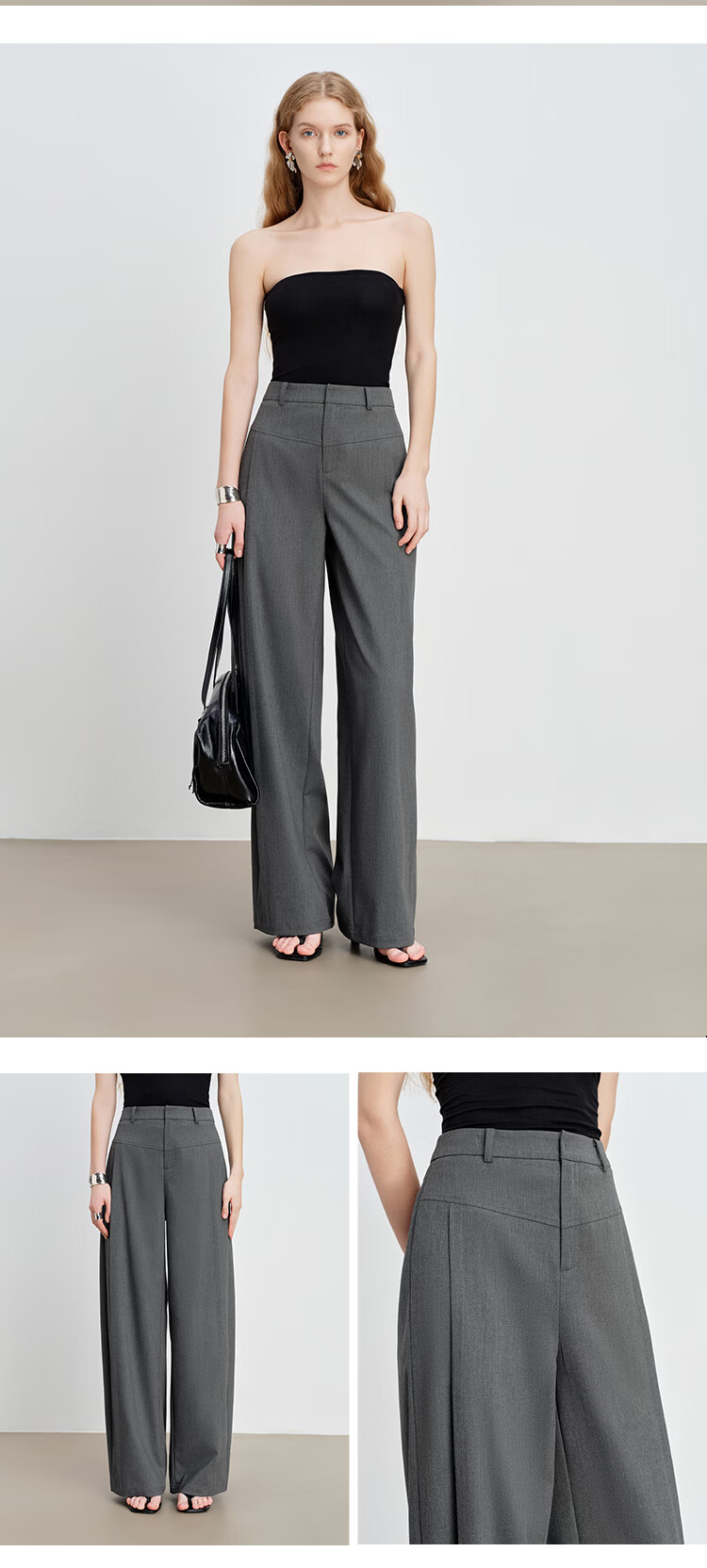 自巧小个子分割线设计叠褶弯刀西装休闲裤长裤女2026春季新品裤子 水貂灰 S (尺码:3)