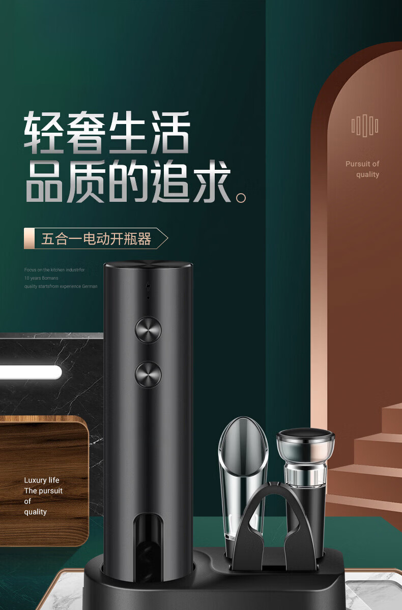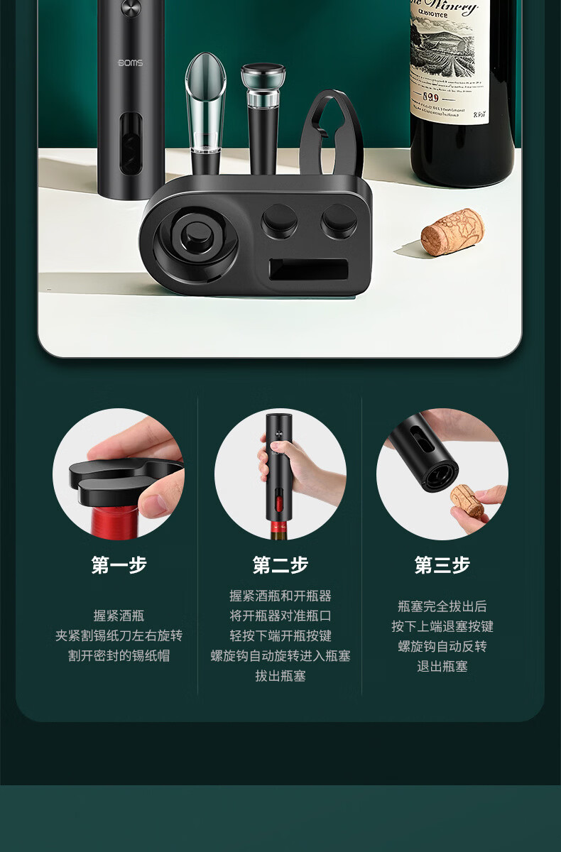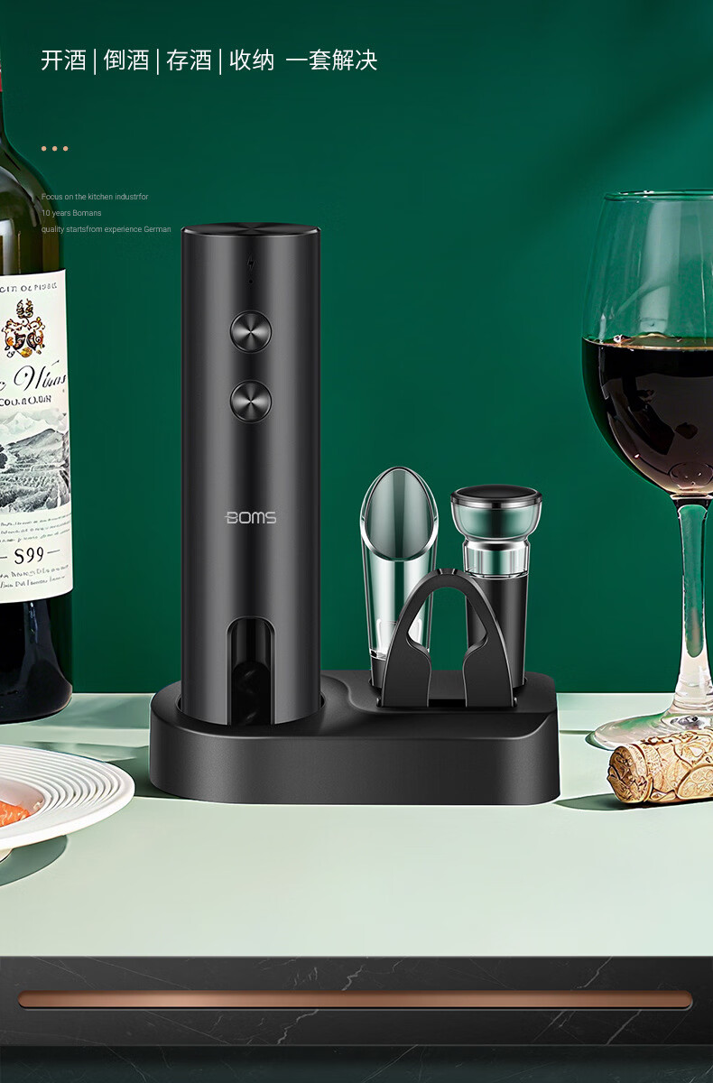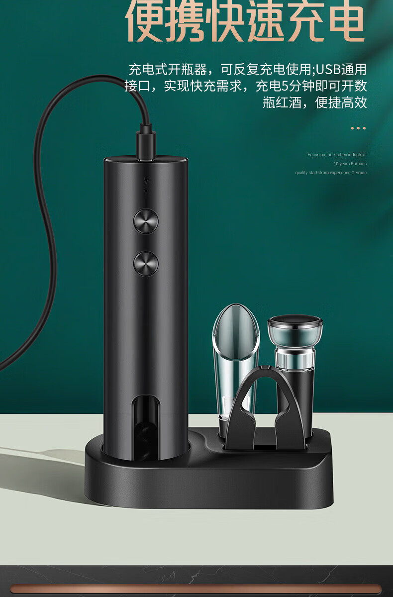 MMOTRO日本品牌电动开瓶器开红酒家用开酒器全自动充电起子开瓶盖神器 充电款开瓶器:套装(带底座)