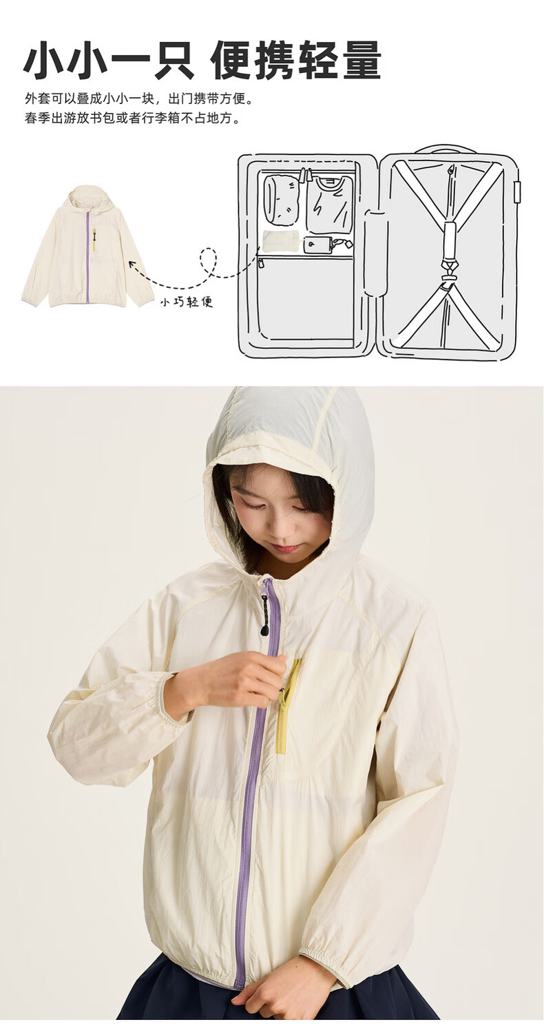 棉叔叔【轻薄防晒外套】棉叔叔女童春夏新品薄款外套男童户外上衣2.24 浅军绿 120 120